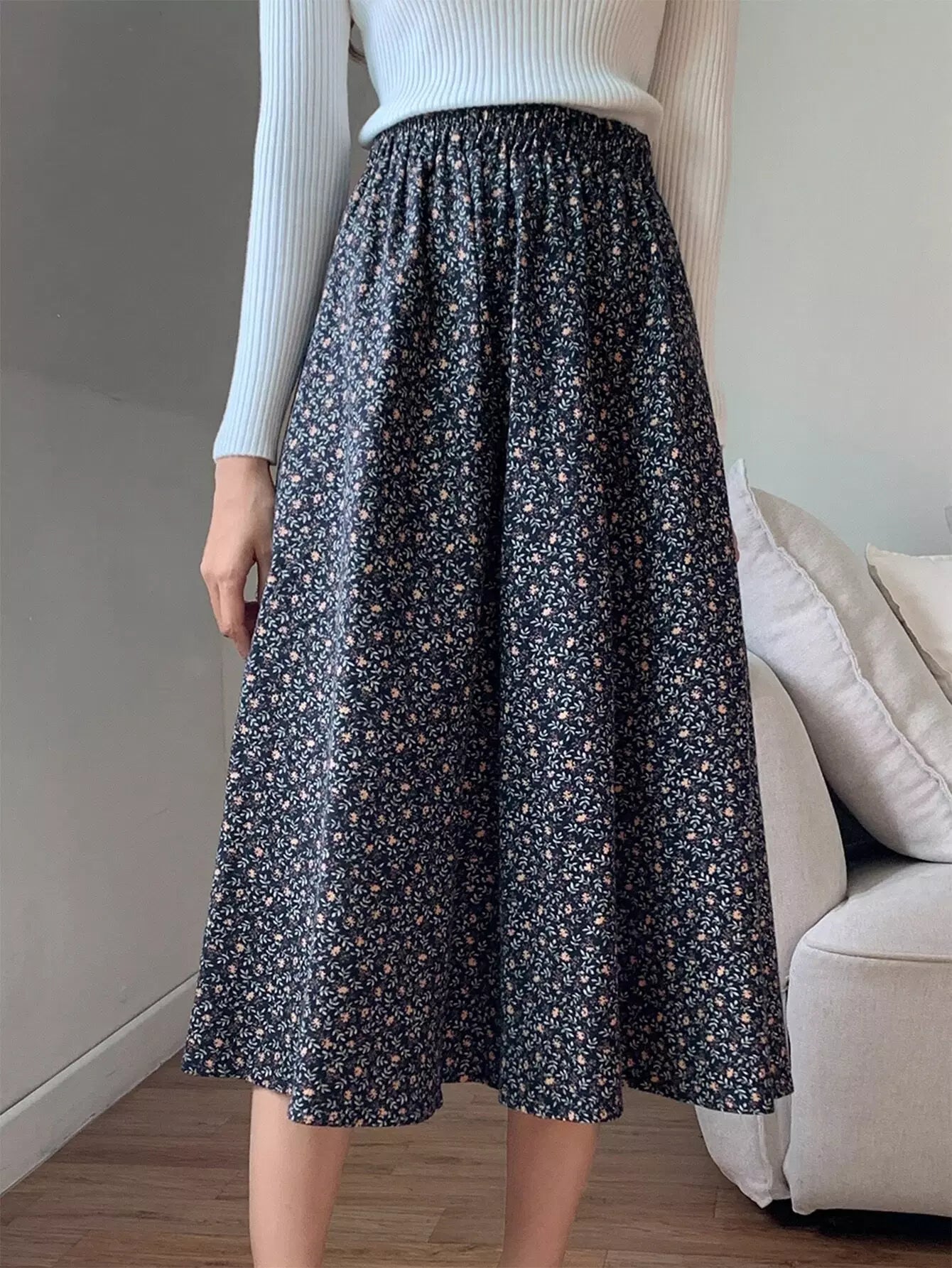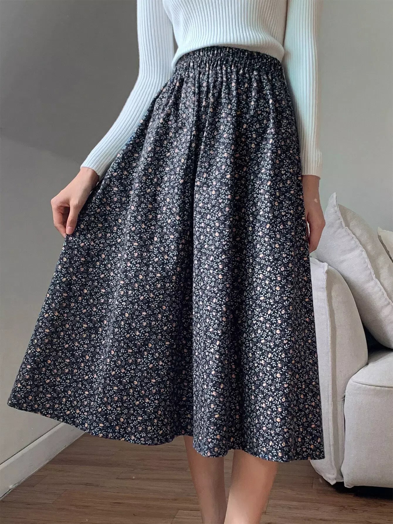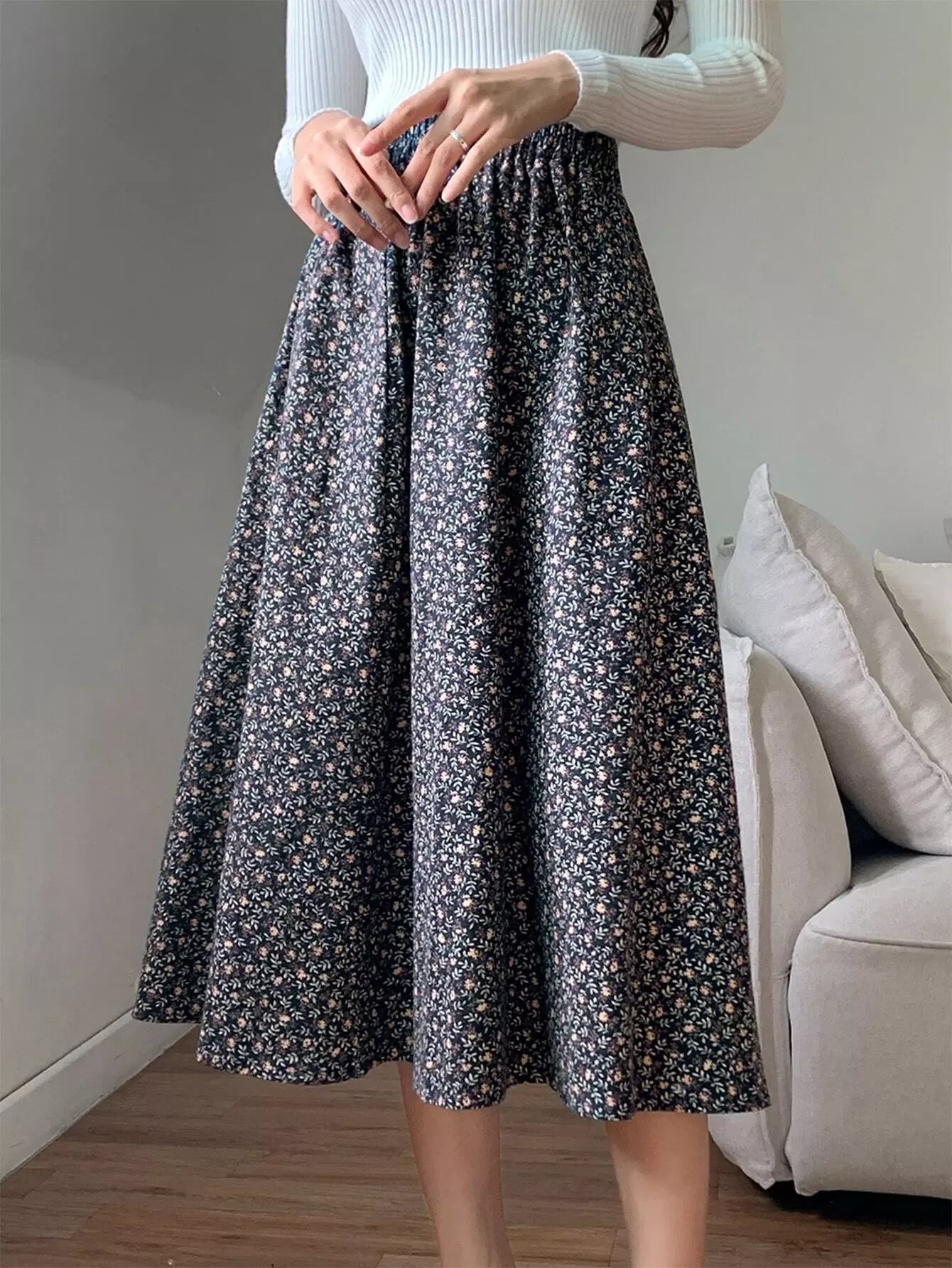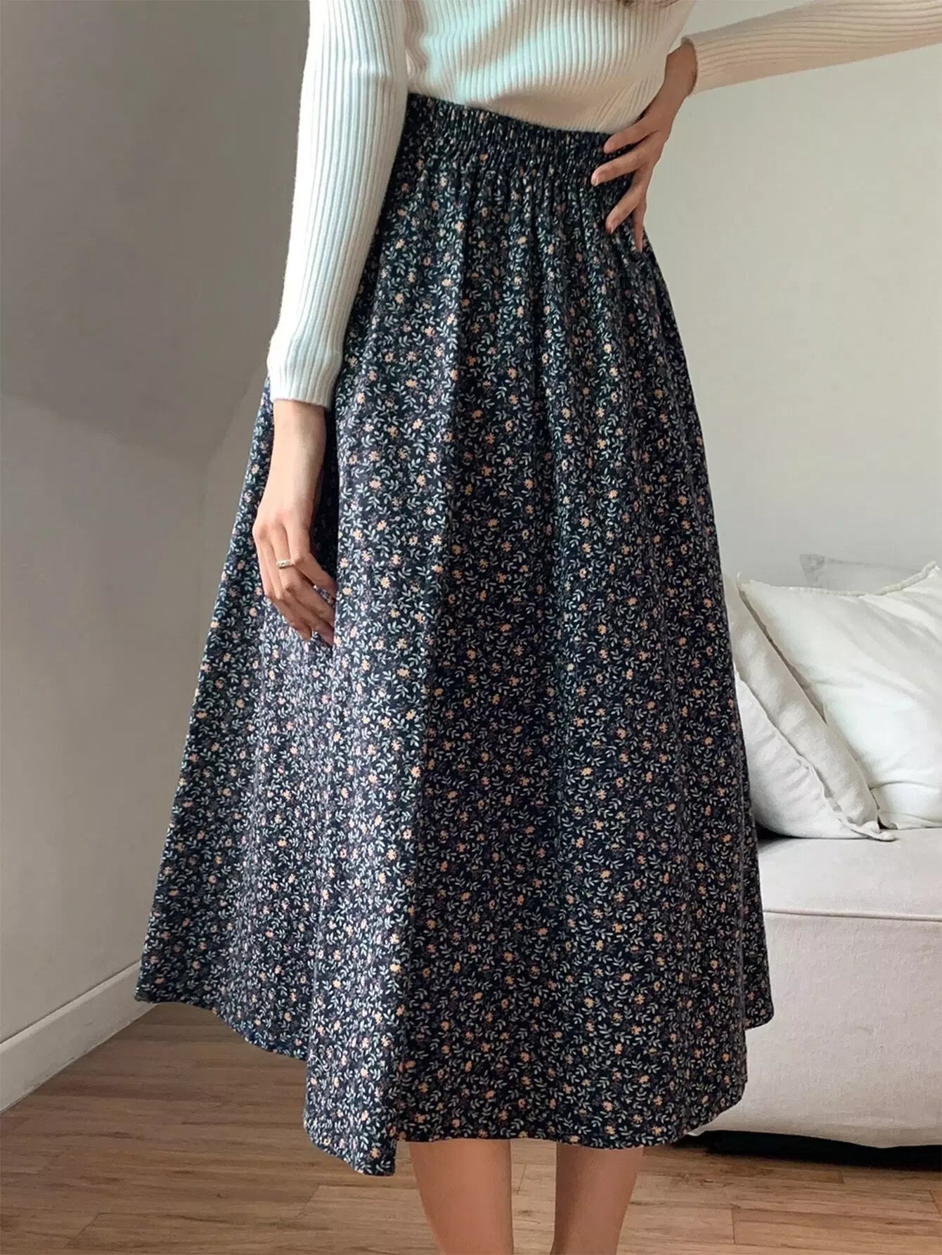 تنورة ديتسي مزينة بالورود عالية الخصر