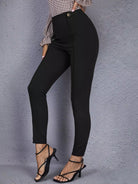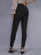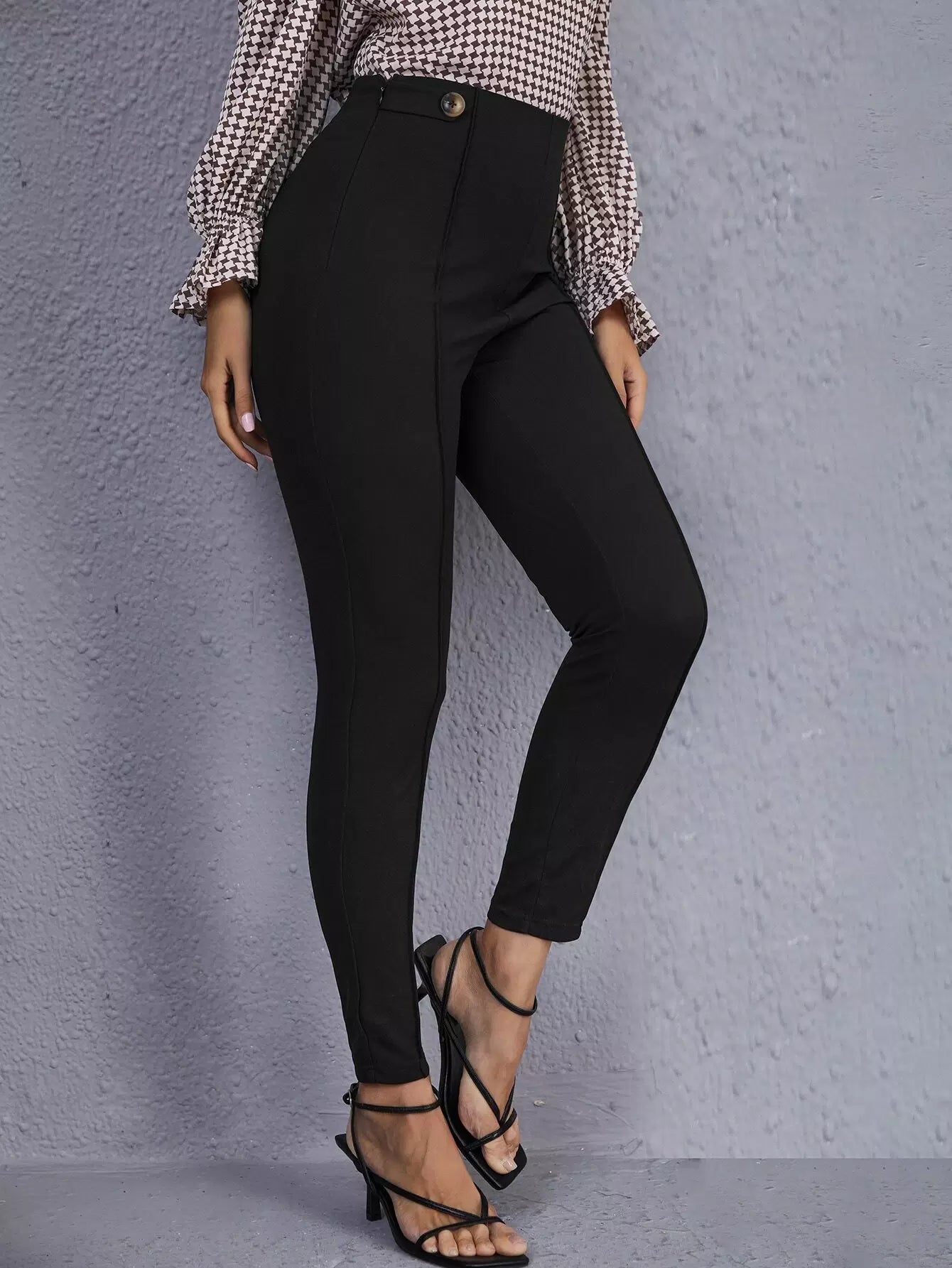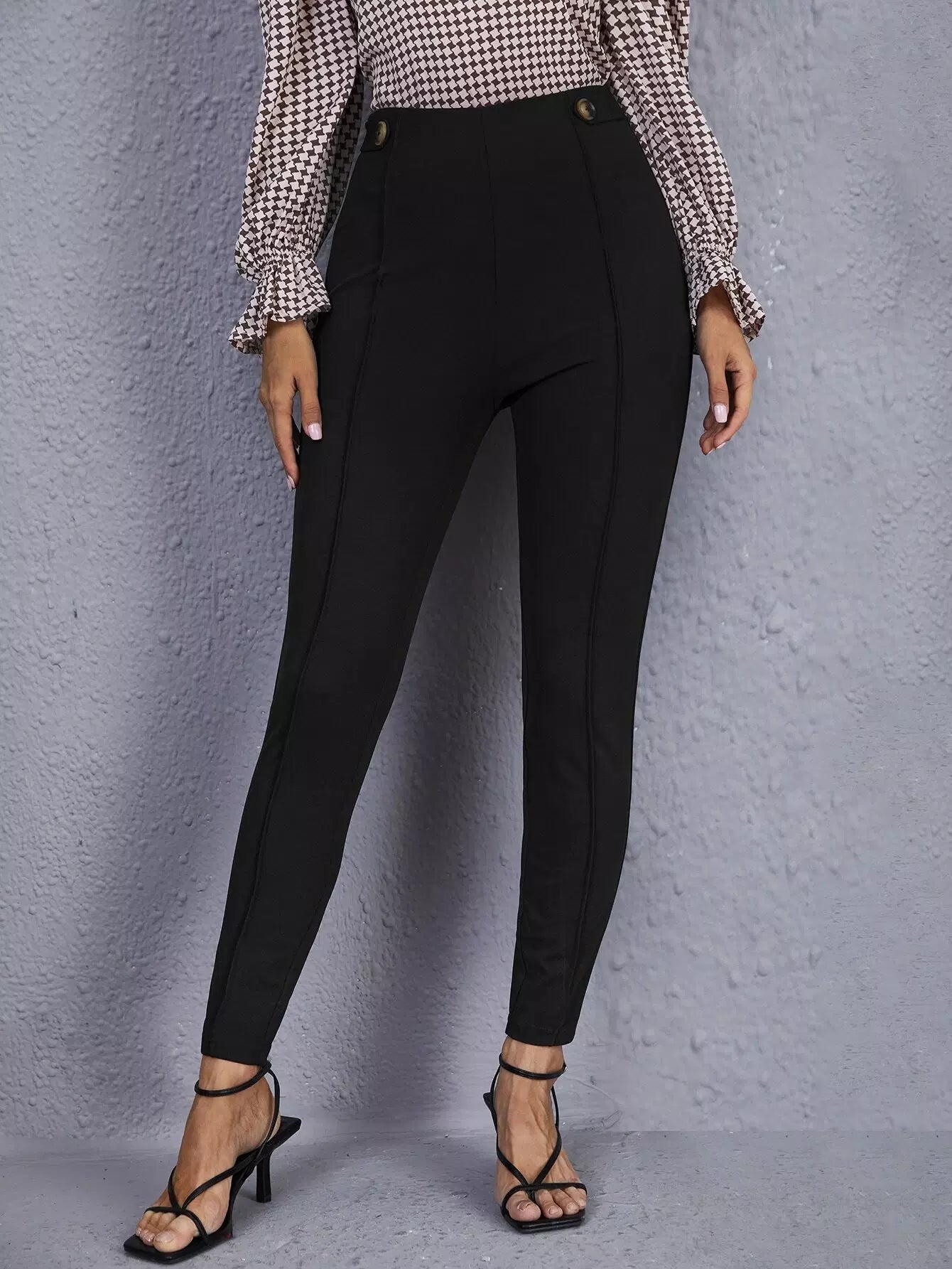 بنطال سكيني ضيق ذو خصر عالٍ وأزرار مزدوجة