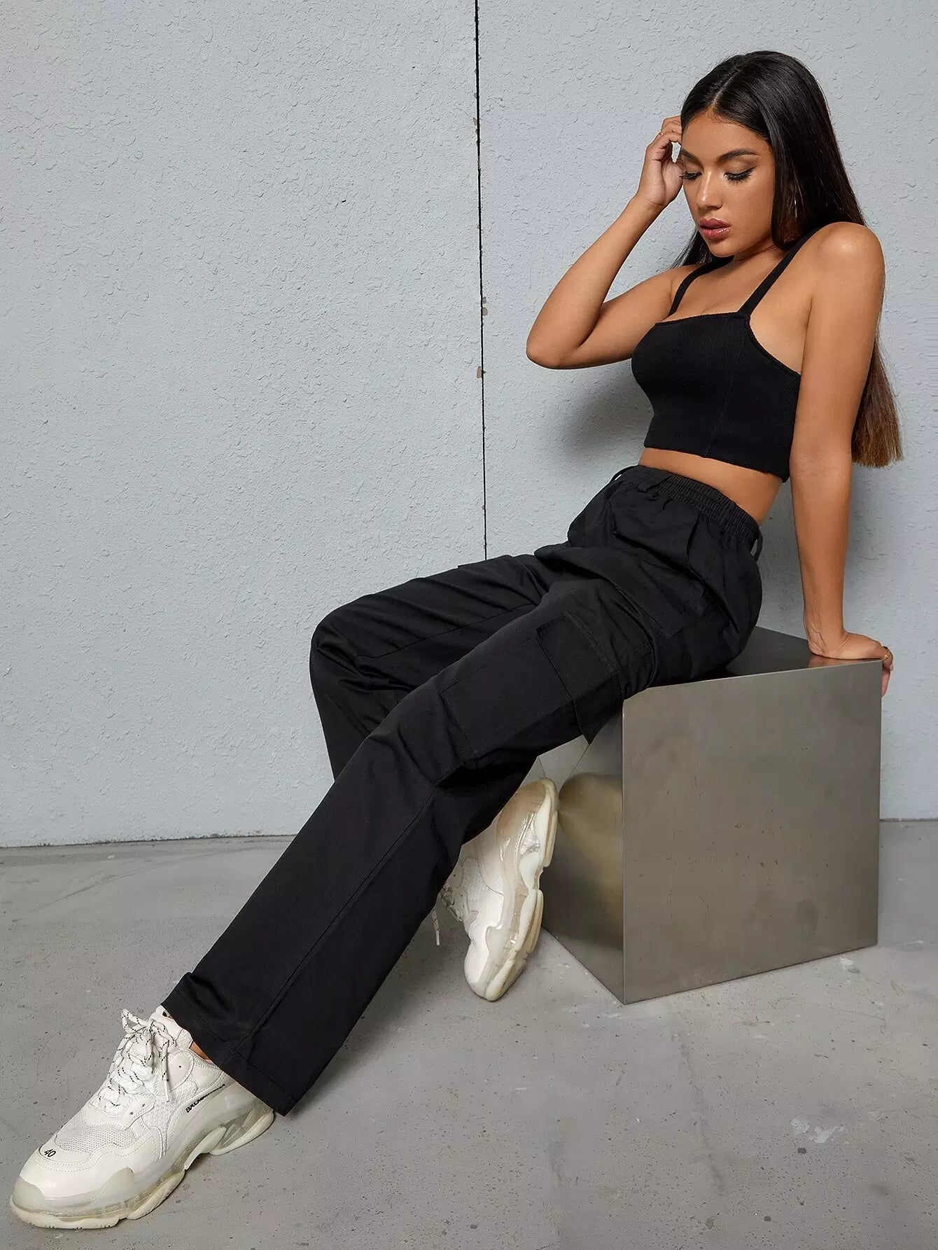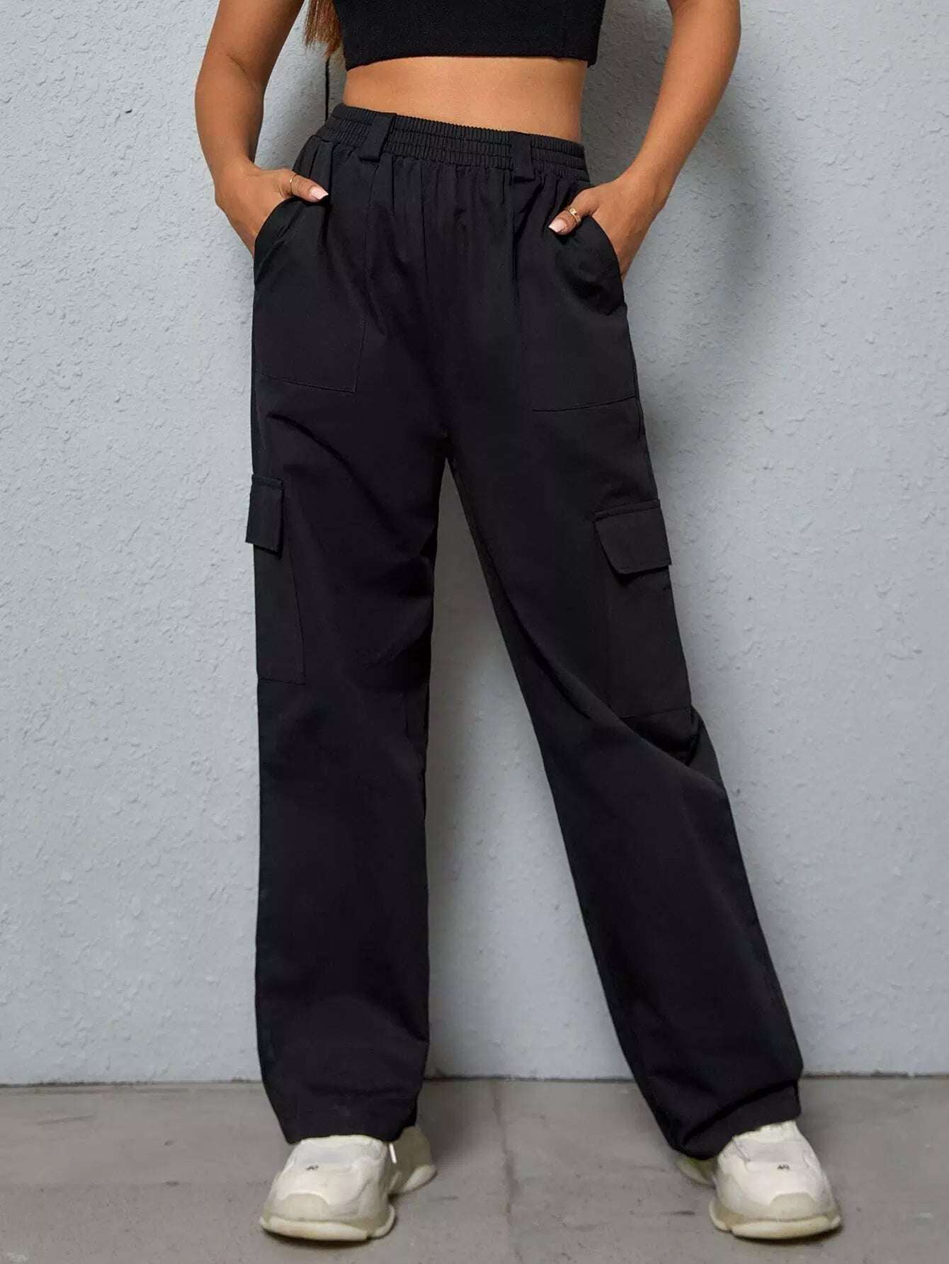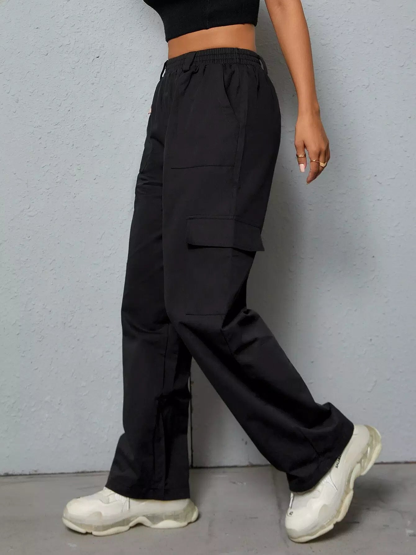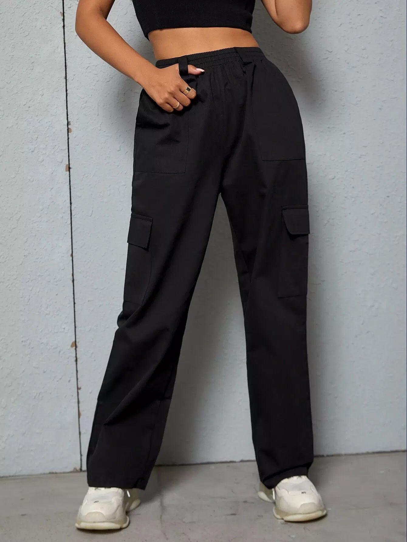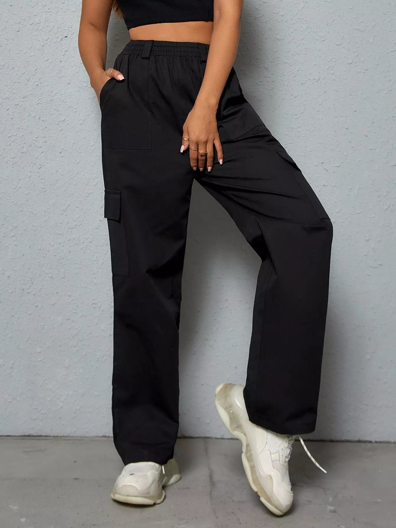 بنطلون بجيب عالي الخصر بغطاء جيب عالي الخصر