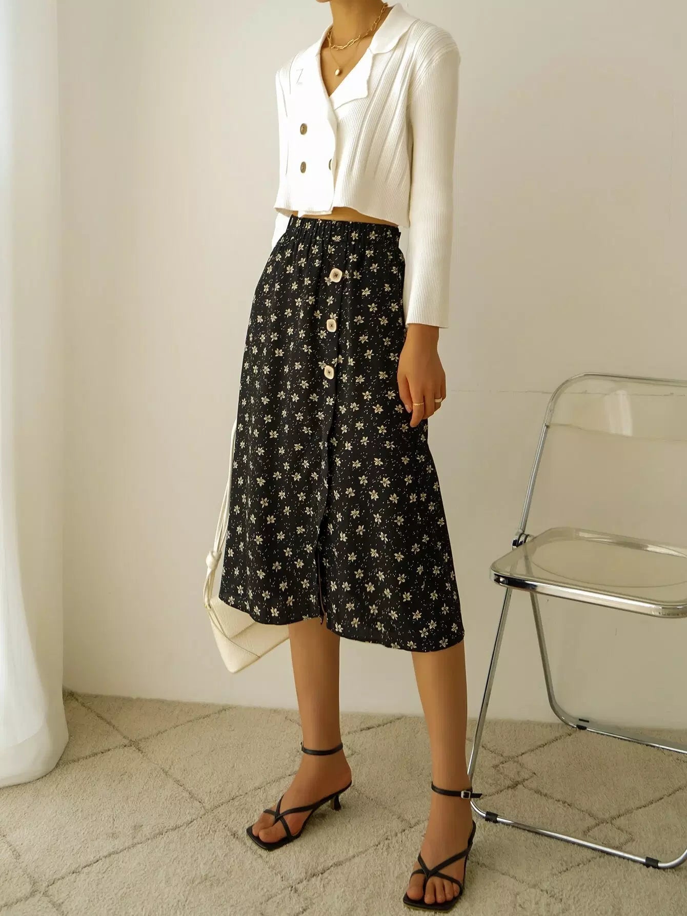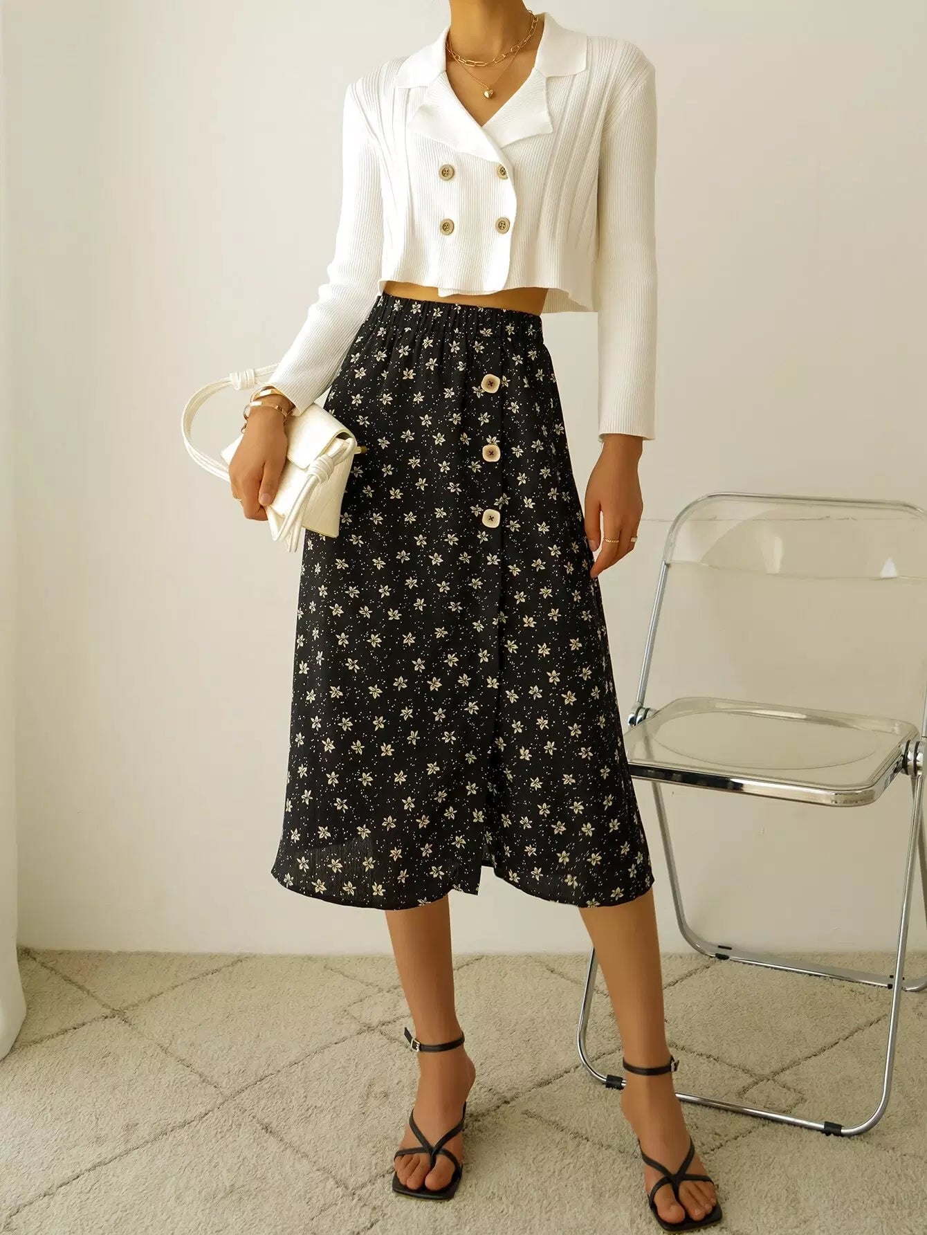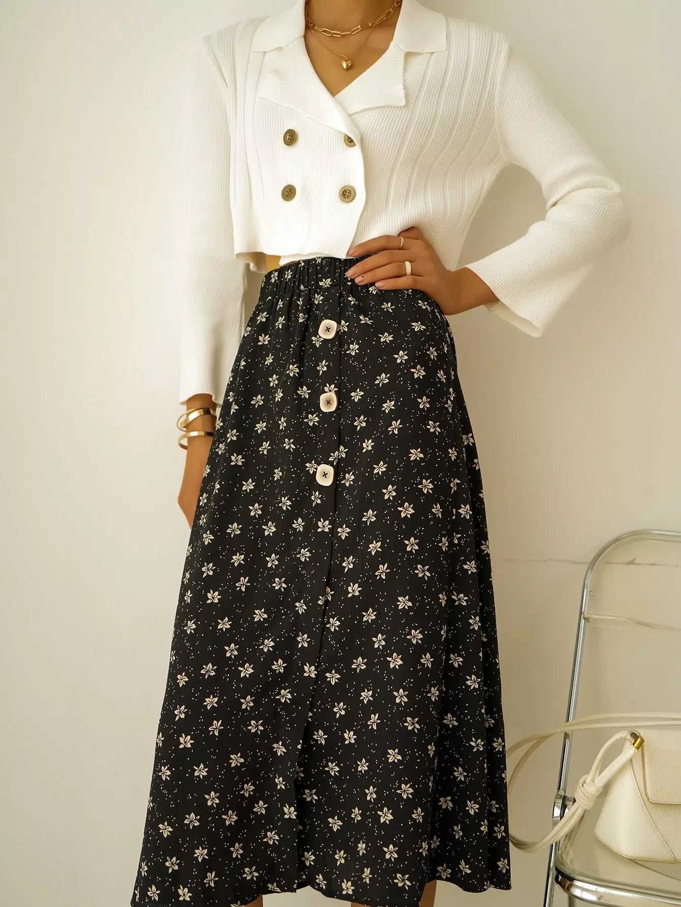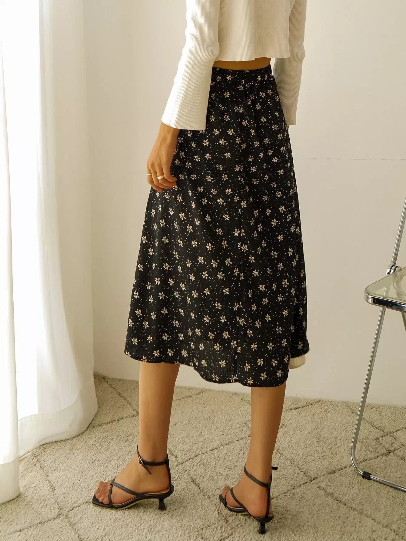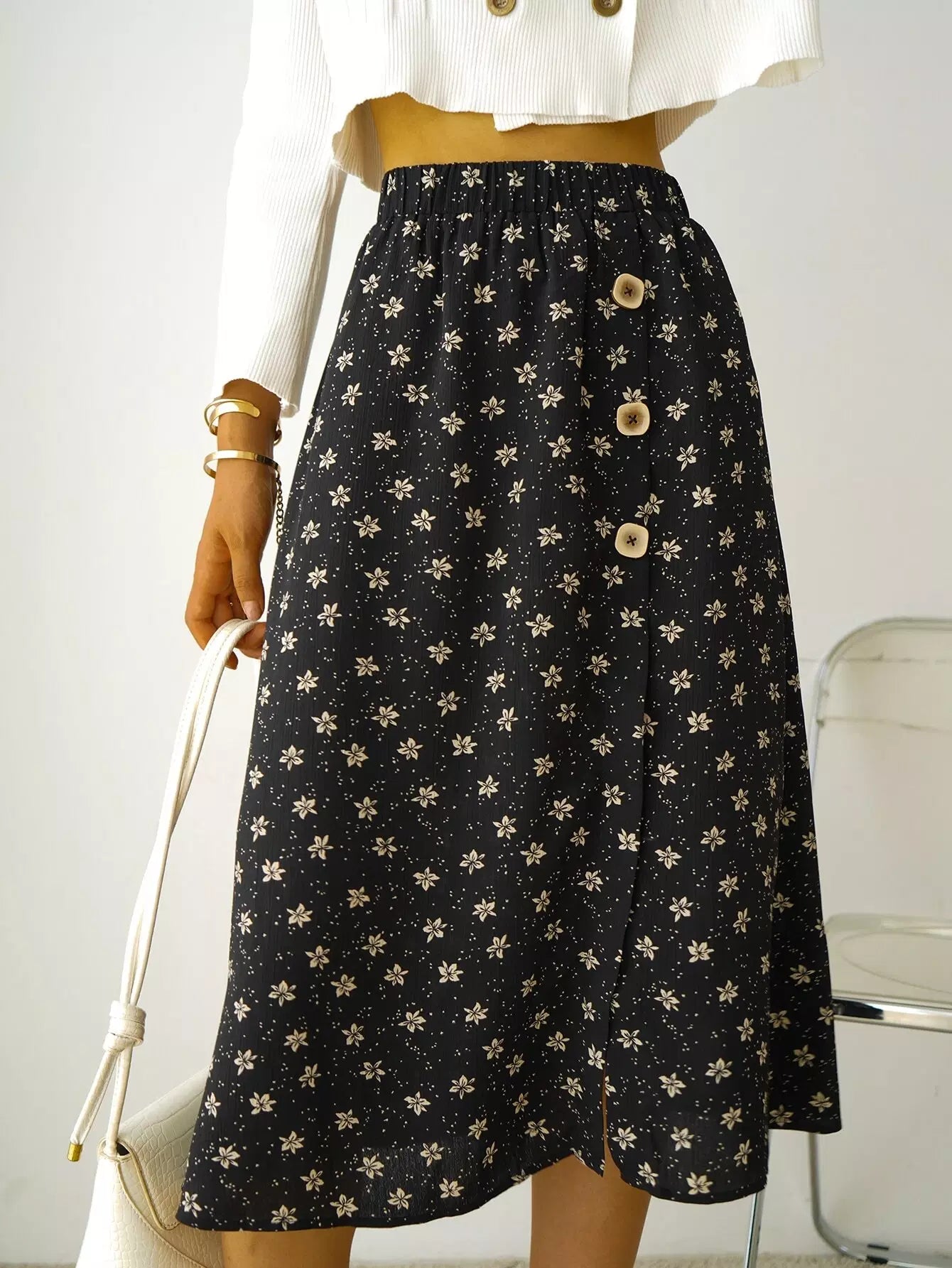تنورة عالية الخصر بطبعة زهور مطبوعة على صدر واحد