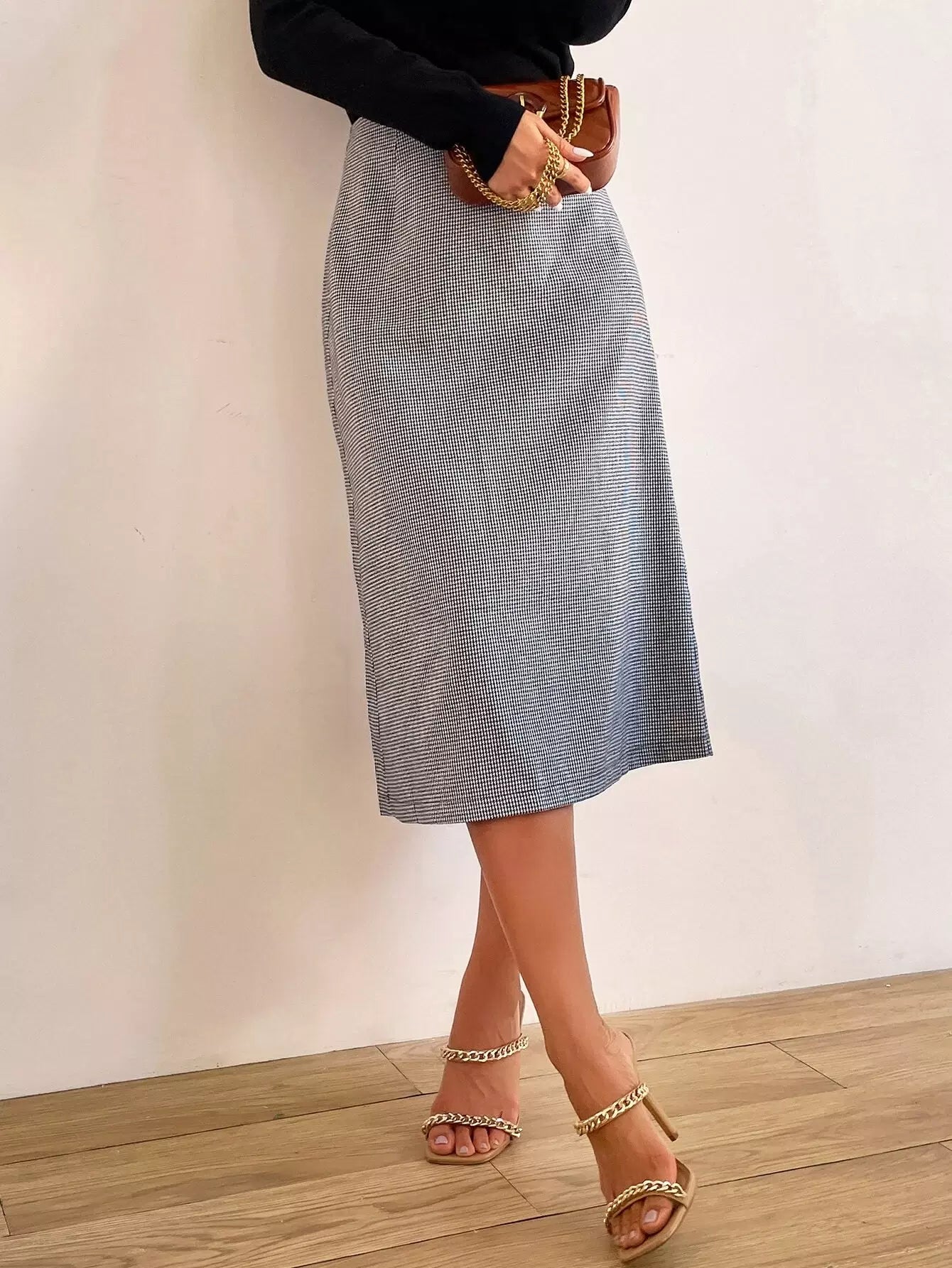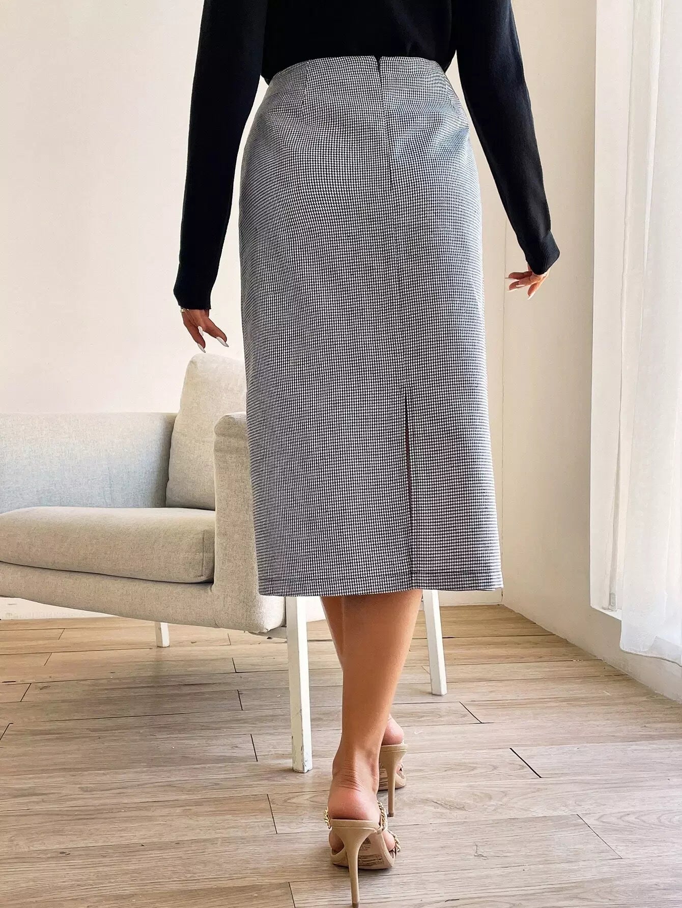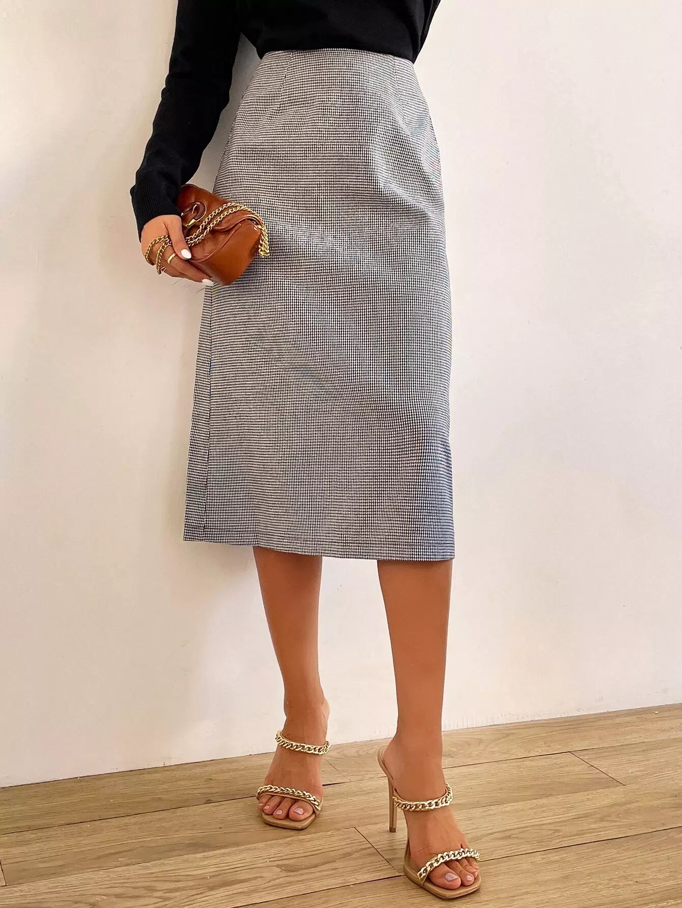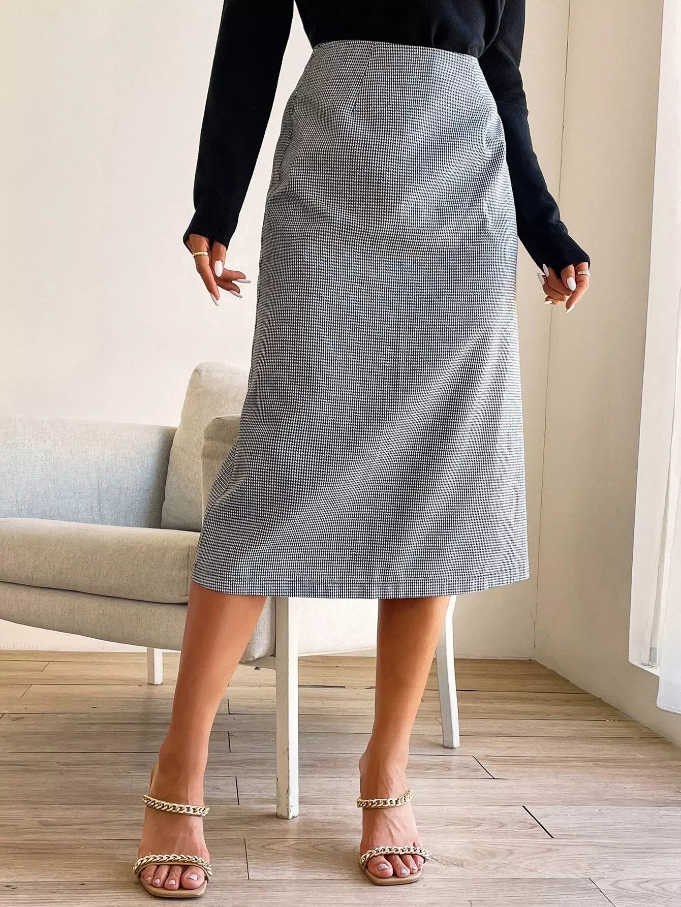تنورة بخصر عالٍ بفتحة خلفية عالية الخصر بفتحة خلفية