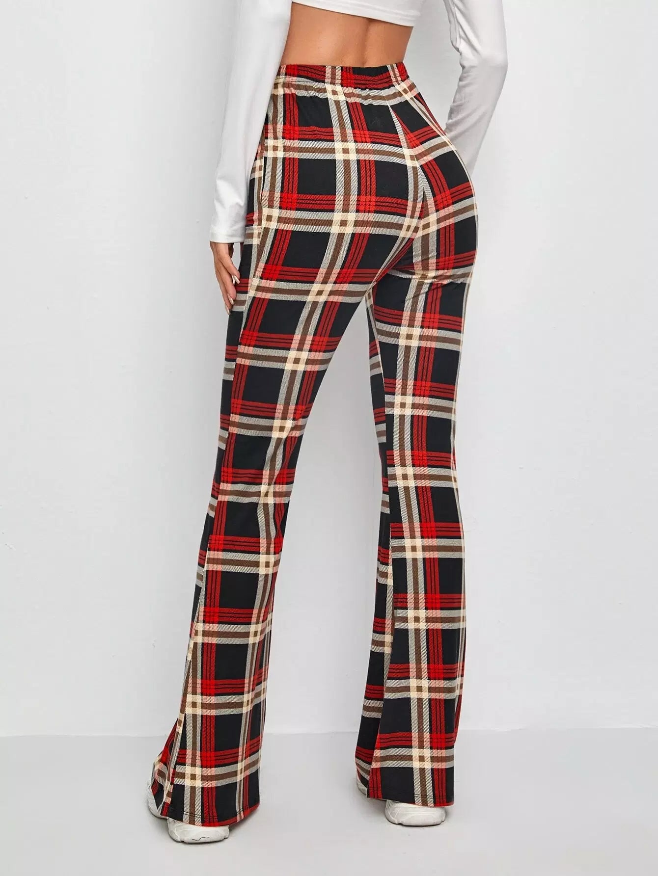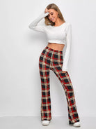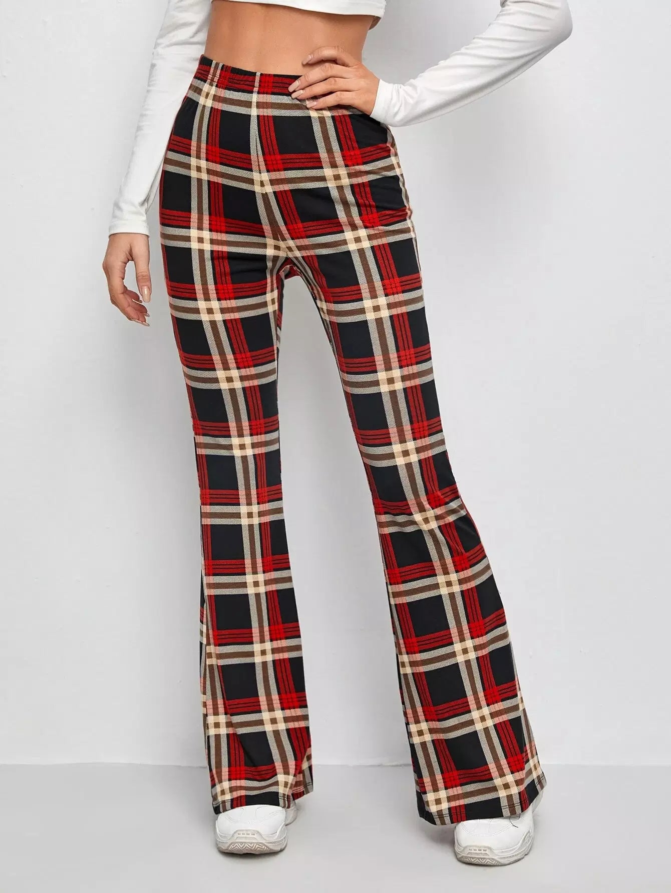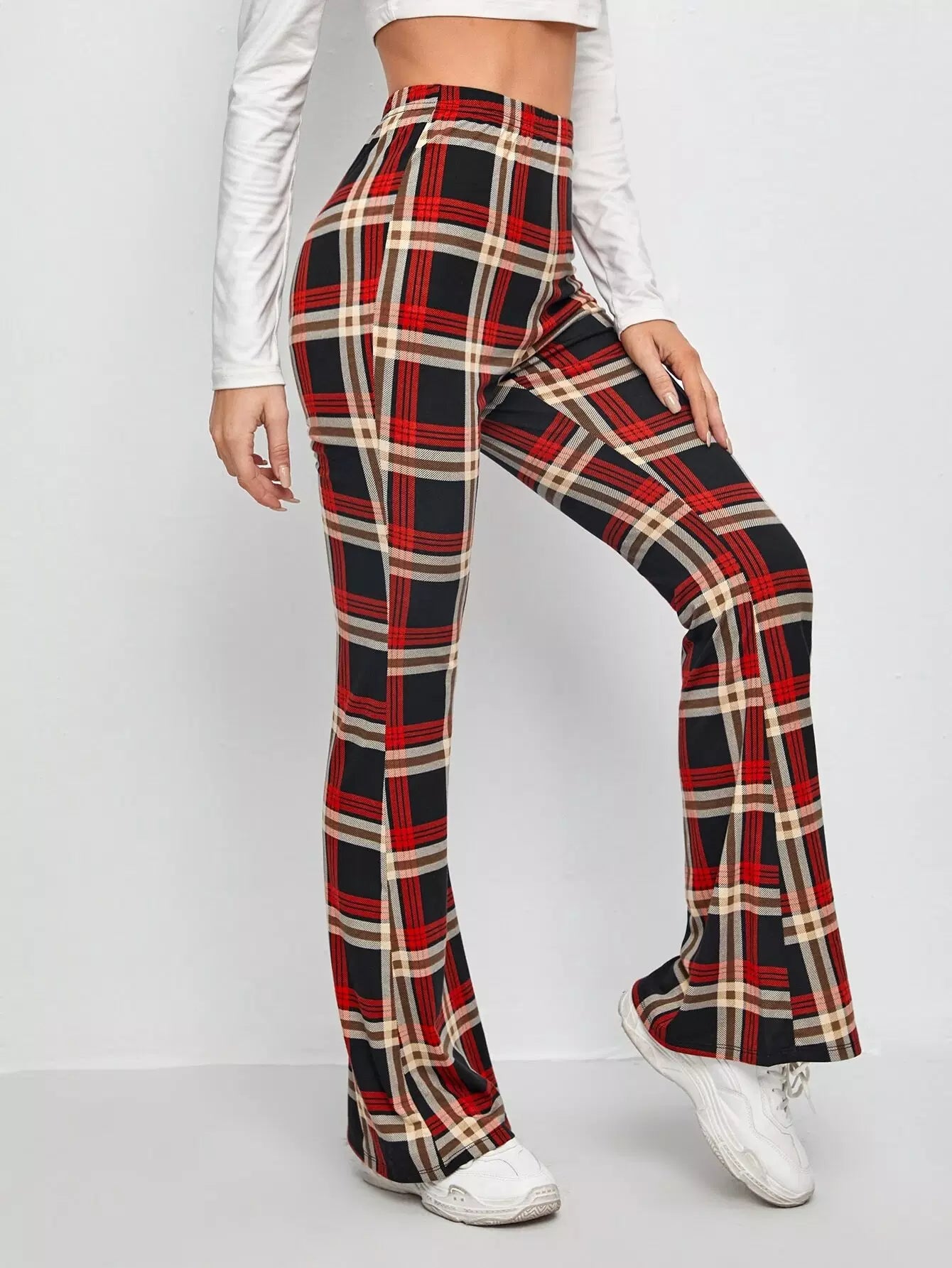 بنطلون بخصر عالٍ منقوش بساق واسعة منقوشة
