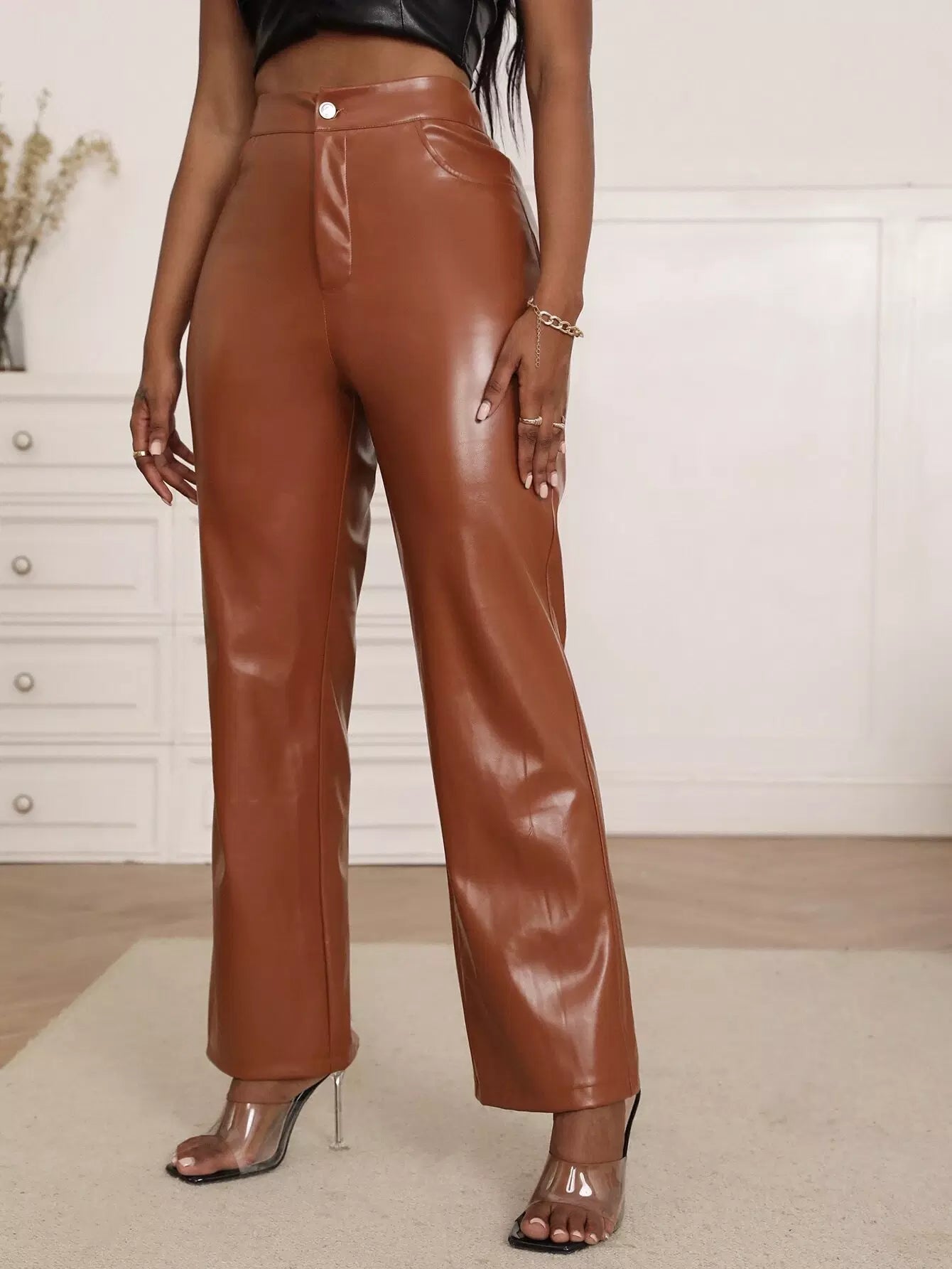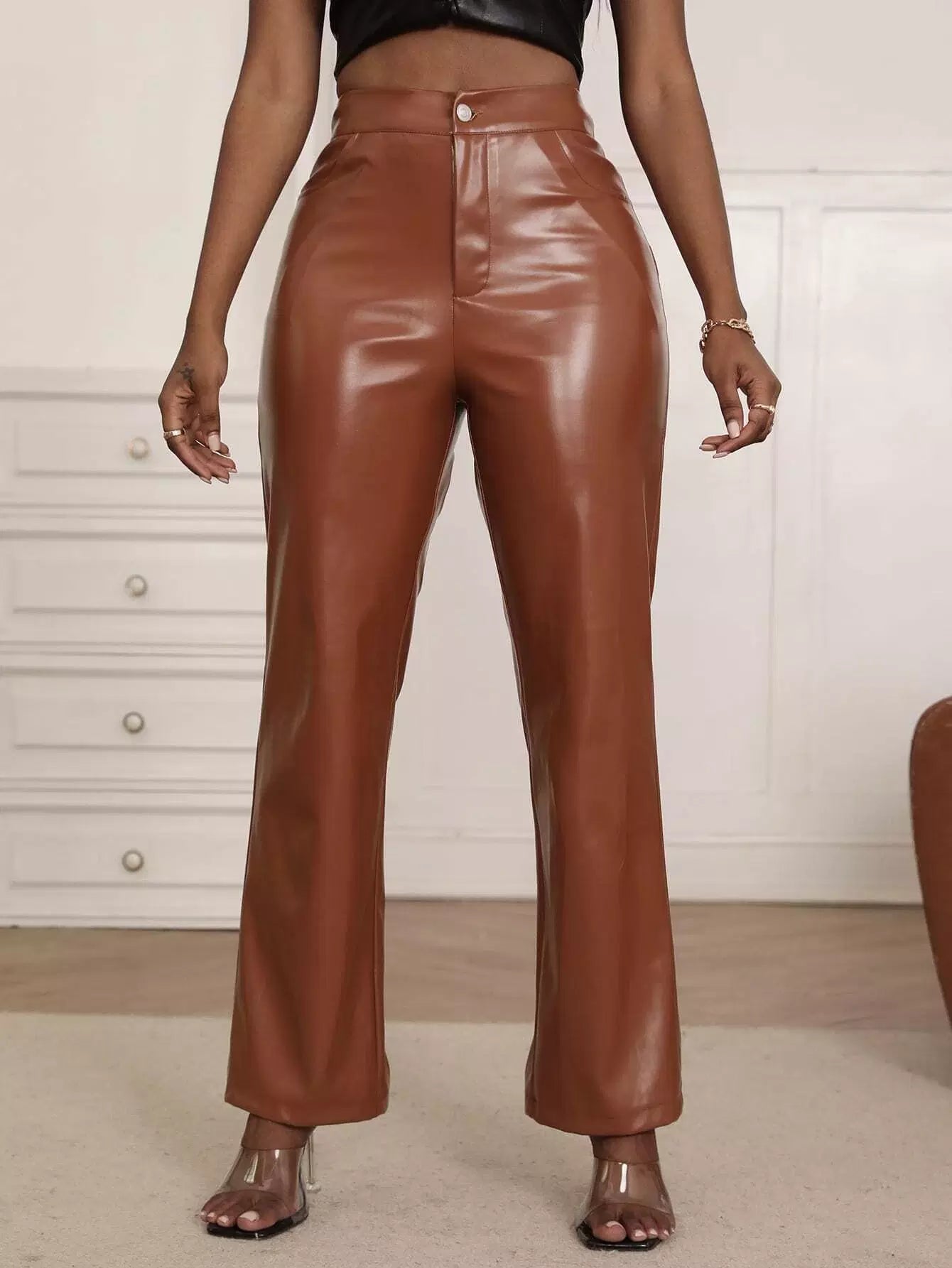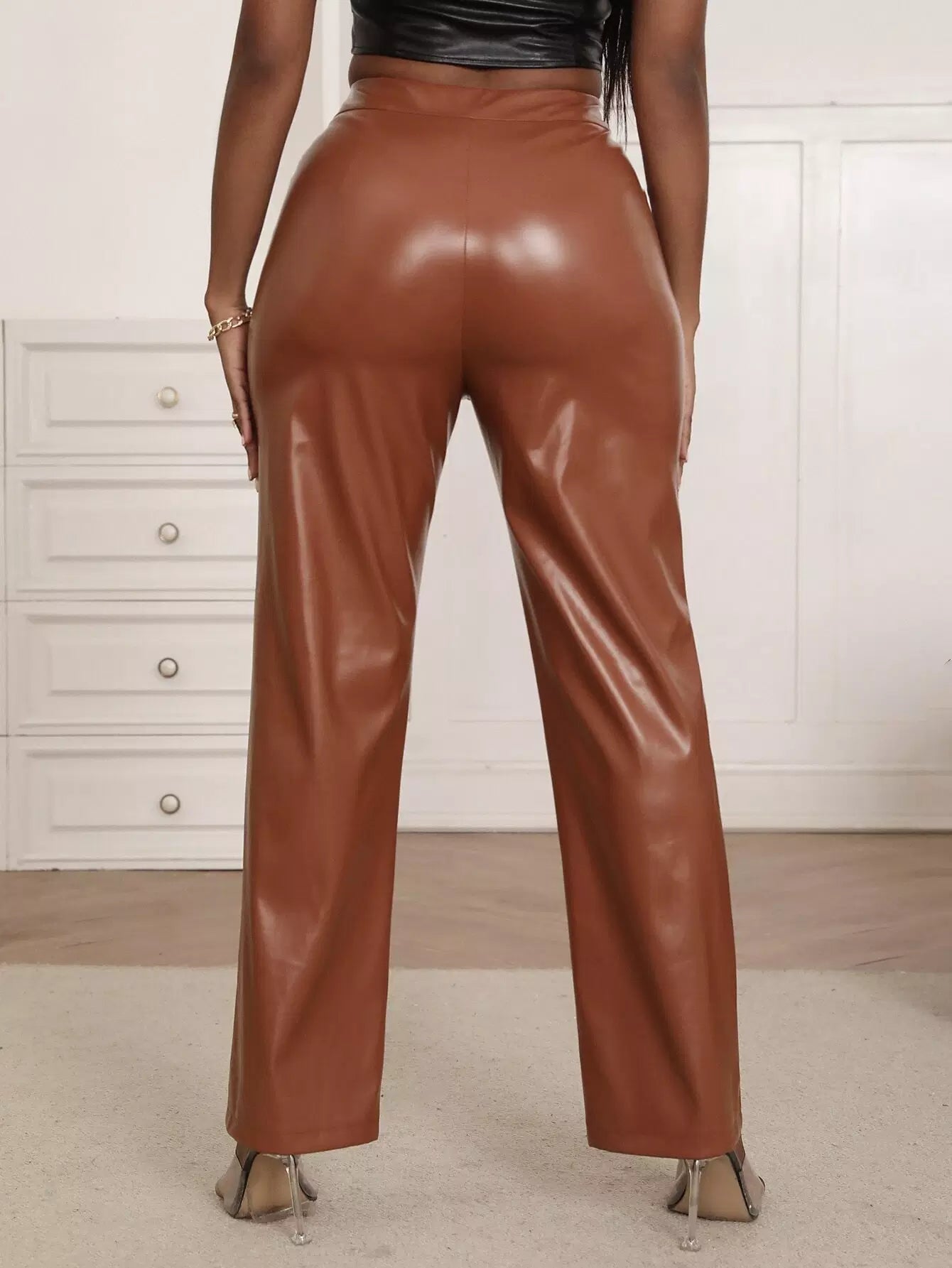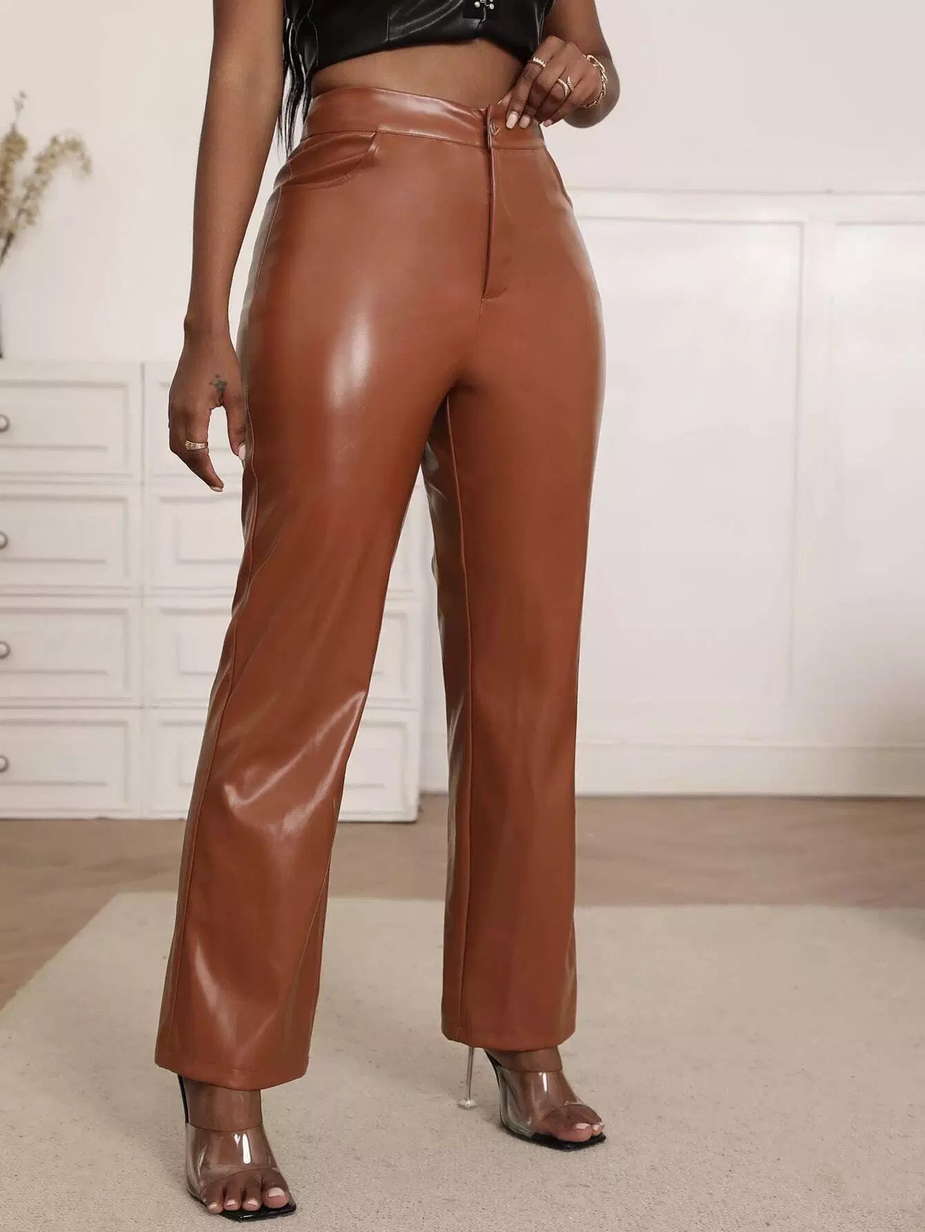 بنطلون من جلد البولي يوريثان عالي الخصر