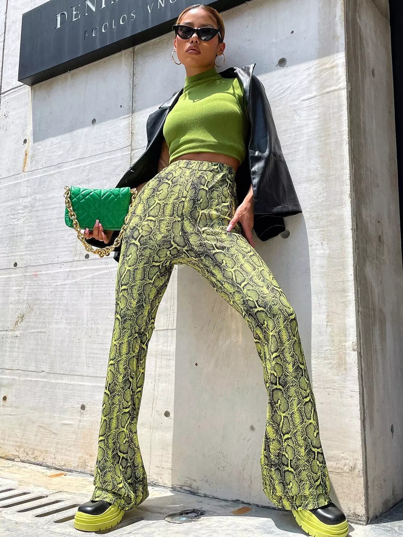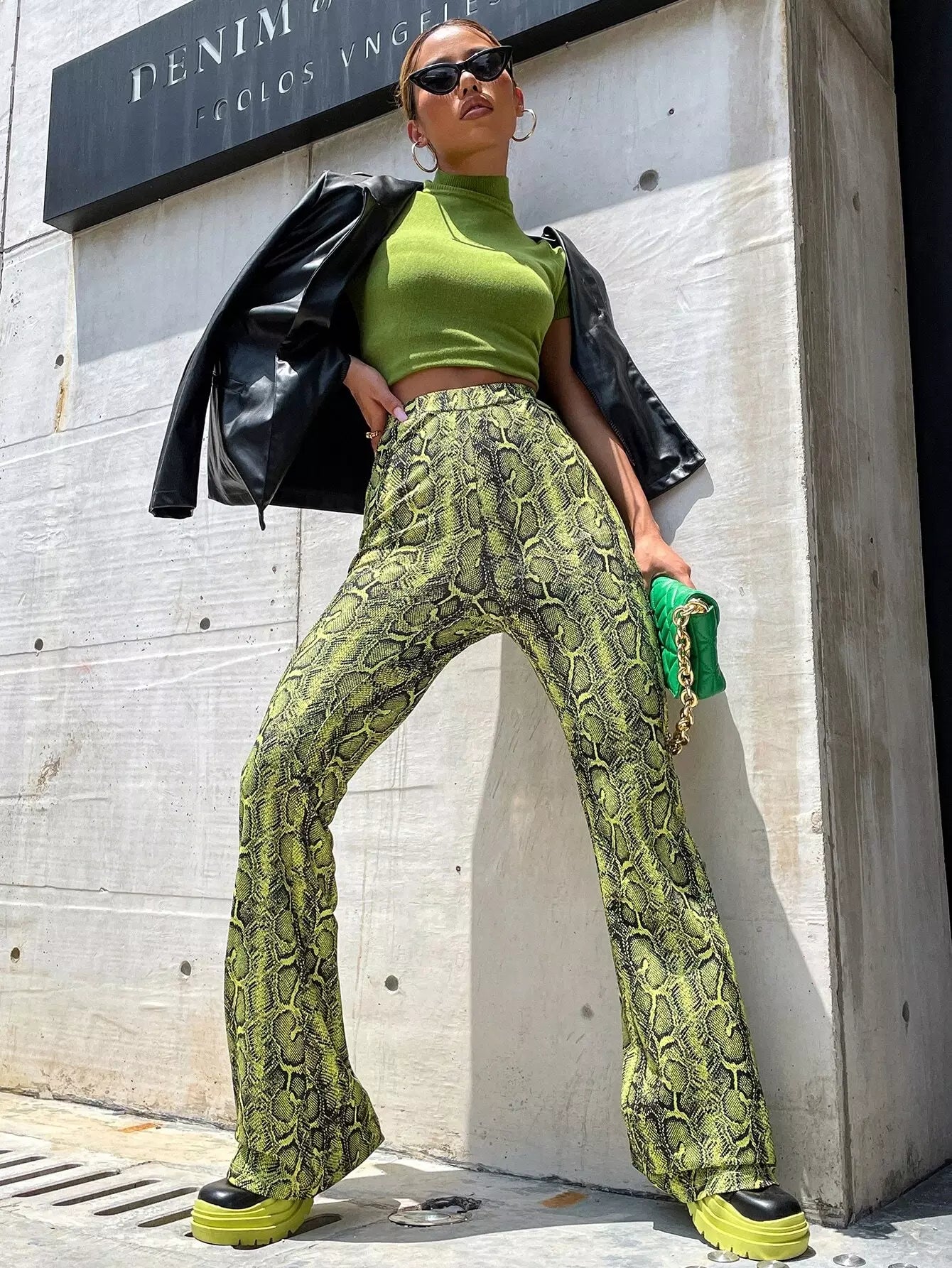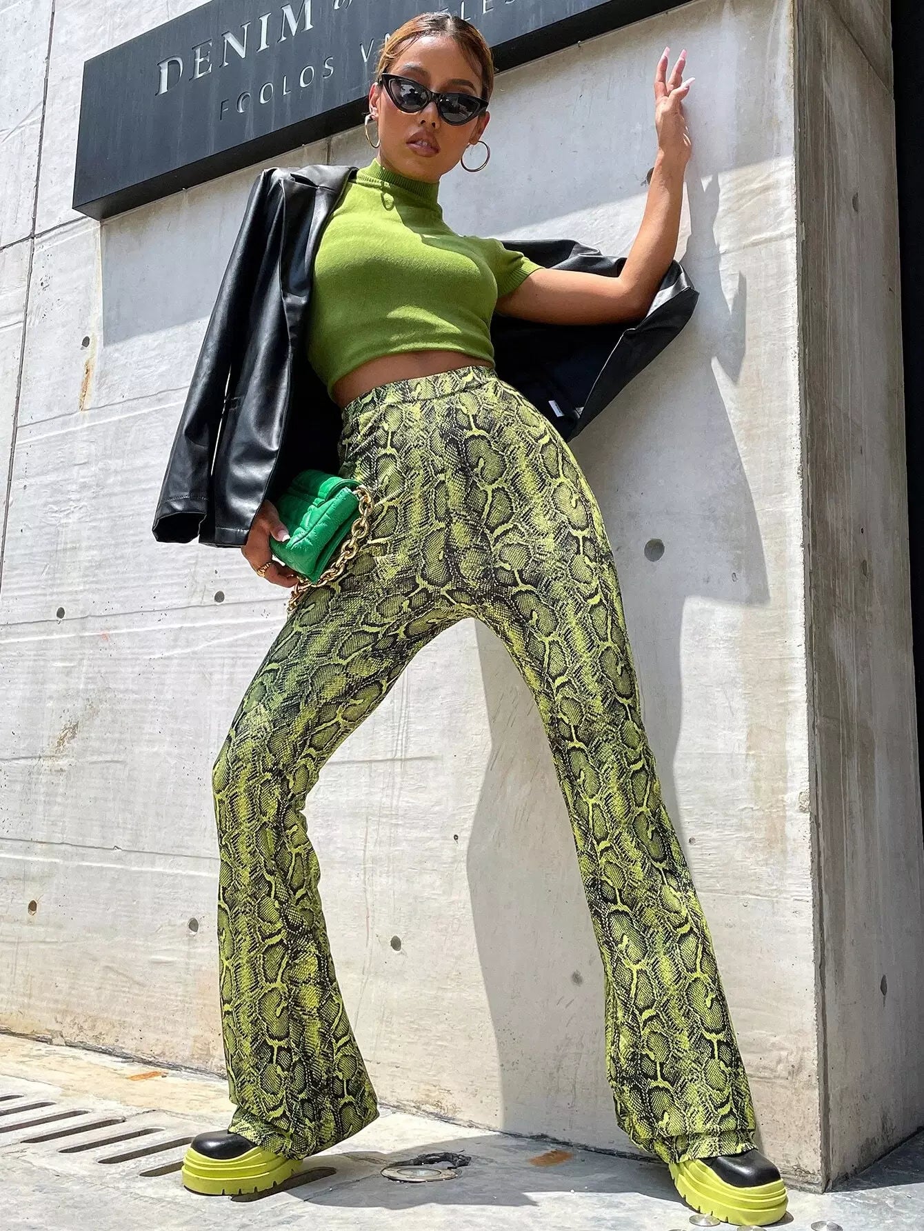 بنطلون بخصر عالٍ بنقشة جلد الثعبان بخصر عالٍ