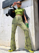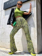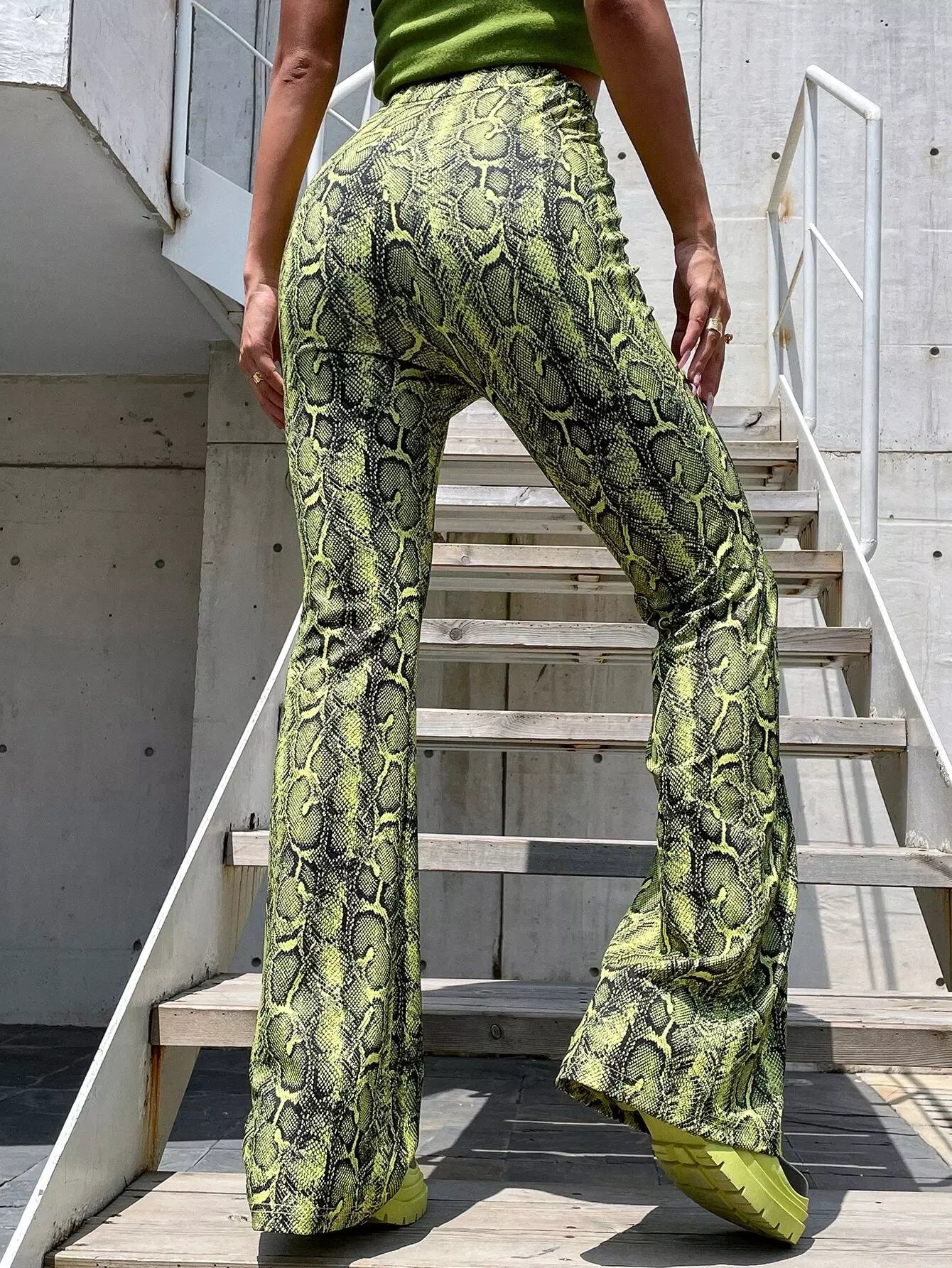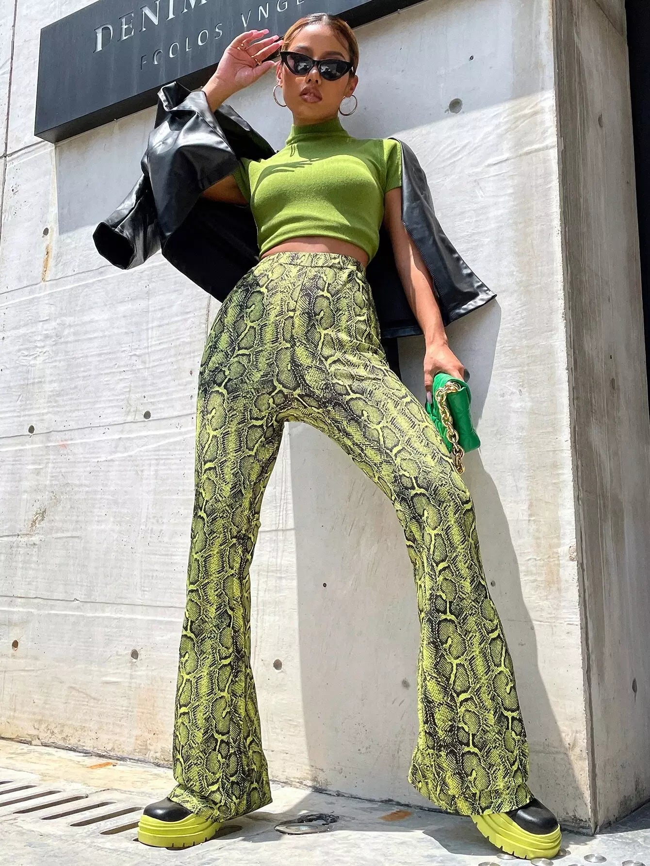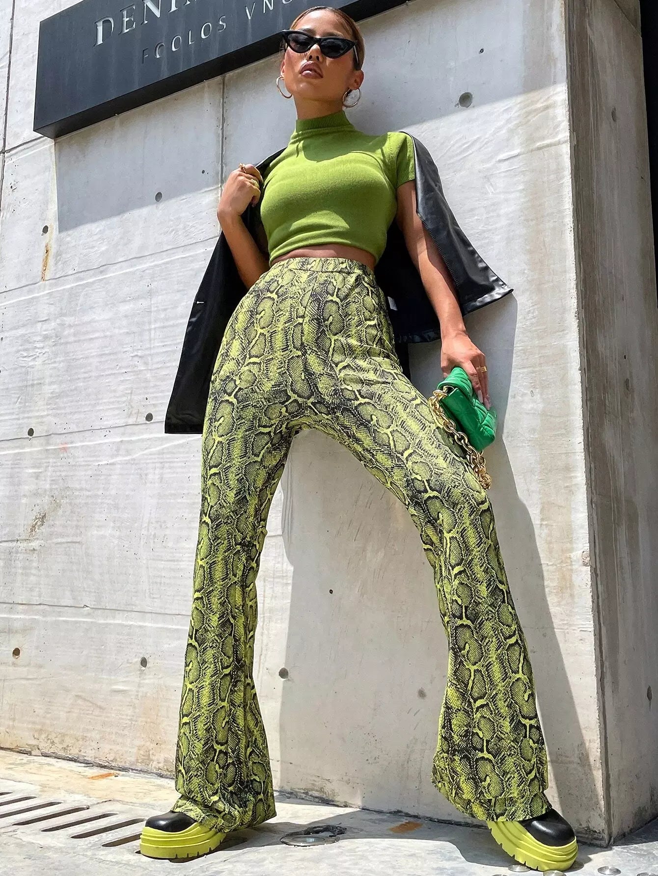 بنطلون بخصر عالٍ بنقشة جلد الثعبان بخصر عالٍ