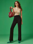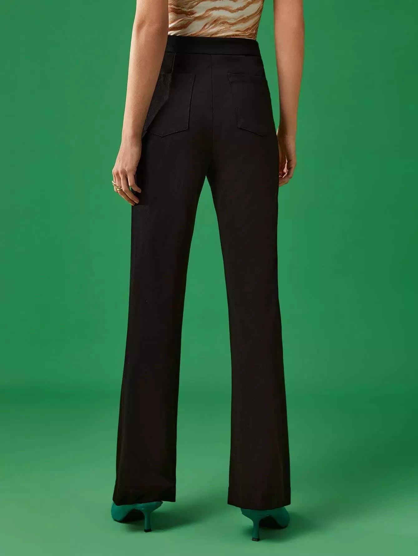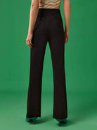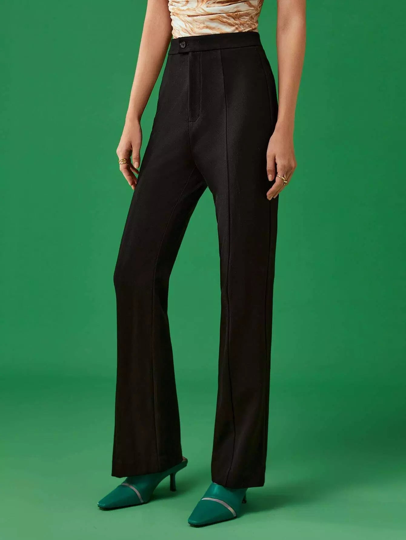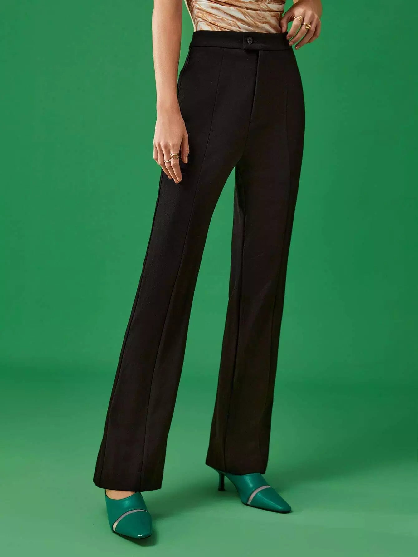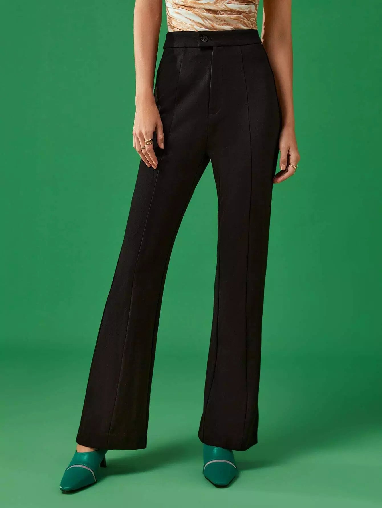 بنطلون بخصر عالٍ سادة واسع الساقين عالي الخصر