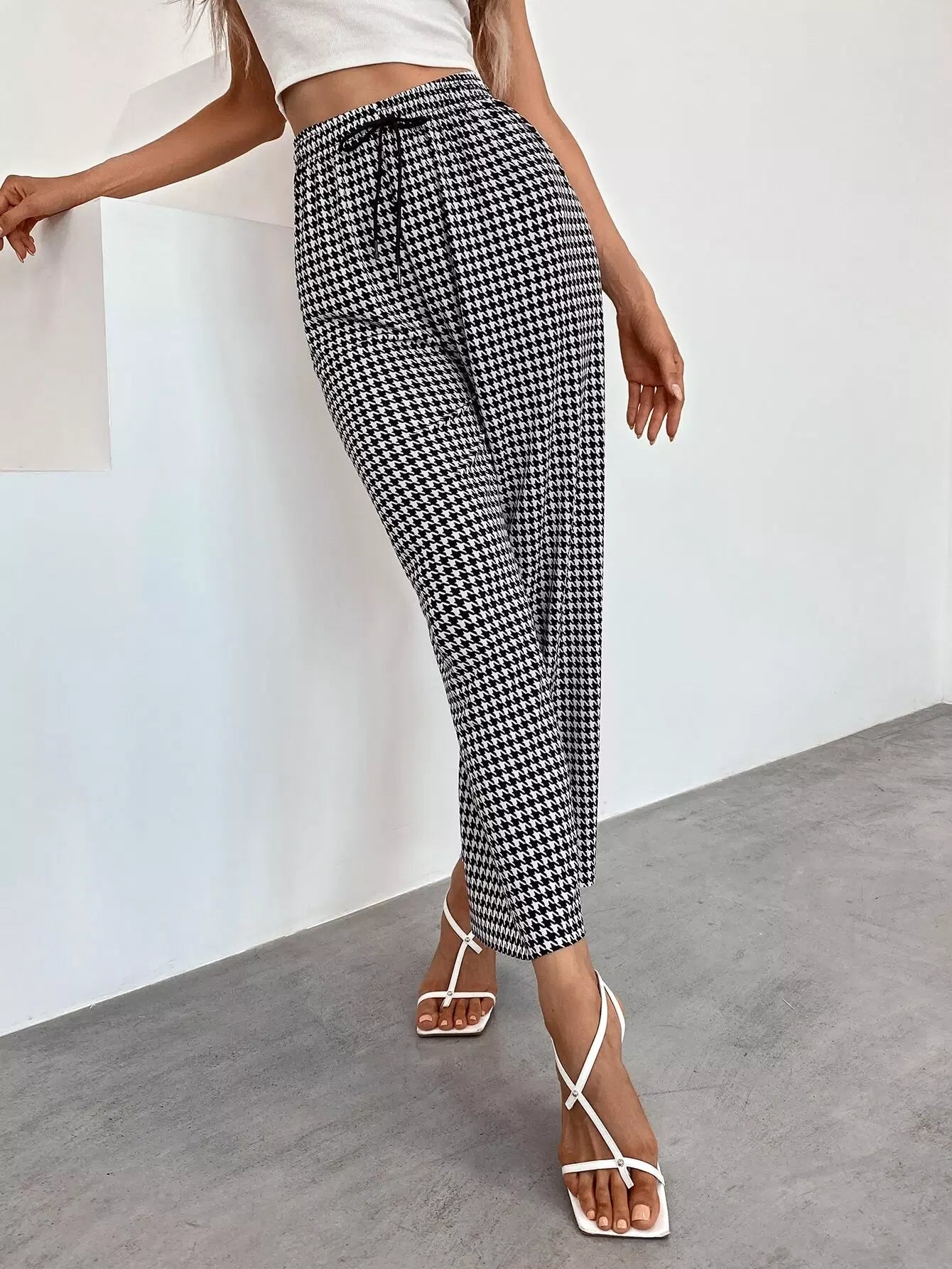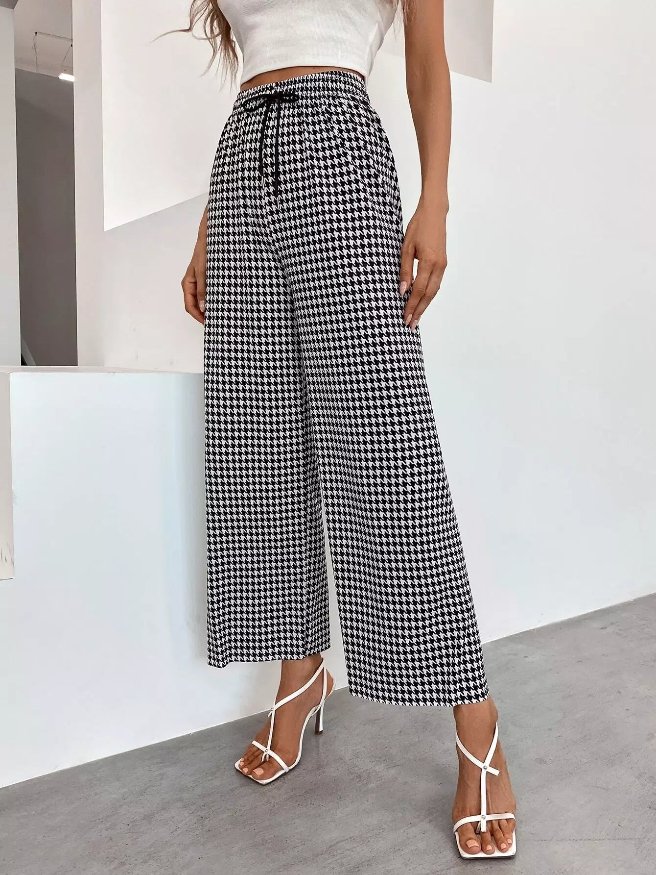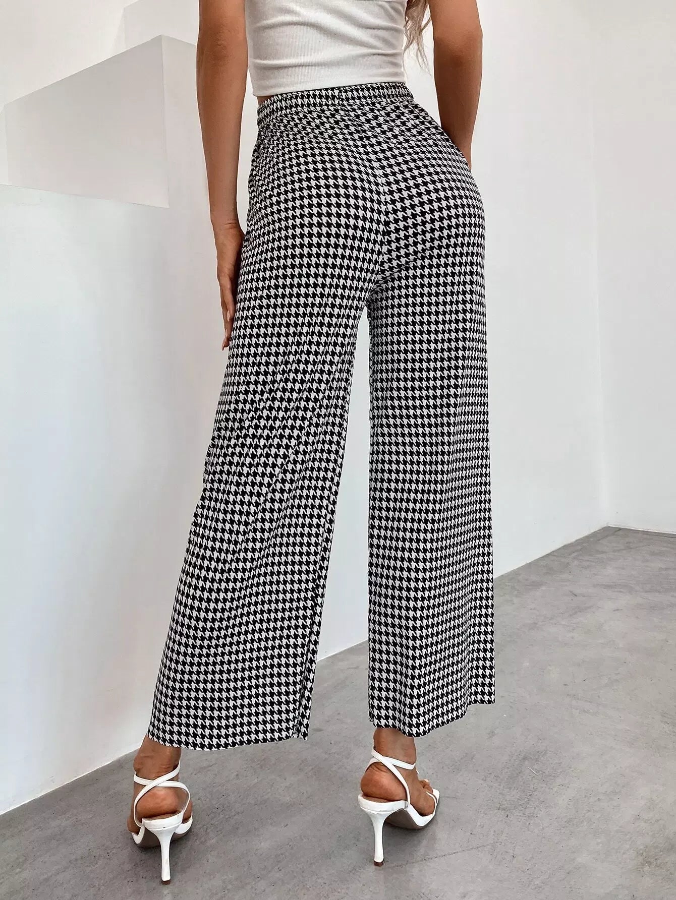 بنطلون بطبعة هاوندستوث واسع الساقين