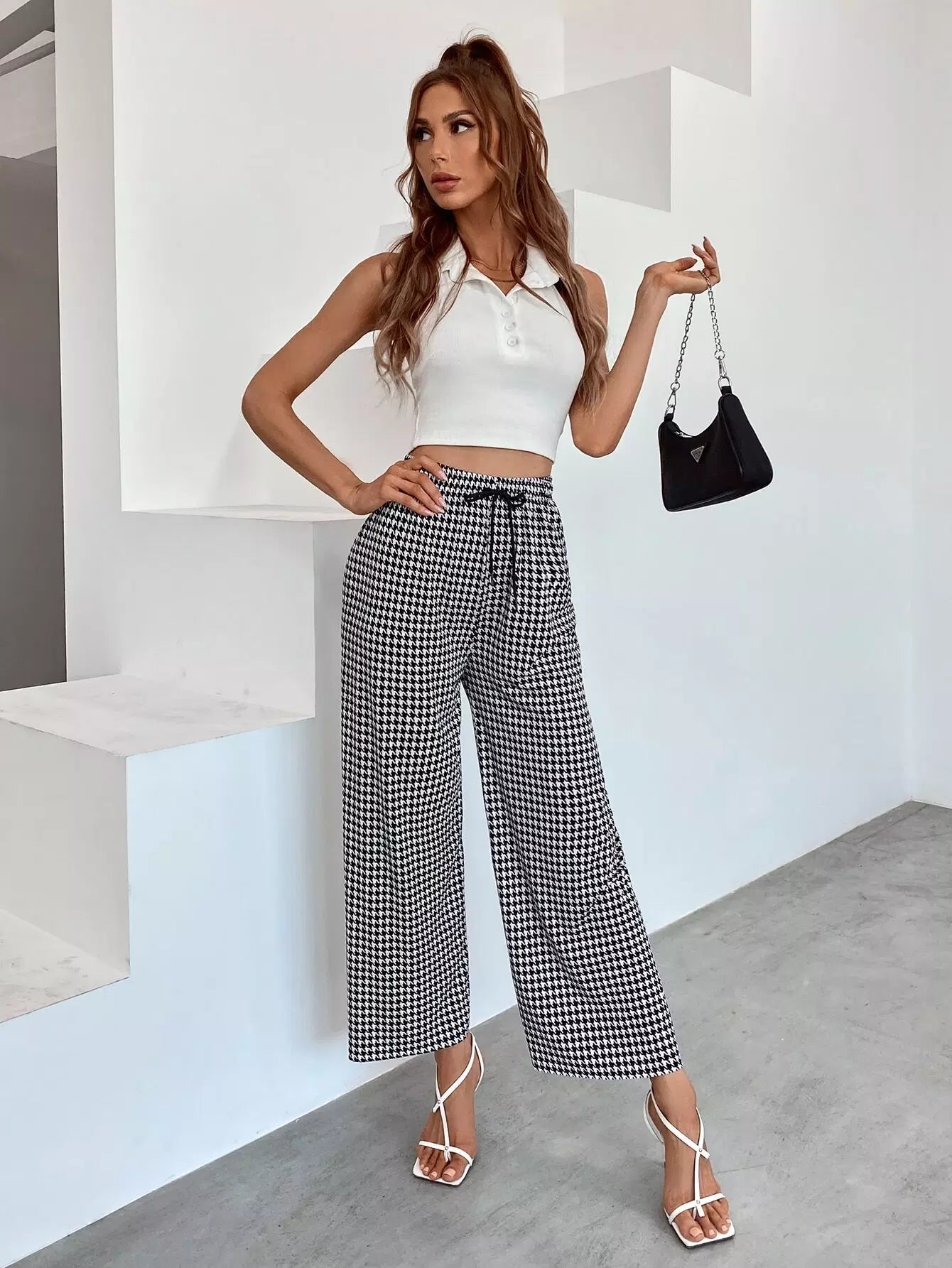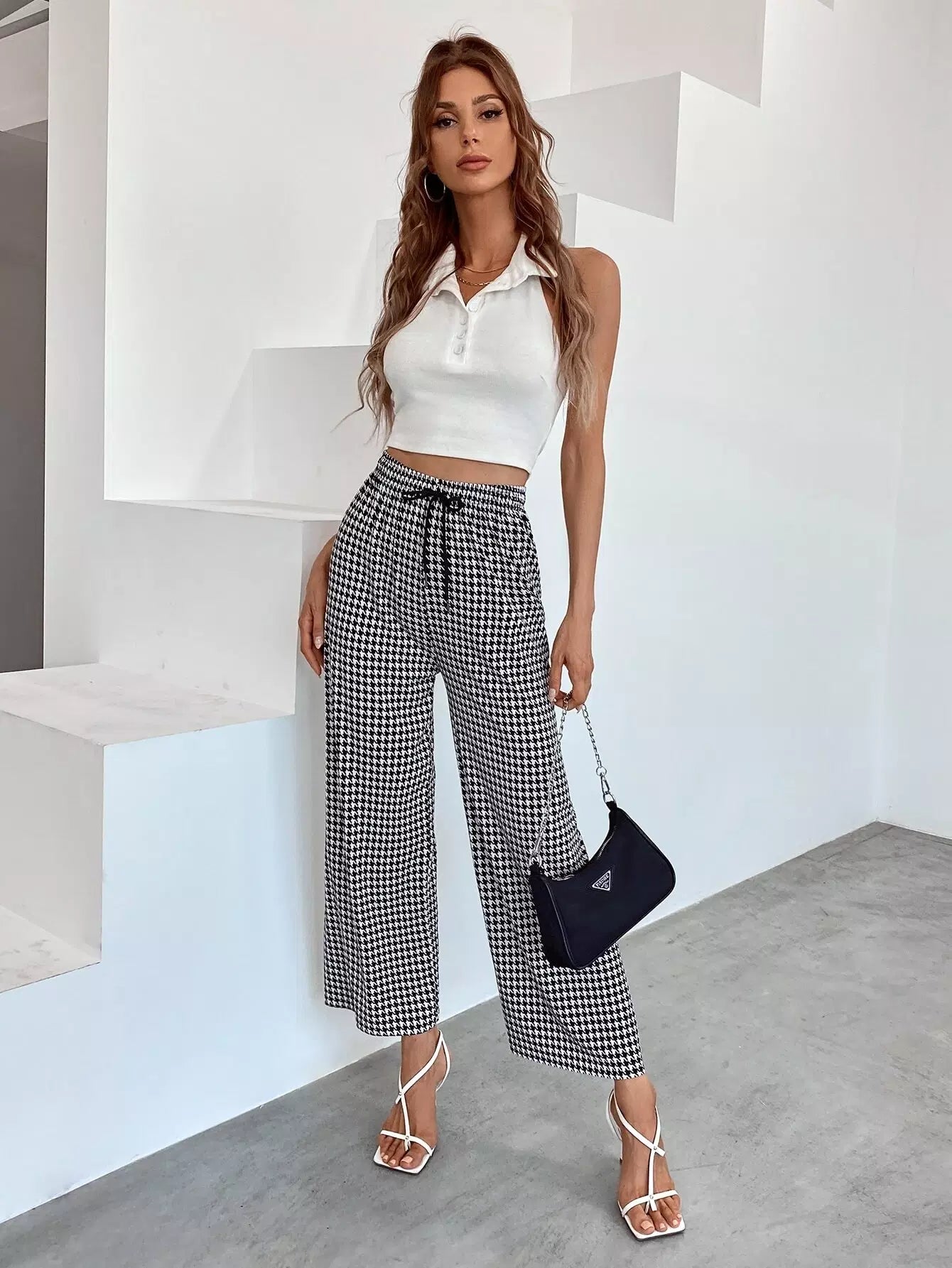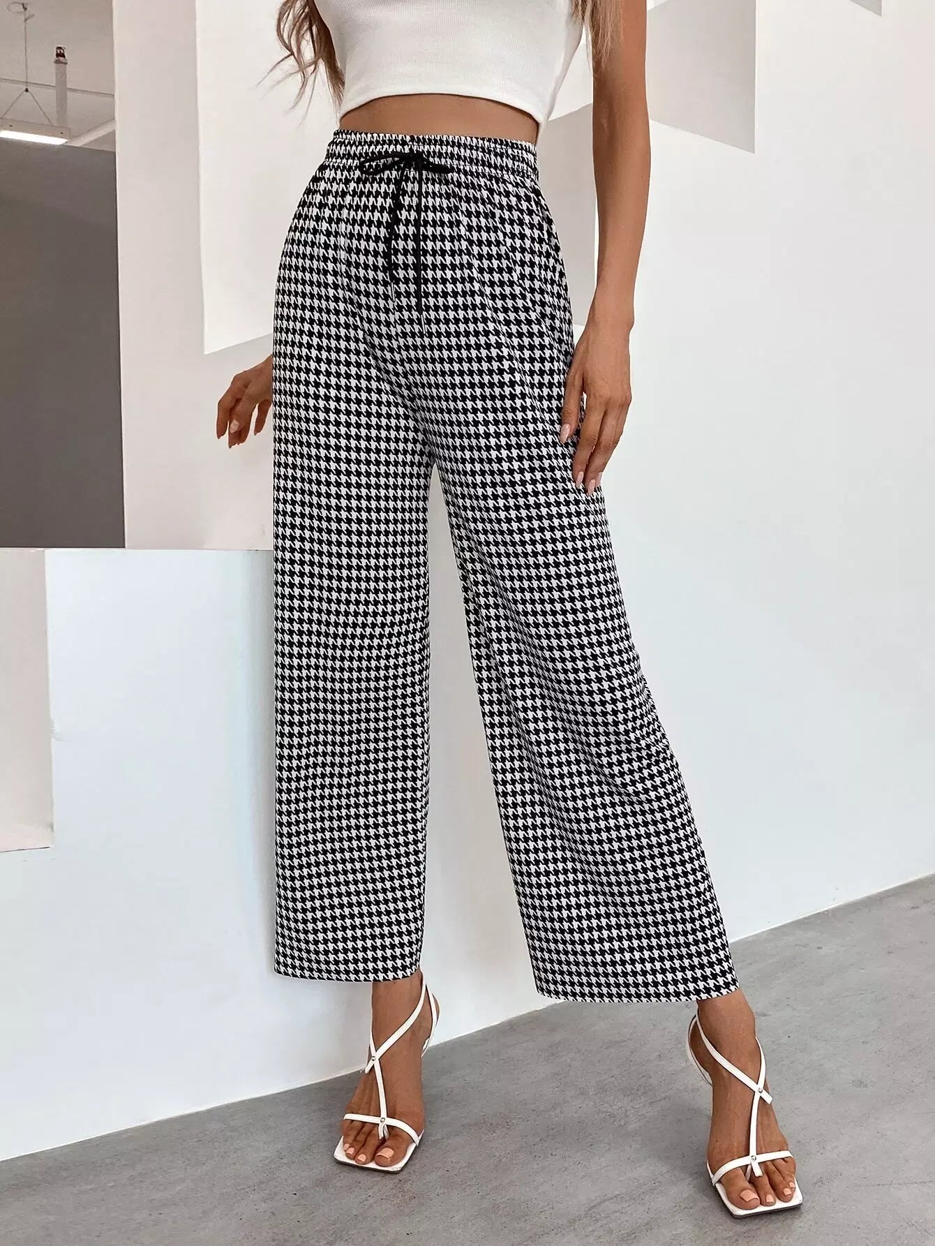 بنطلون بطبعة هاوندستوث واسع الساقين