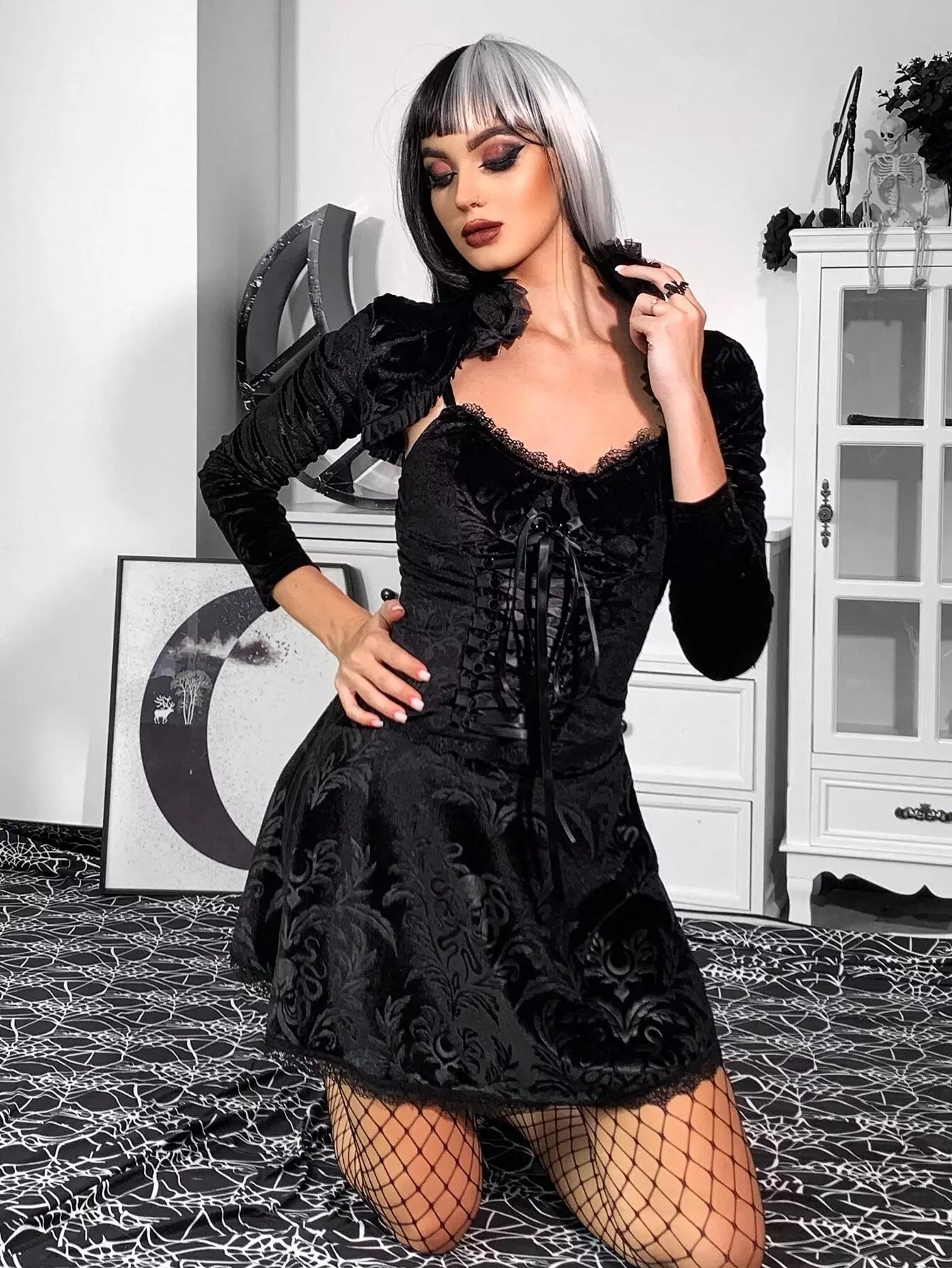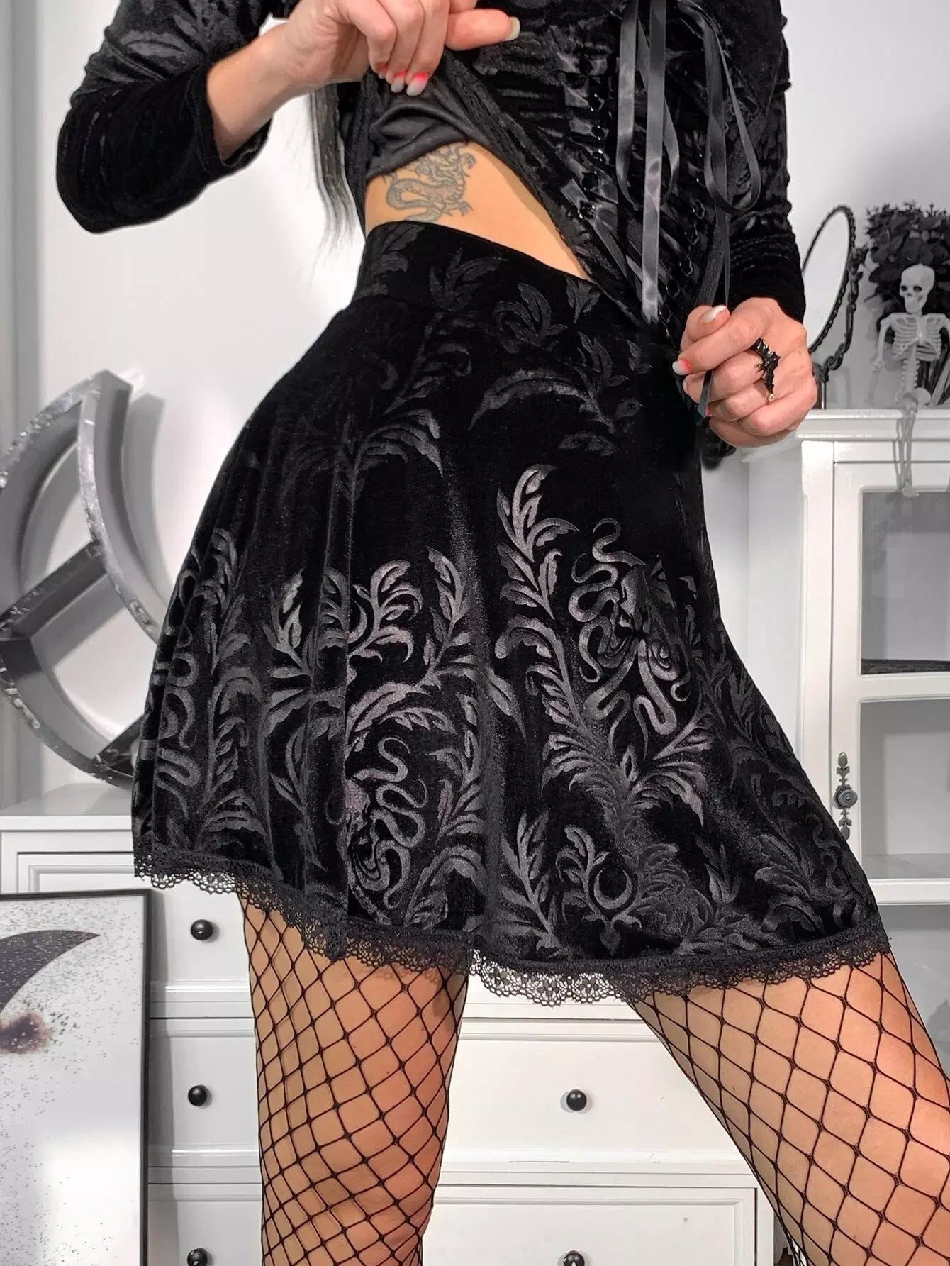 تنورة مخملية بحاشية دانتيل جاكارد مخملية