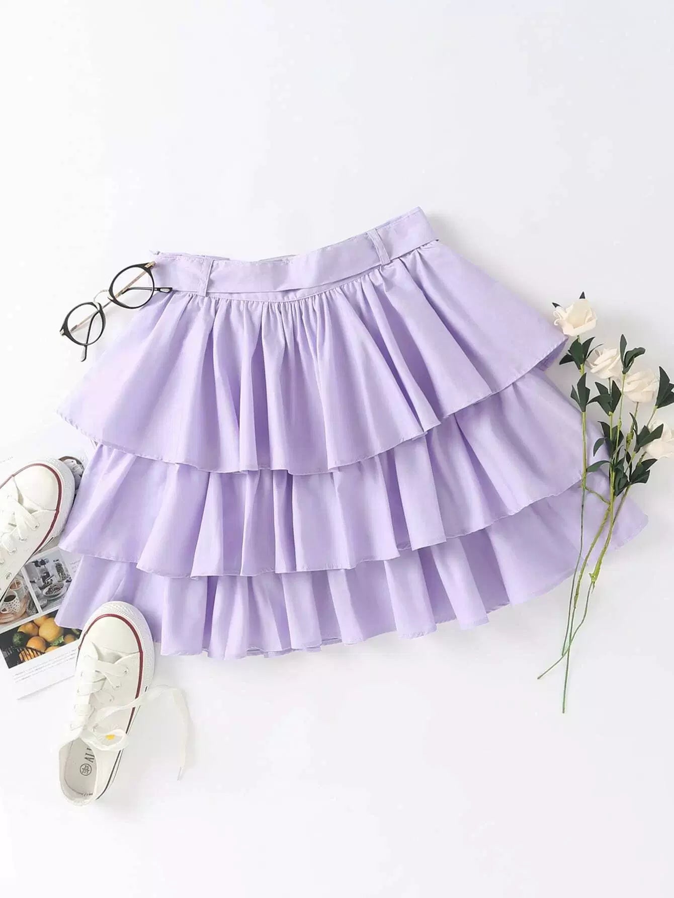 تنورة ذات طبقات من الكشكشة بدون حزام