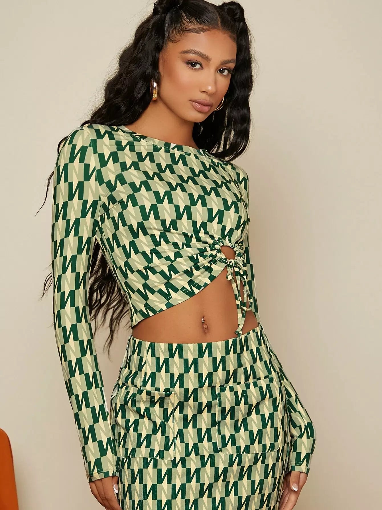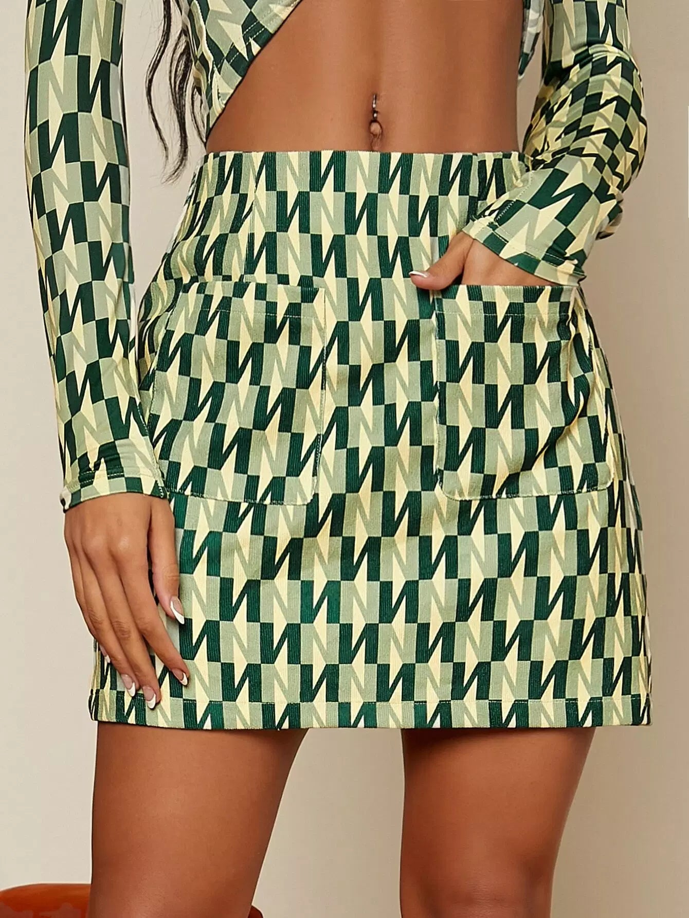 تنورة سروال قصير مرقع بجيب مرقع برسومات حروف