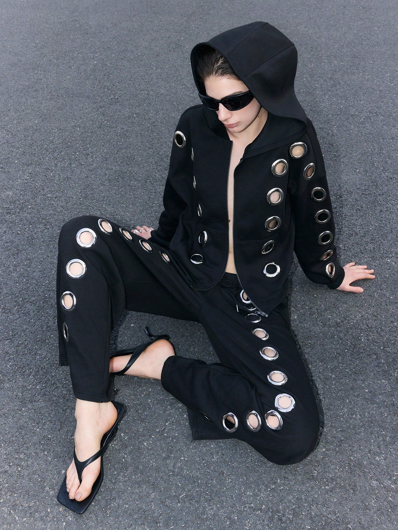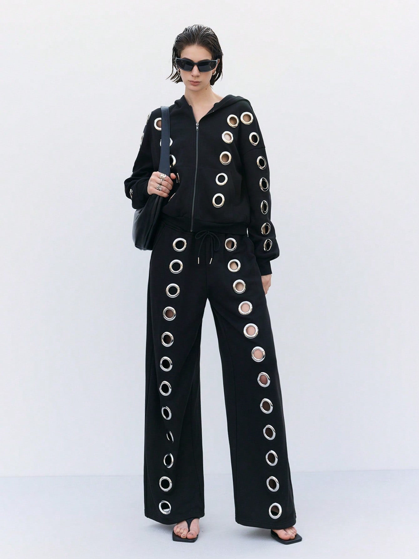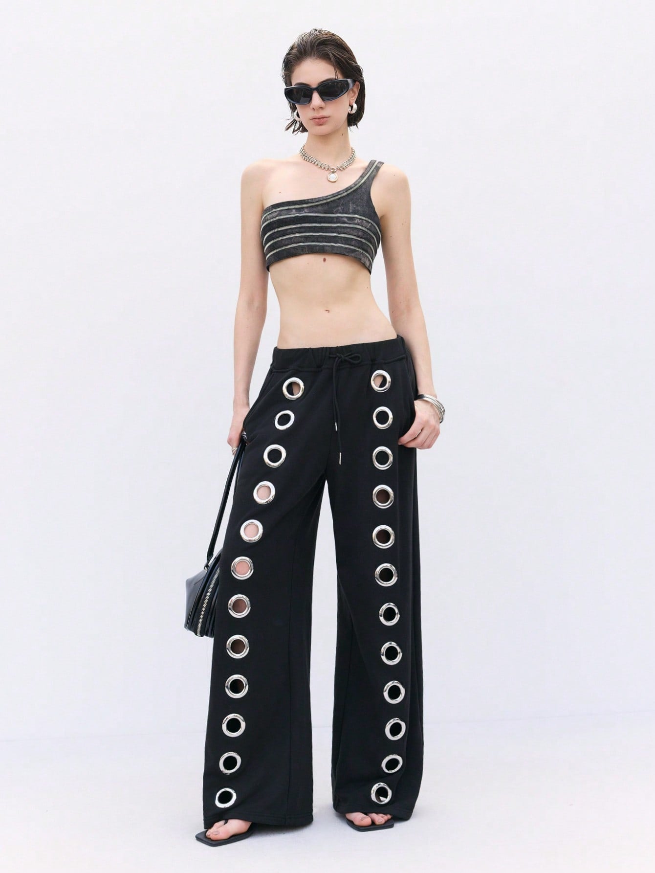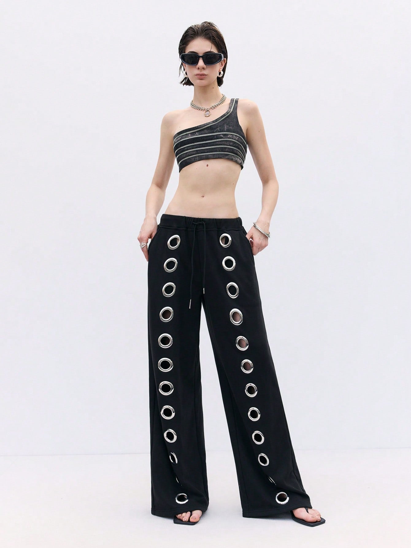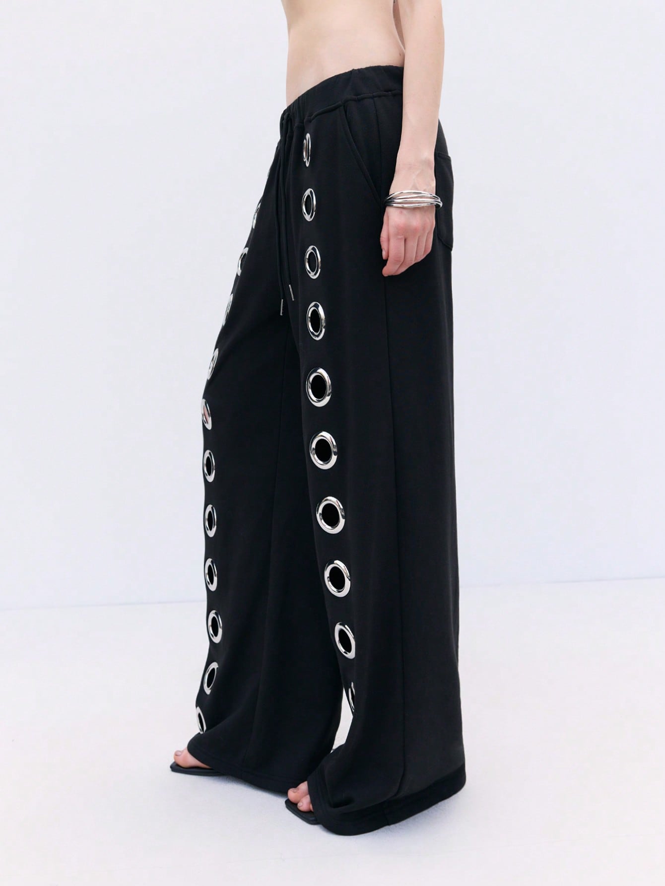 بنطال رياضي فضفاض واسع الساقين بتصميم عصري من LYSMO للجنسين، مزين بفتحات معدنية، مناسب للارتداء اليومي.
