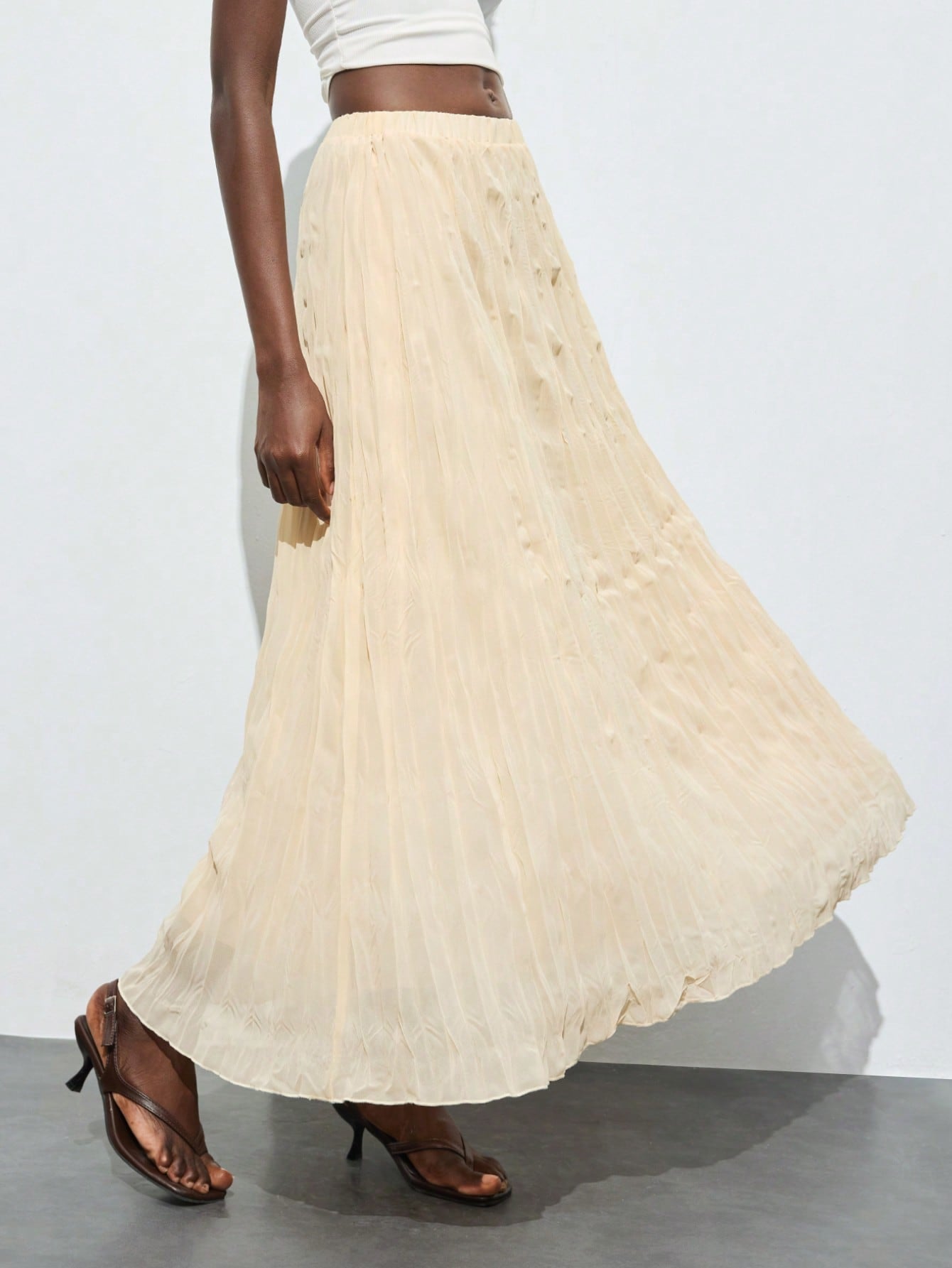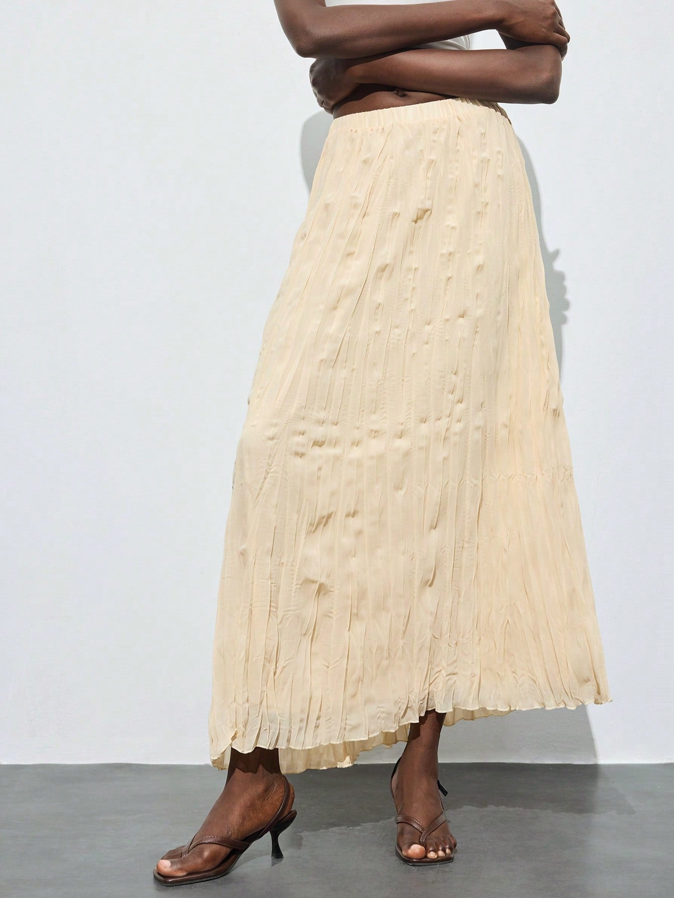 women Maija 2025 Summer New Asymmetrical Ruffle Pleats Waist Elastic Drawstring Flowy Skirt