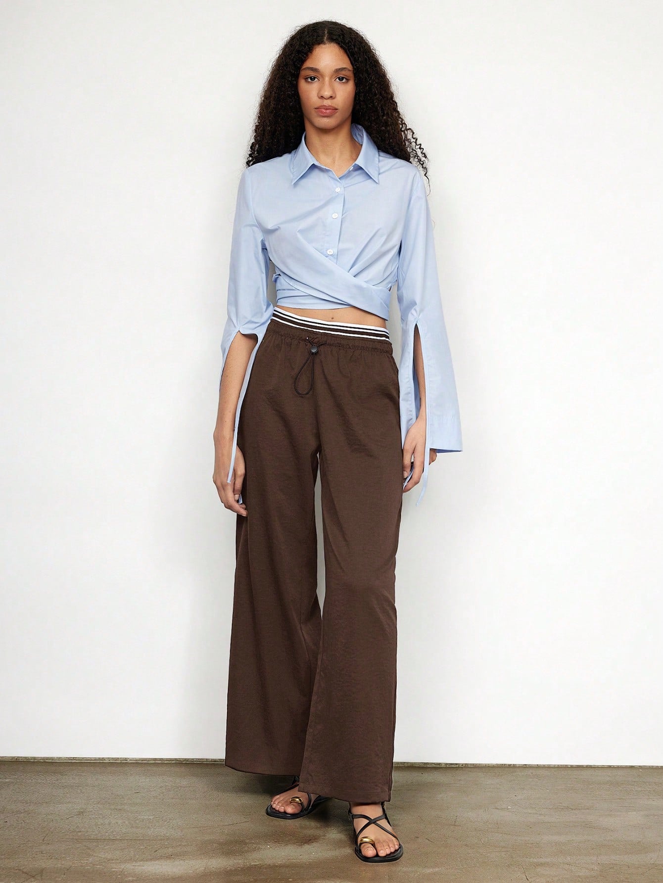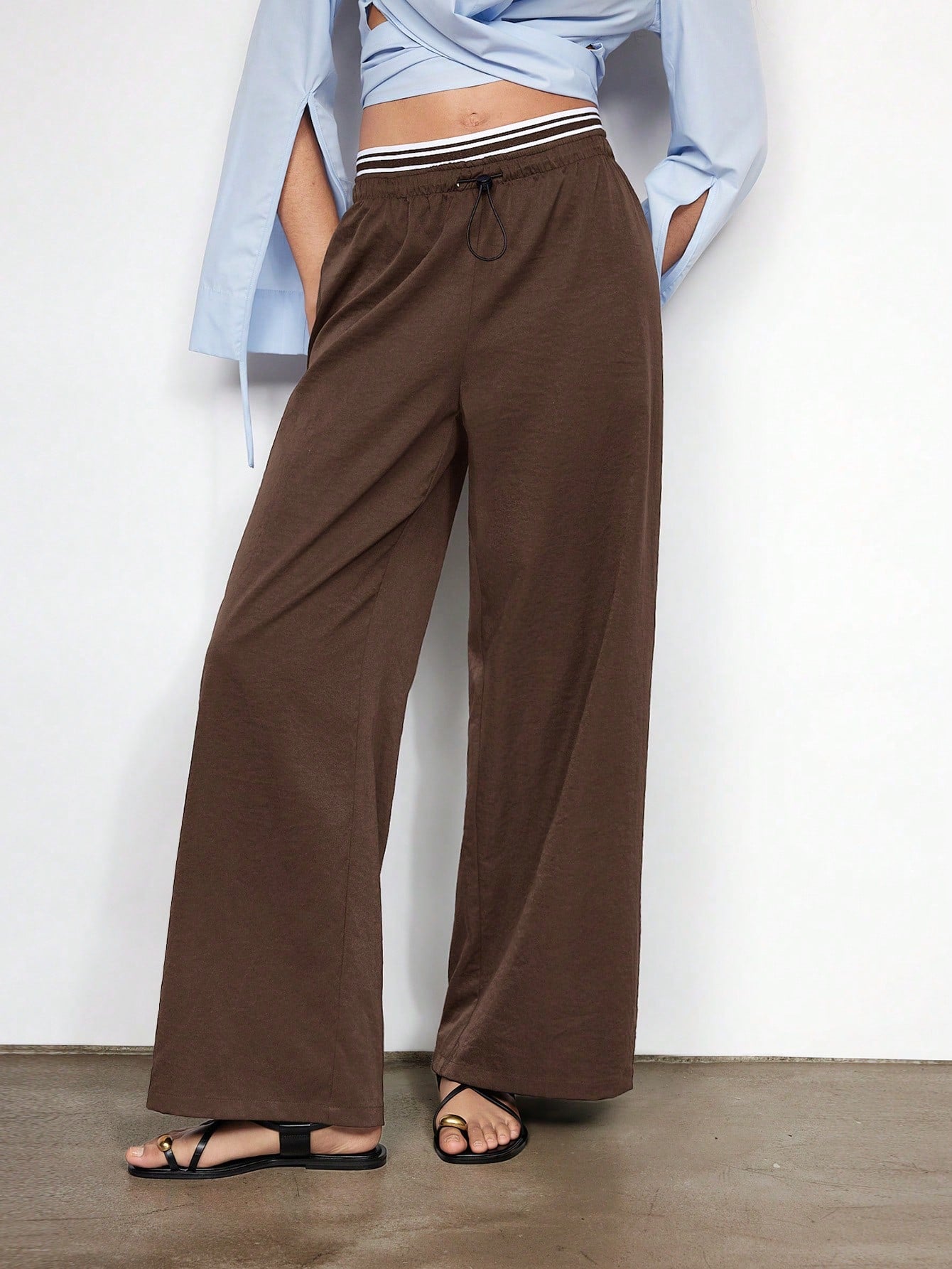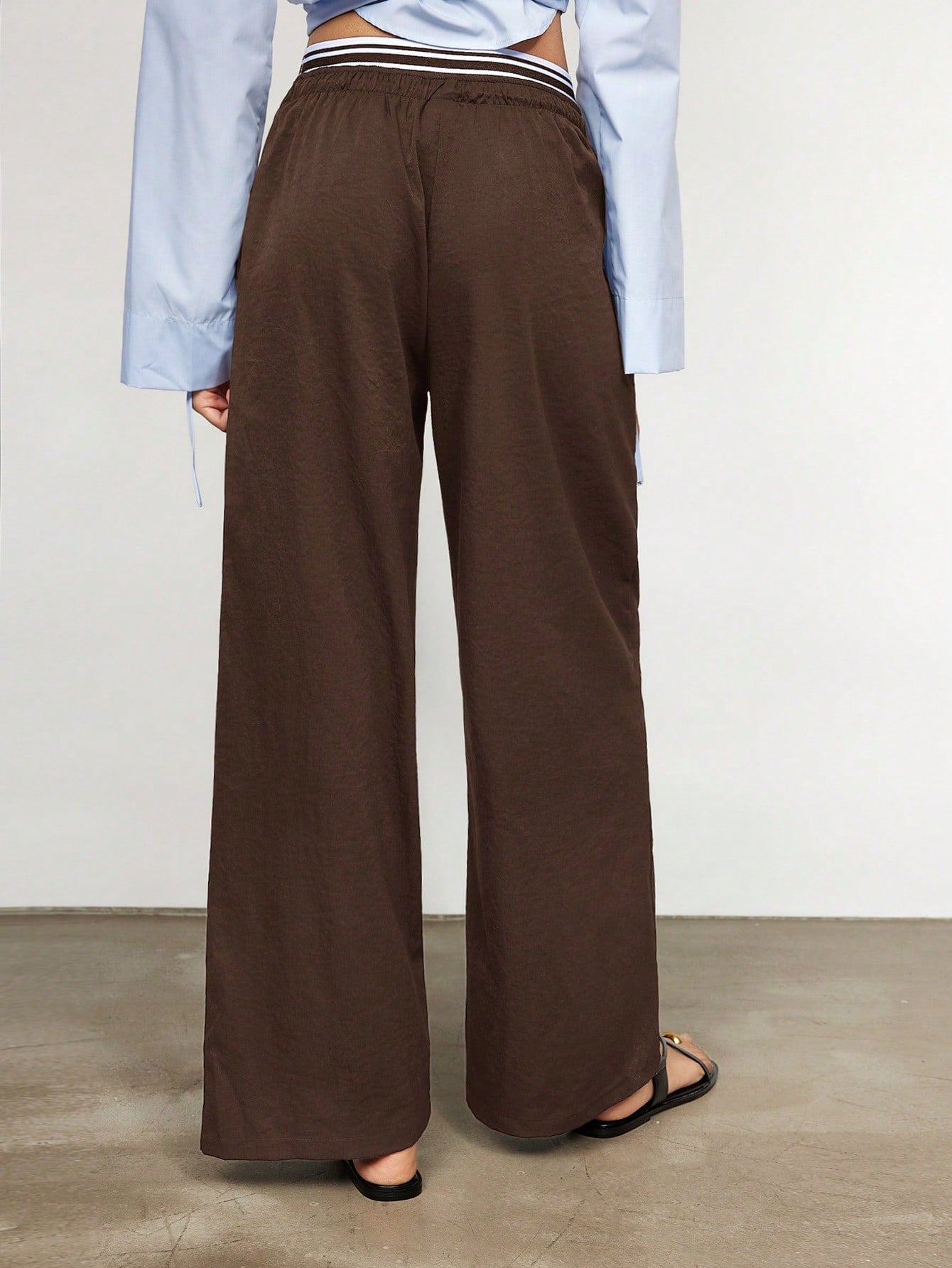 Maija Deep Blue Double-Waistband Loose & Soft Casual Pants For Women, Fashionable Design For Daily Wear,