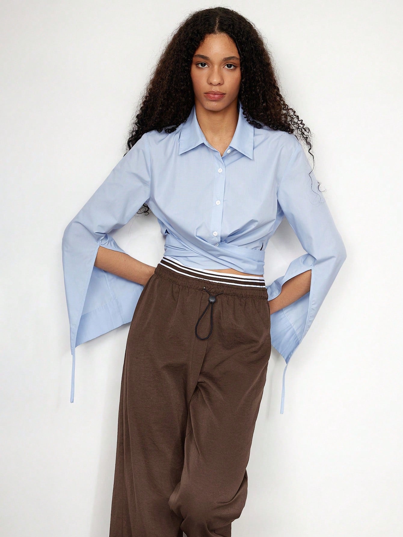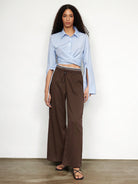 بنطلون مايا أزرق داكن فضفاض وناعم بحزام خصر مزدوج للنساء، تصميم عصري للارتداء اليومي.