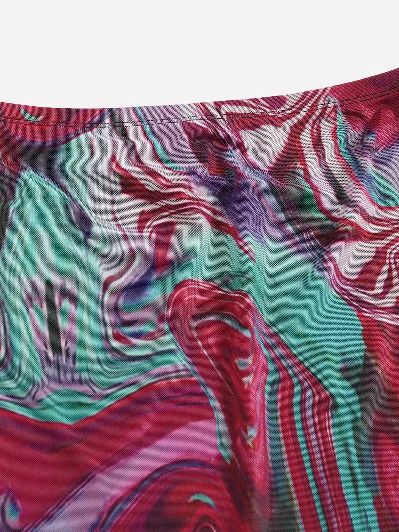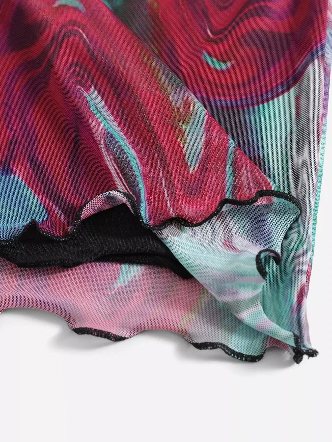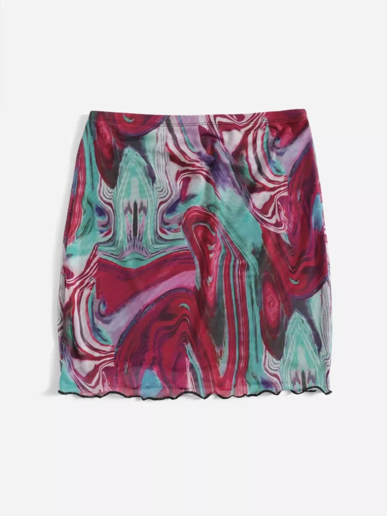 تنورة قصيرة شبكية قصيرة بطبعة رخامية بحواف من الخس