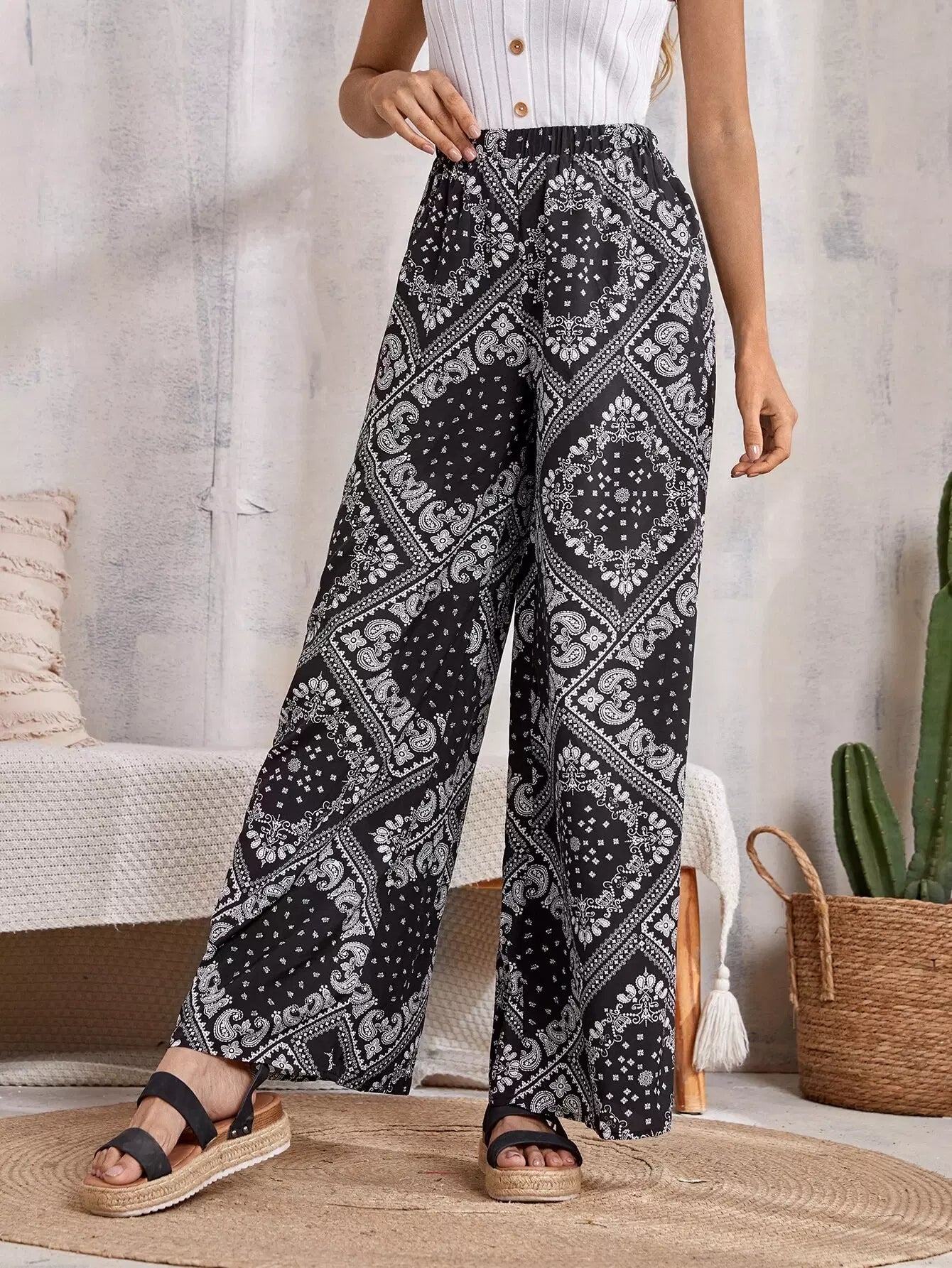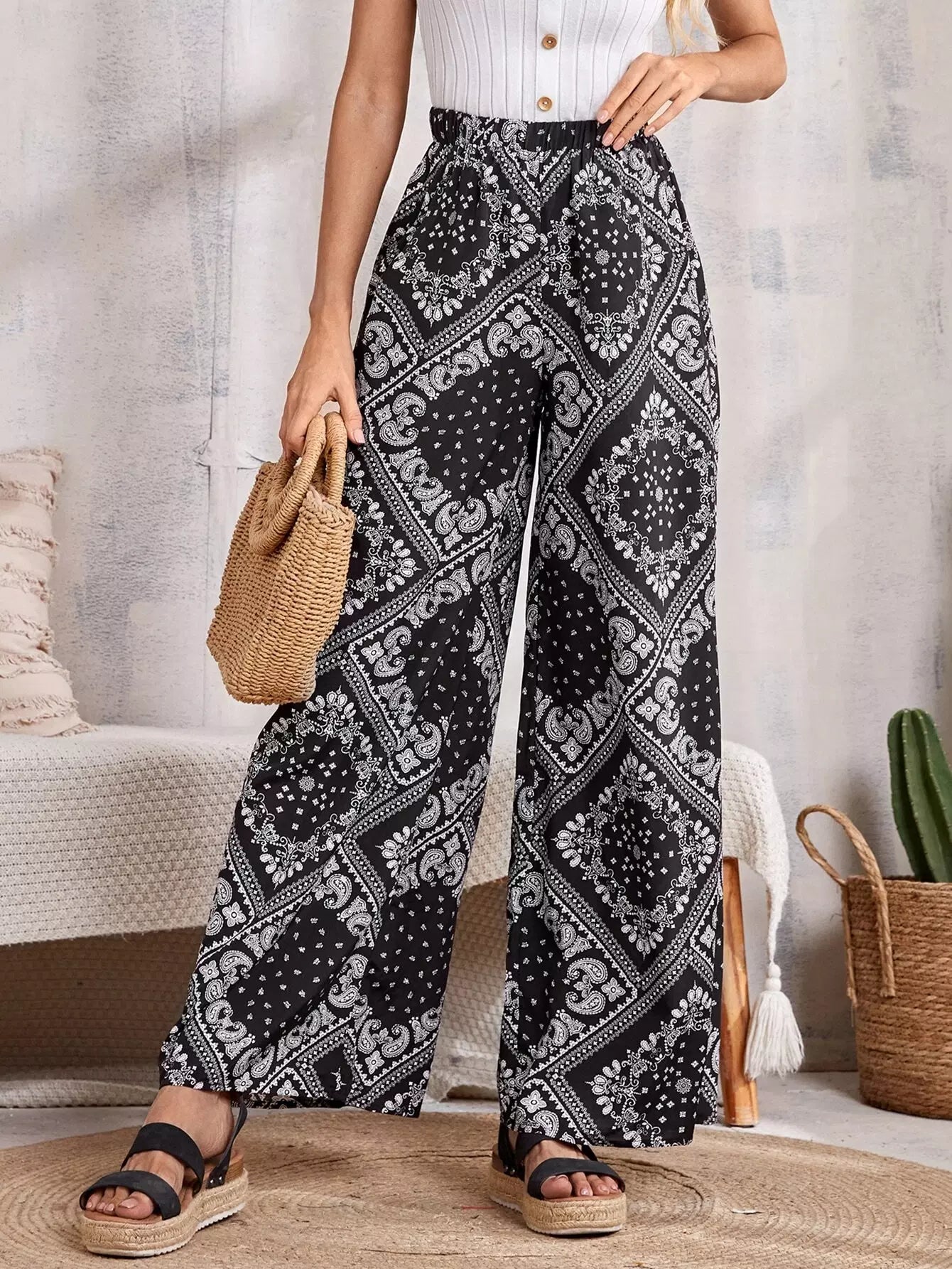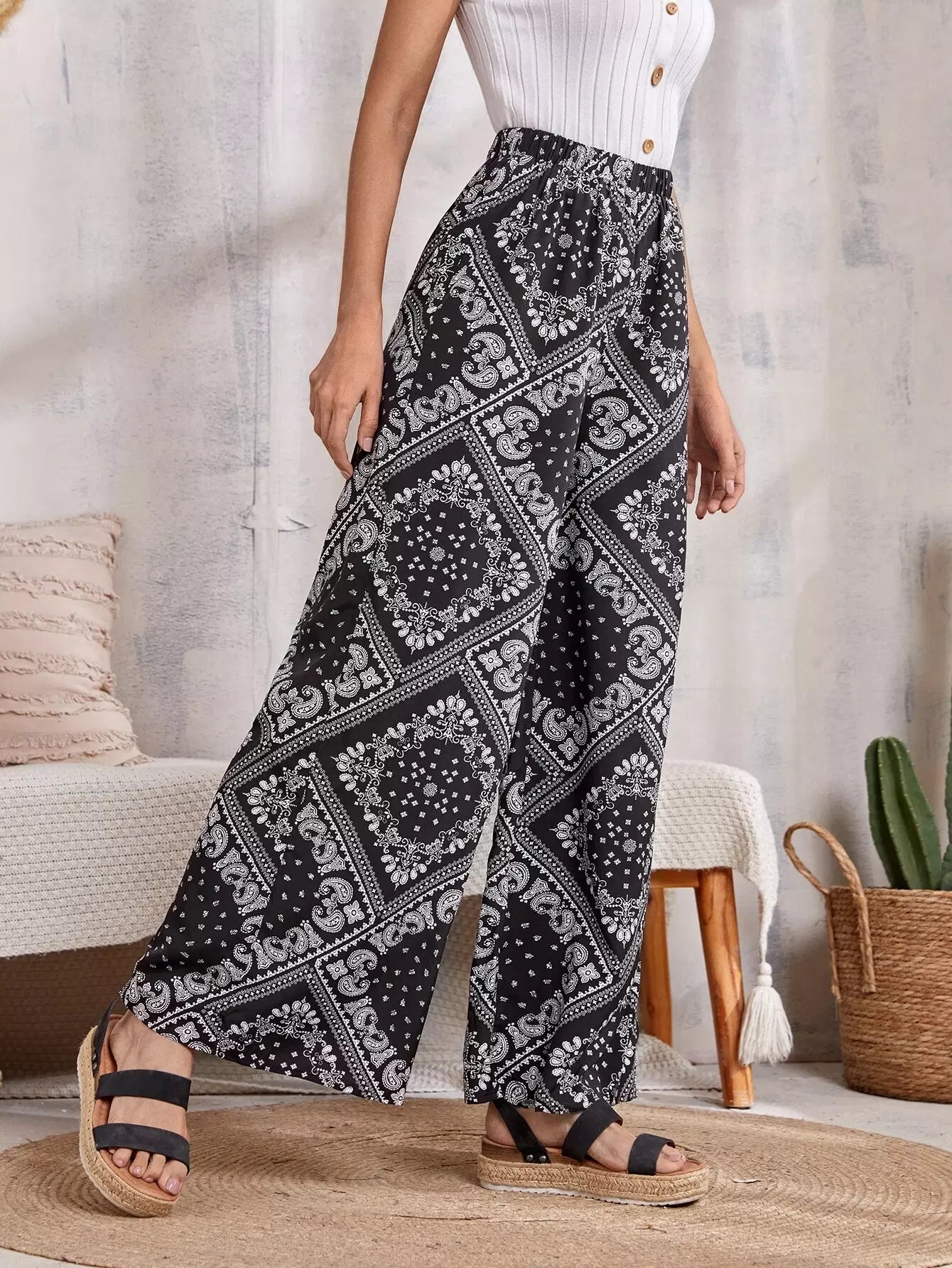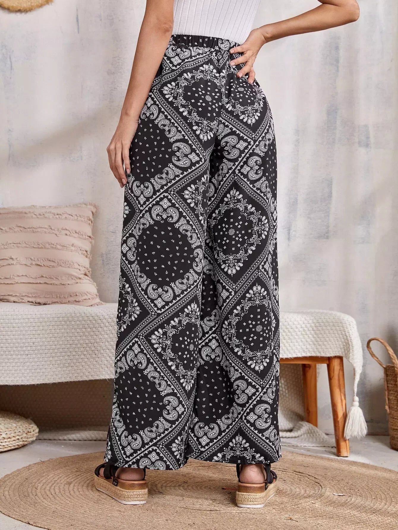 بنطلون واسع الساقين بطبعة وشاح بيزلي