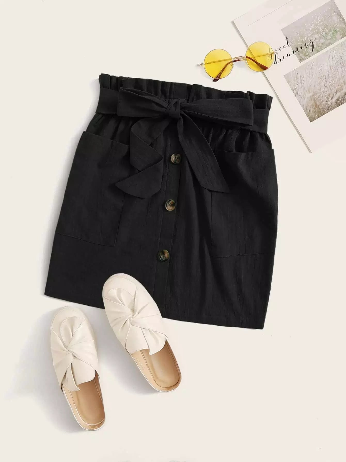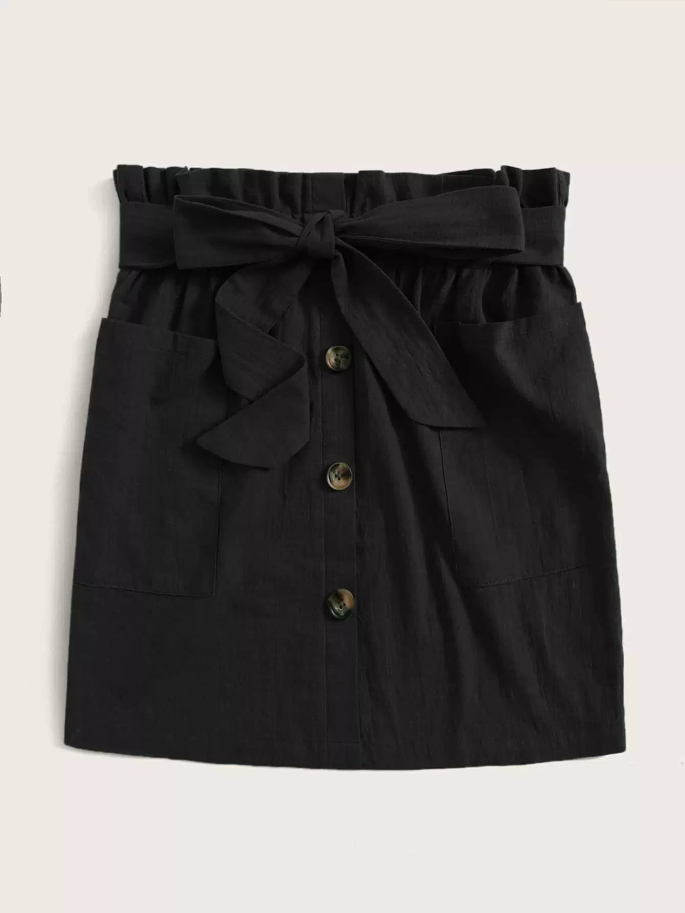 النساء - تنورة بحزام على الخصر وجيب ورقي