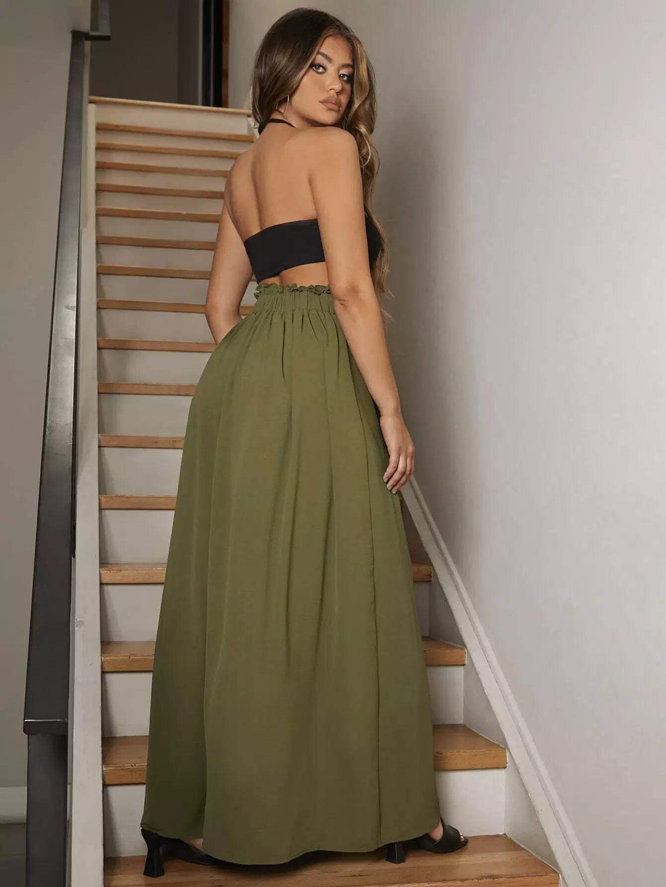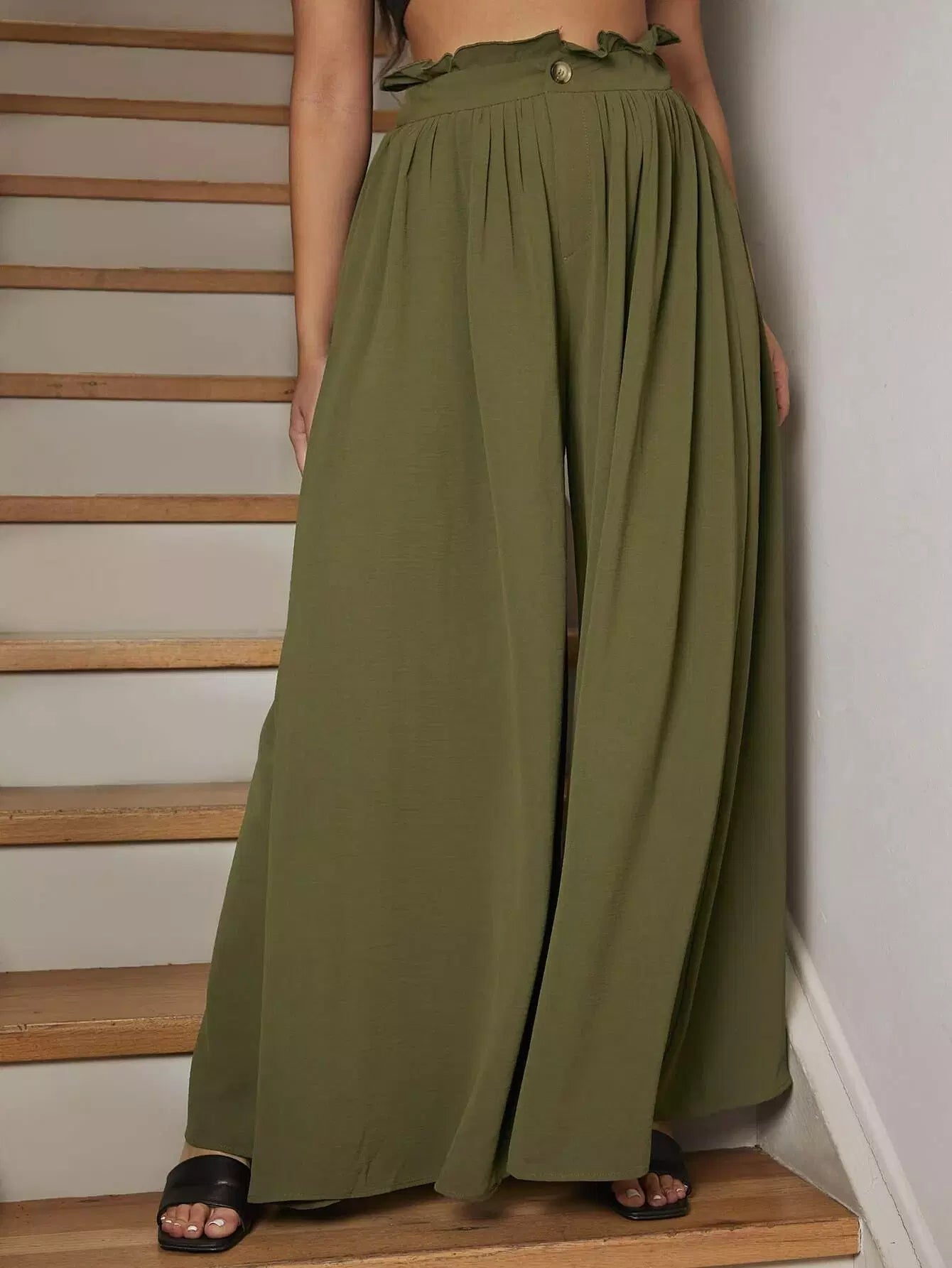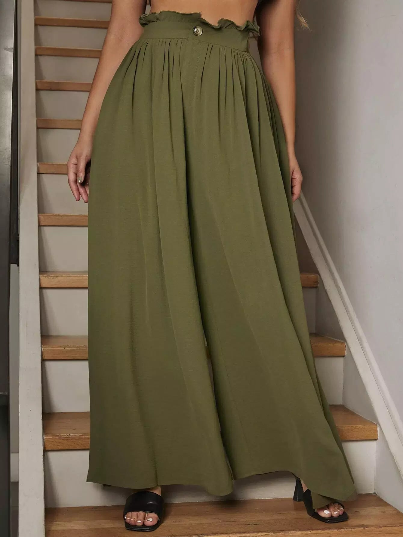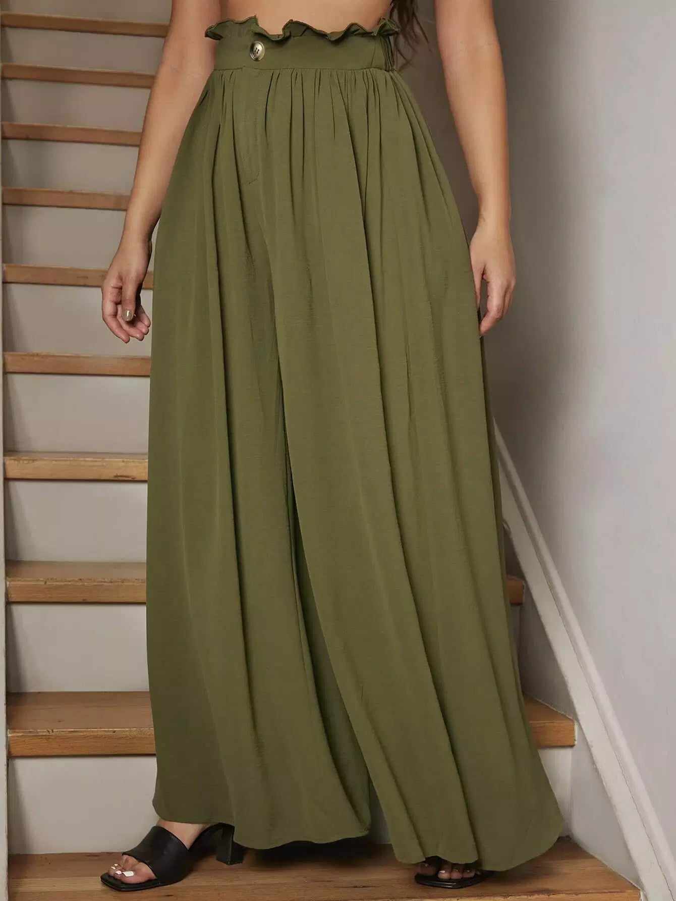 بنطلون واسع الساقين بخصر كيس ورقي