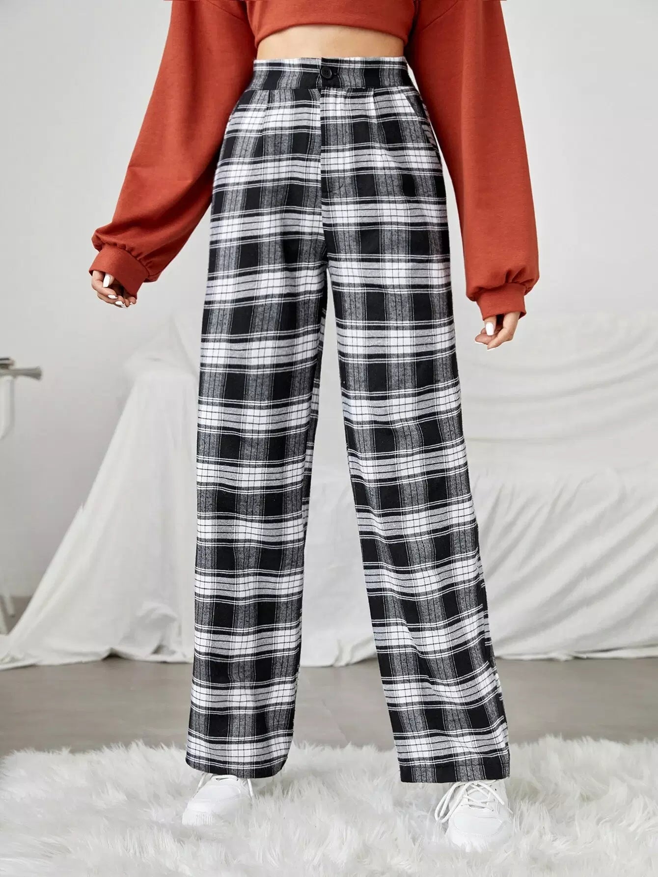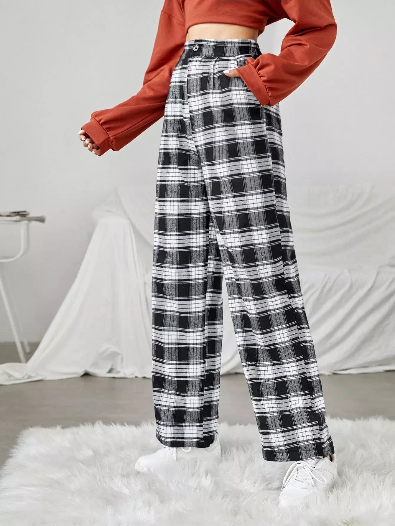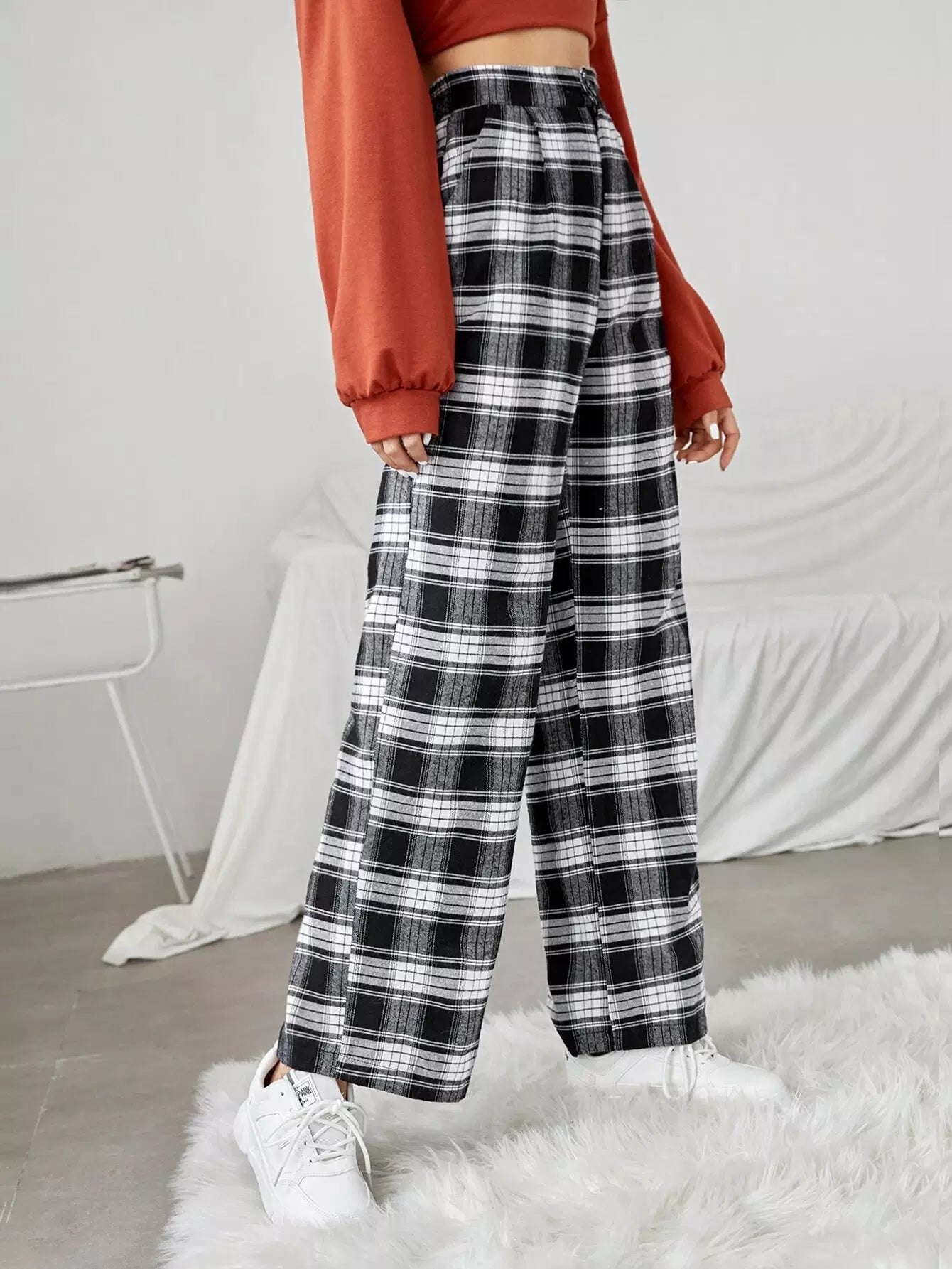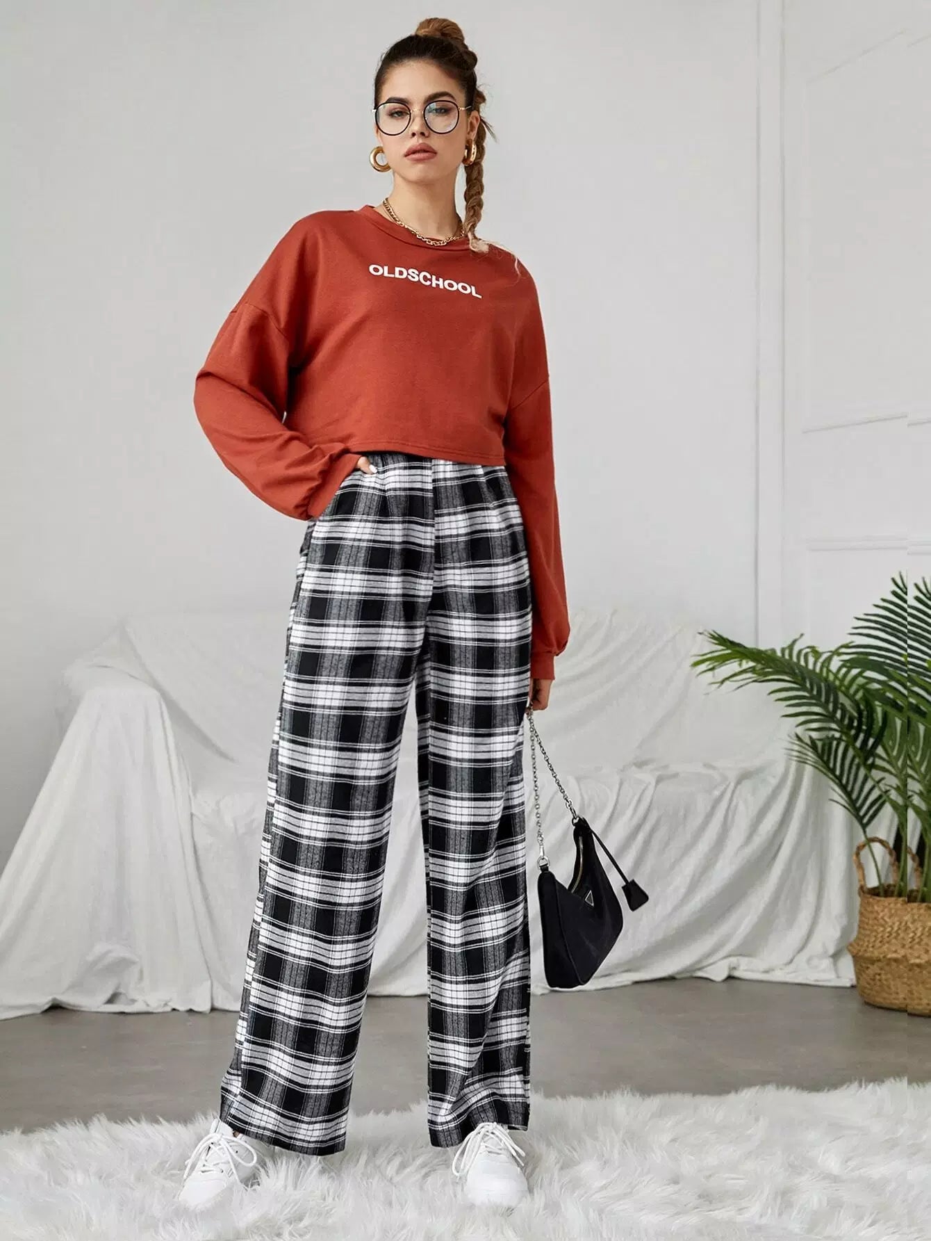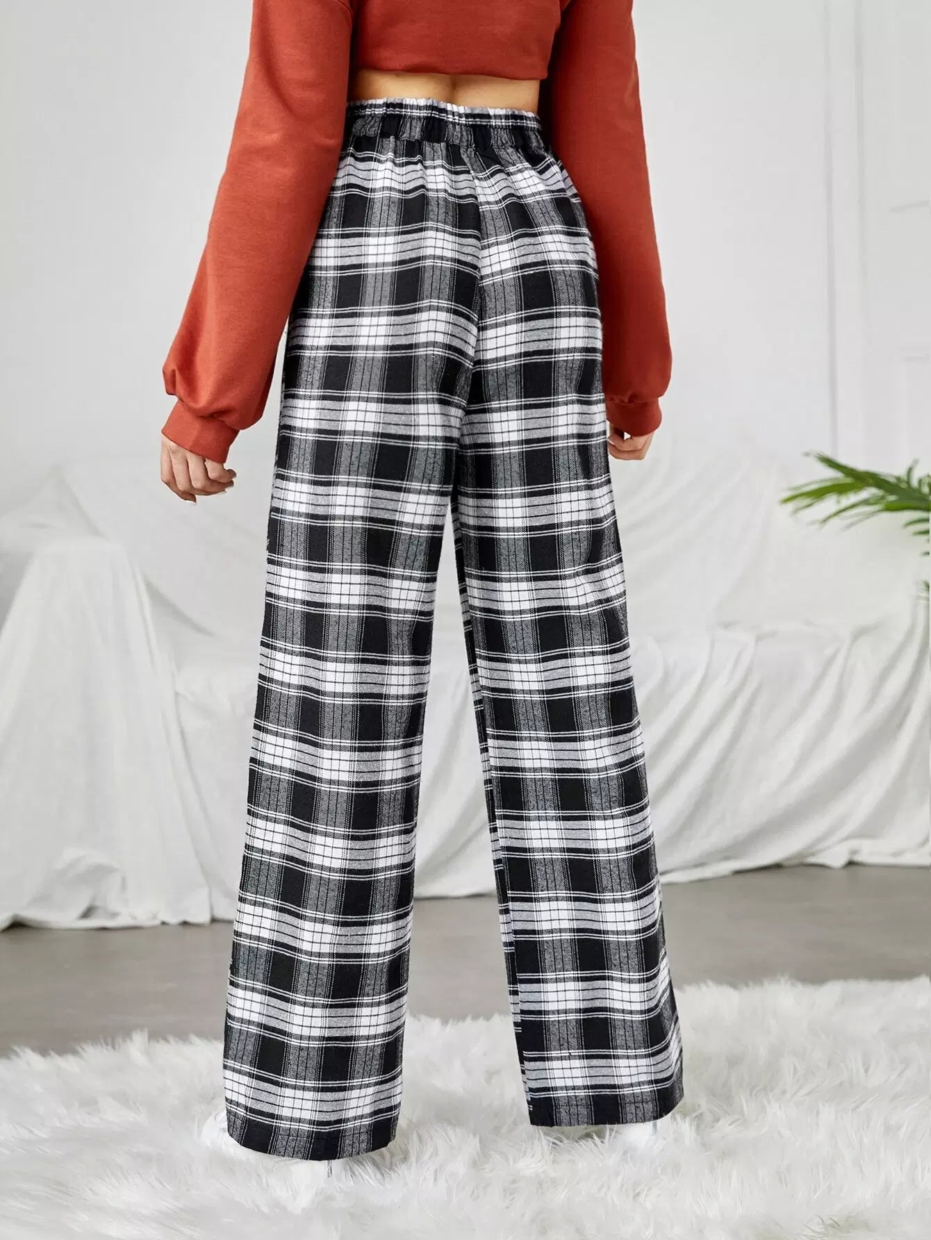 بنطلون واسع الساقين منقوش