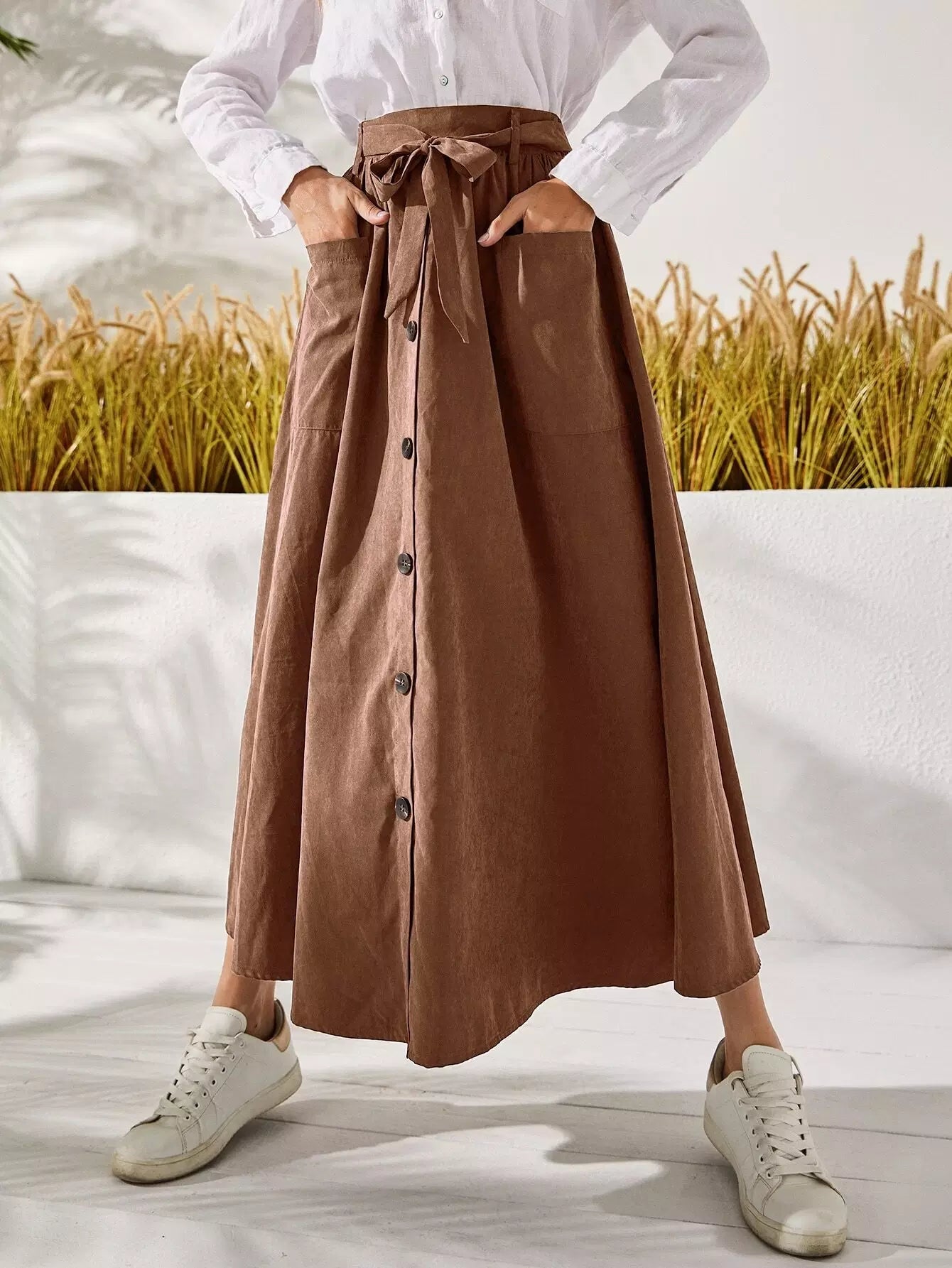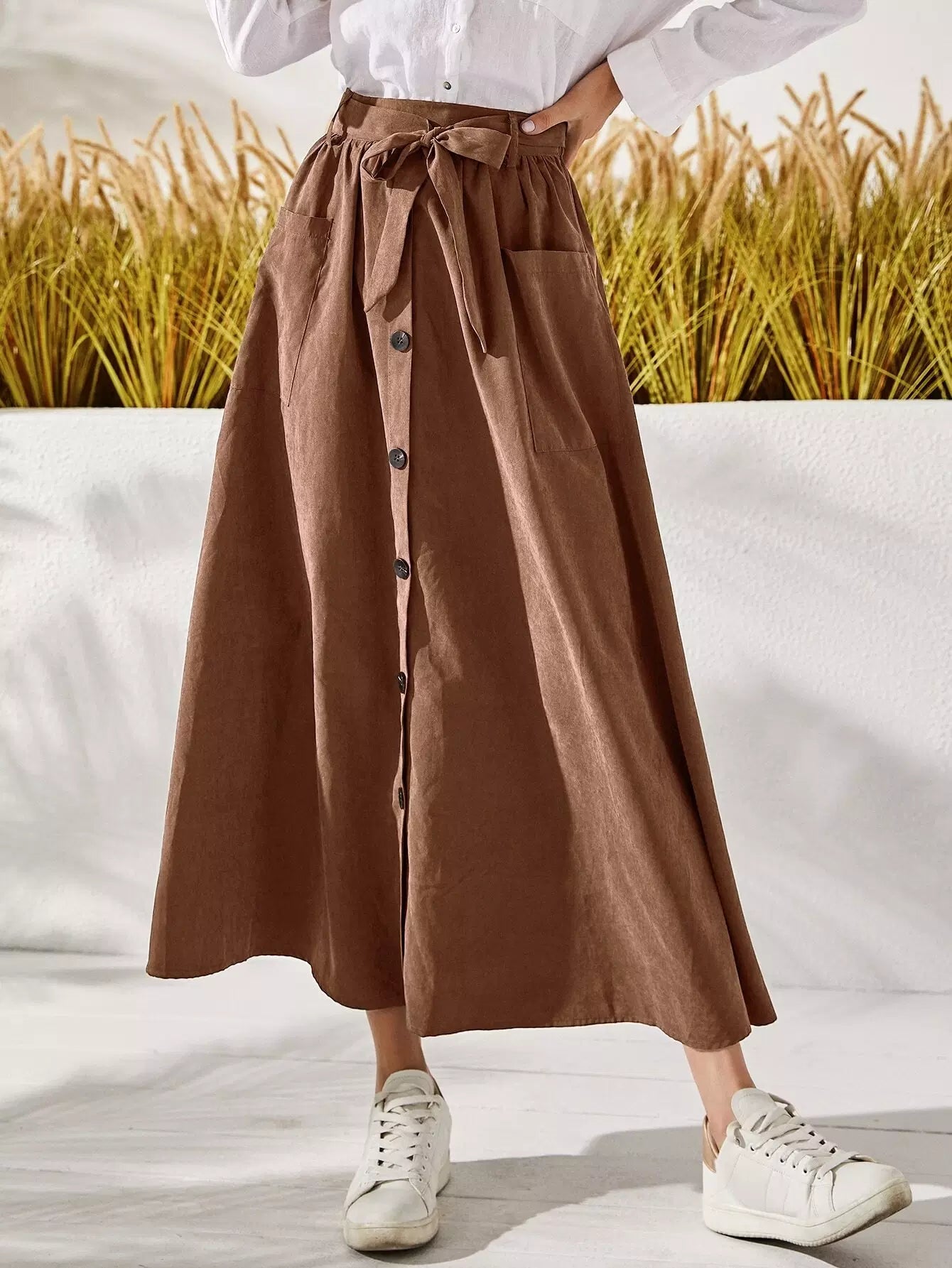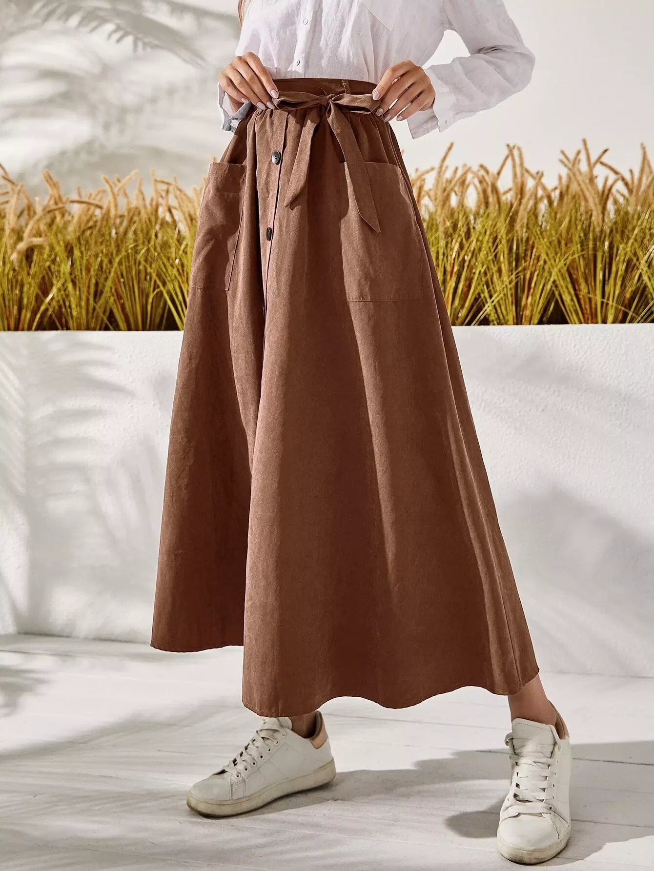تنورة بجيب أمامي على شكل حرف A بدون حزام