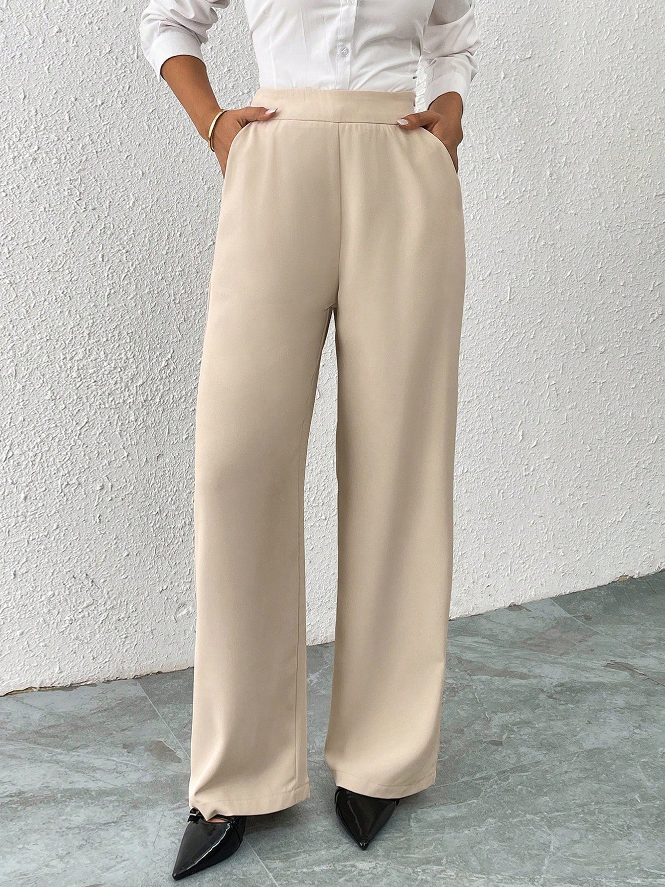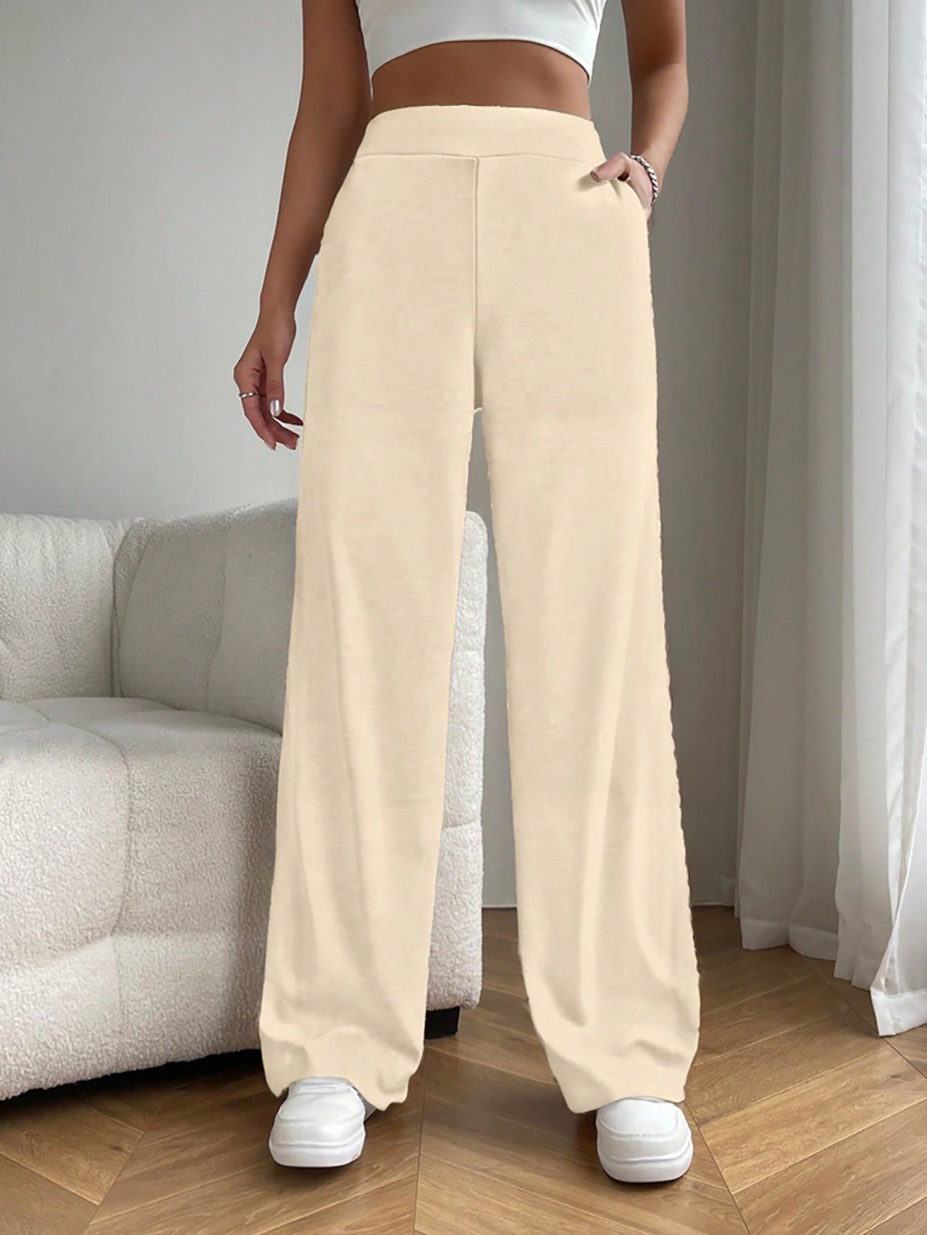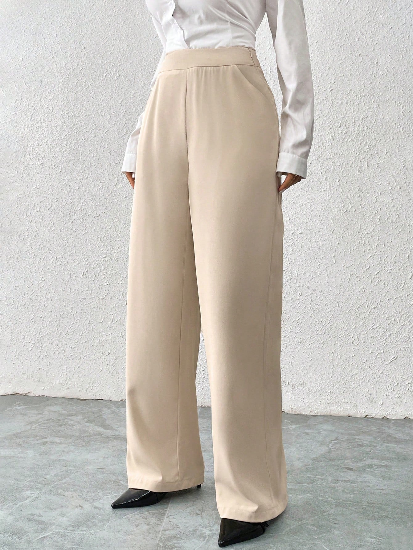 Privï½ New Arrival Apricot High Waist Slimming Slant Pocket Wide Leg Casual Pants, All-Match For All