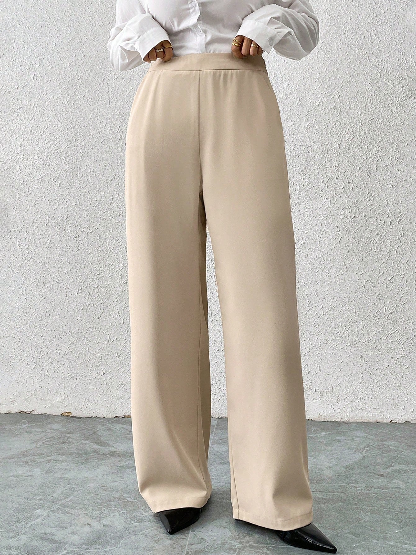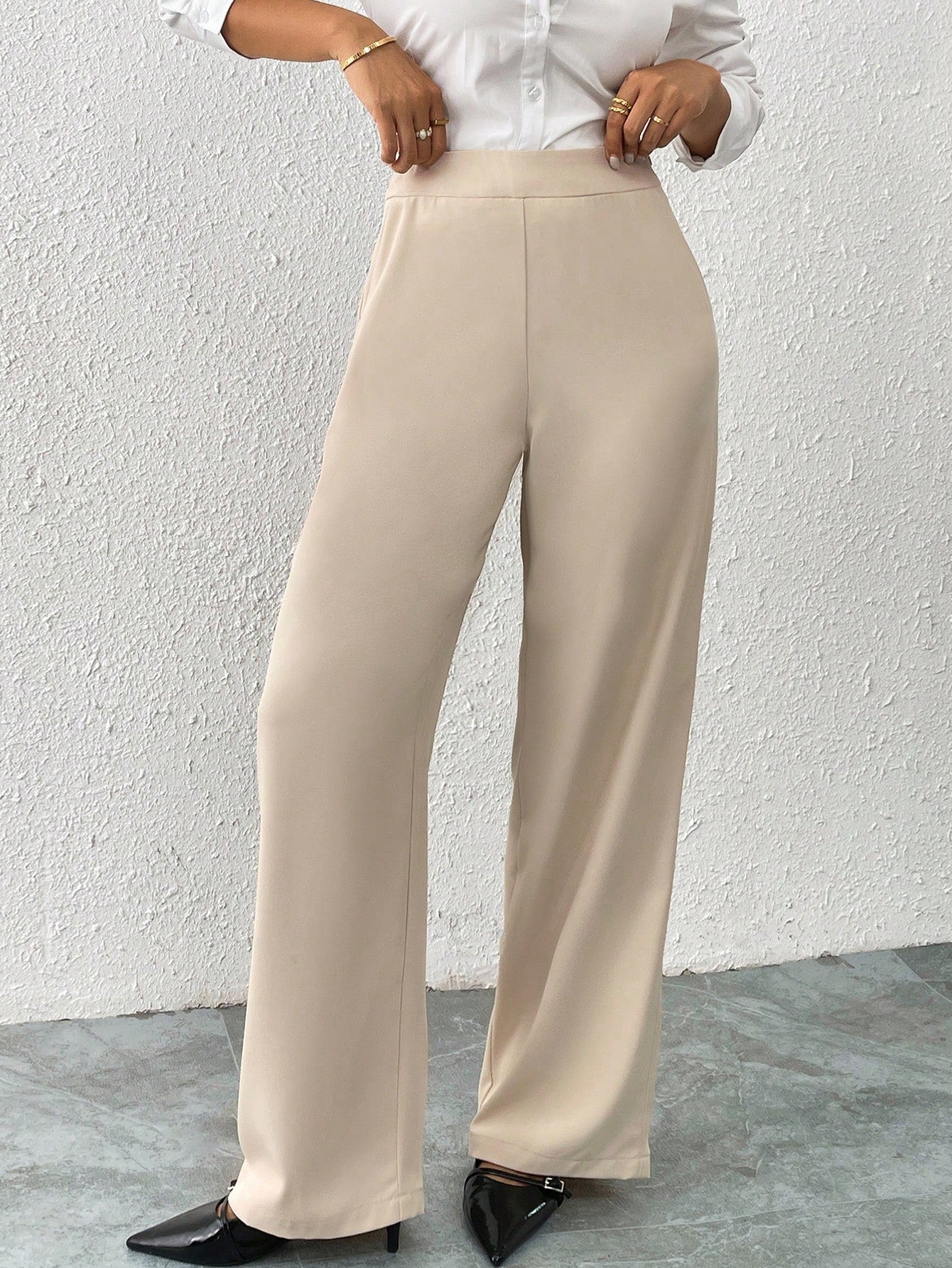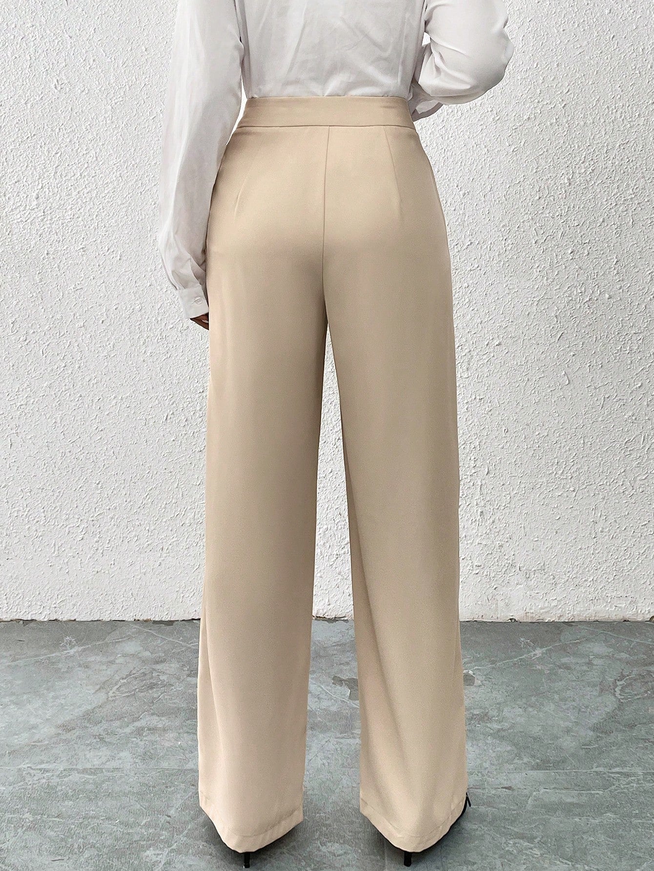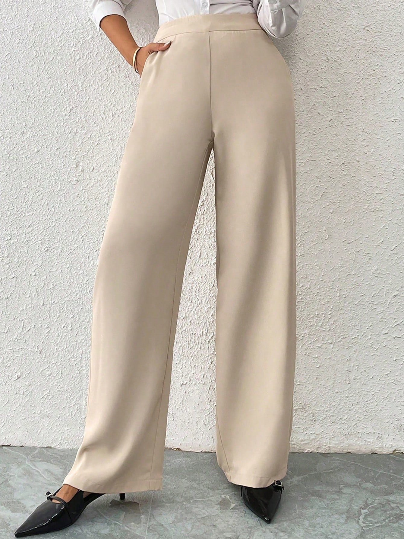 Privï½ New Arrival Apricot High Waist Slimming Slant Pocket Wide Leg Casual Pants, All-Match For All