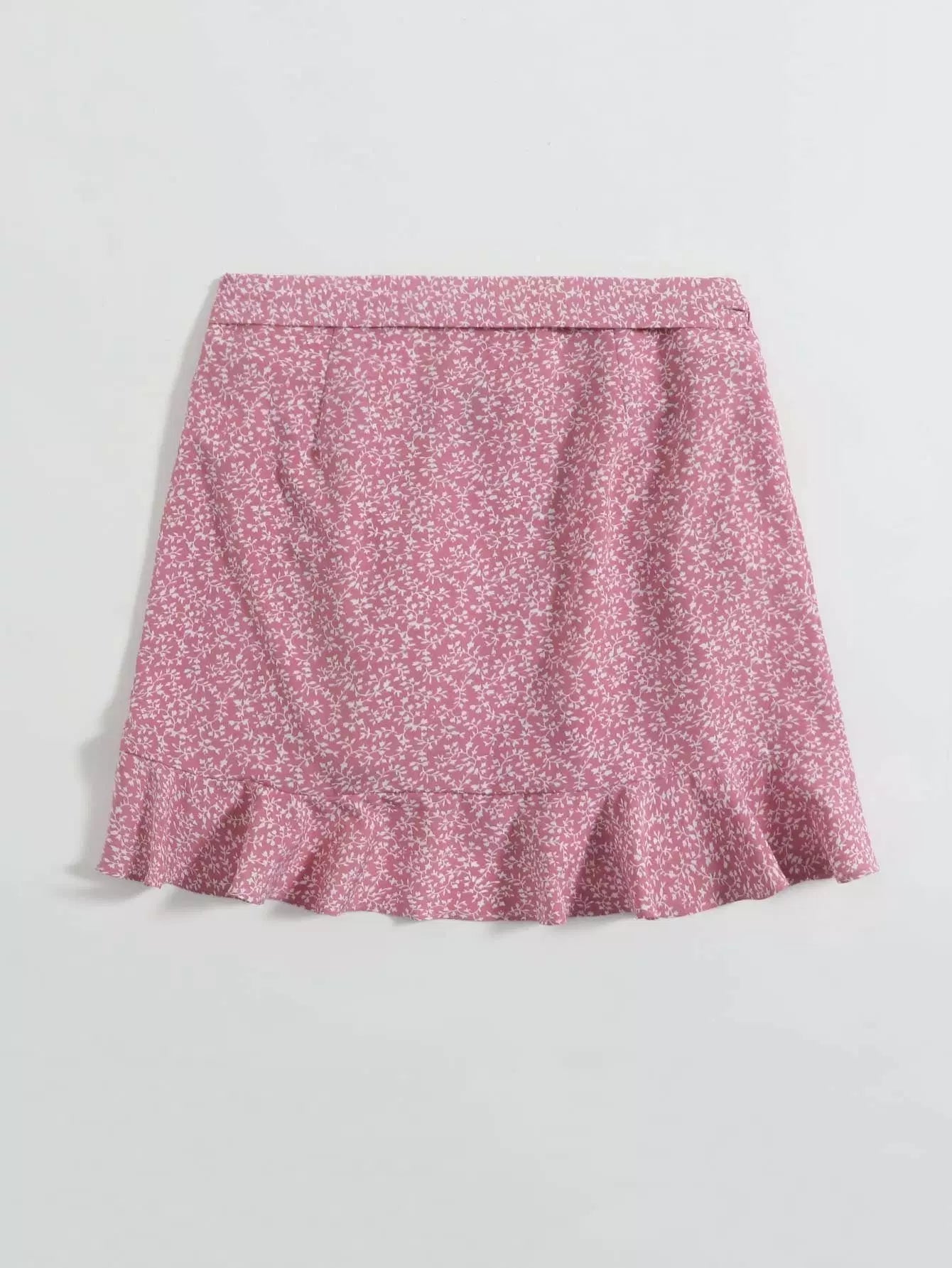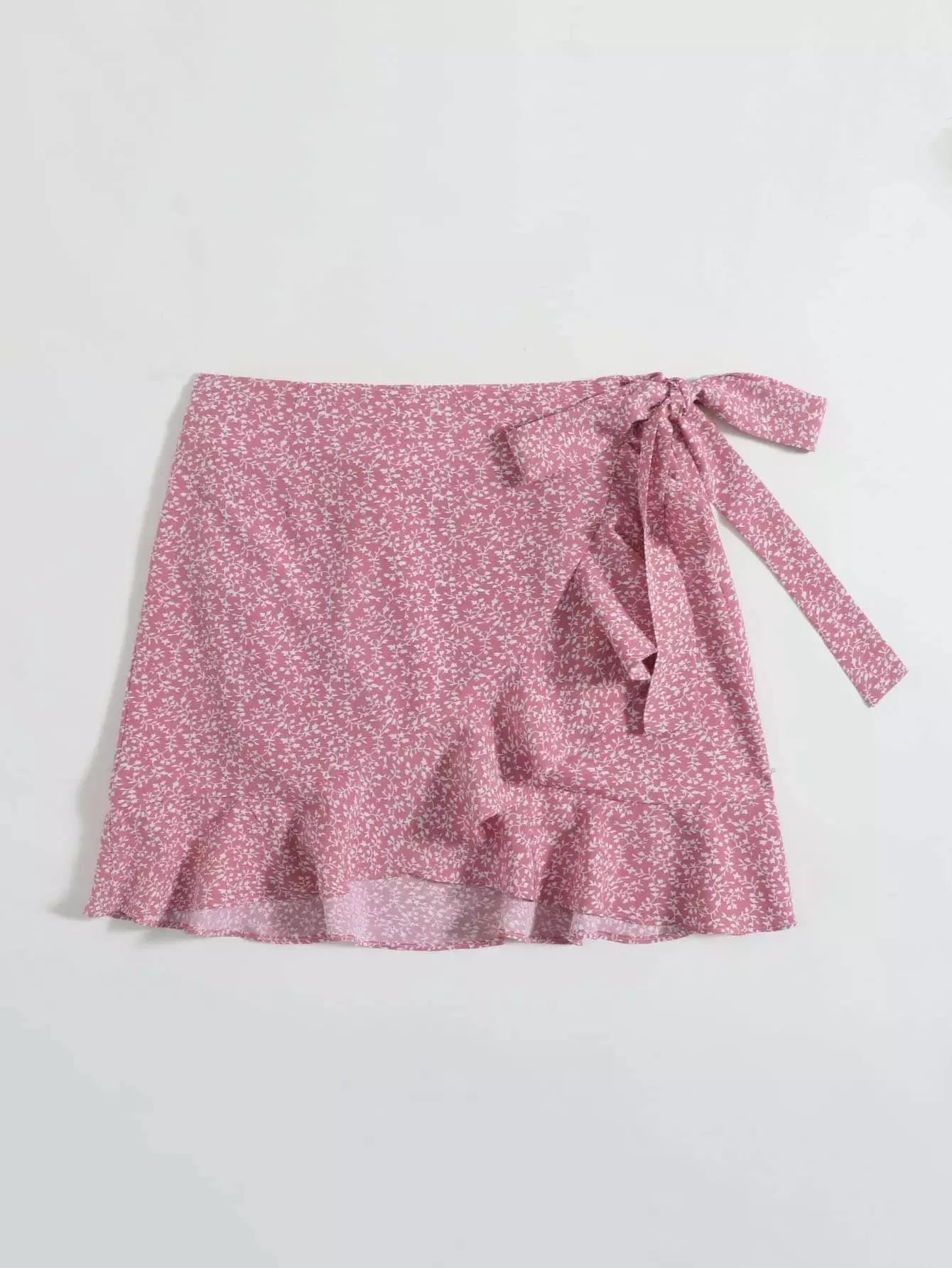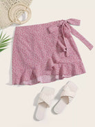 تنورة بطبعة كشكش بحافة ملفوفة على شكل عقدة ملفوفة بالكامل
