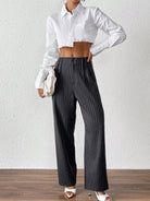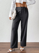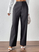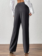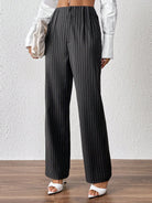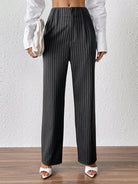 women SHEIN PETITE Women's Striped Straight-Leg Loose Casual/Work Pants