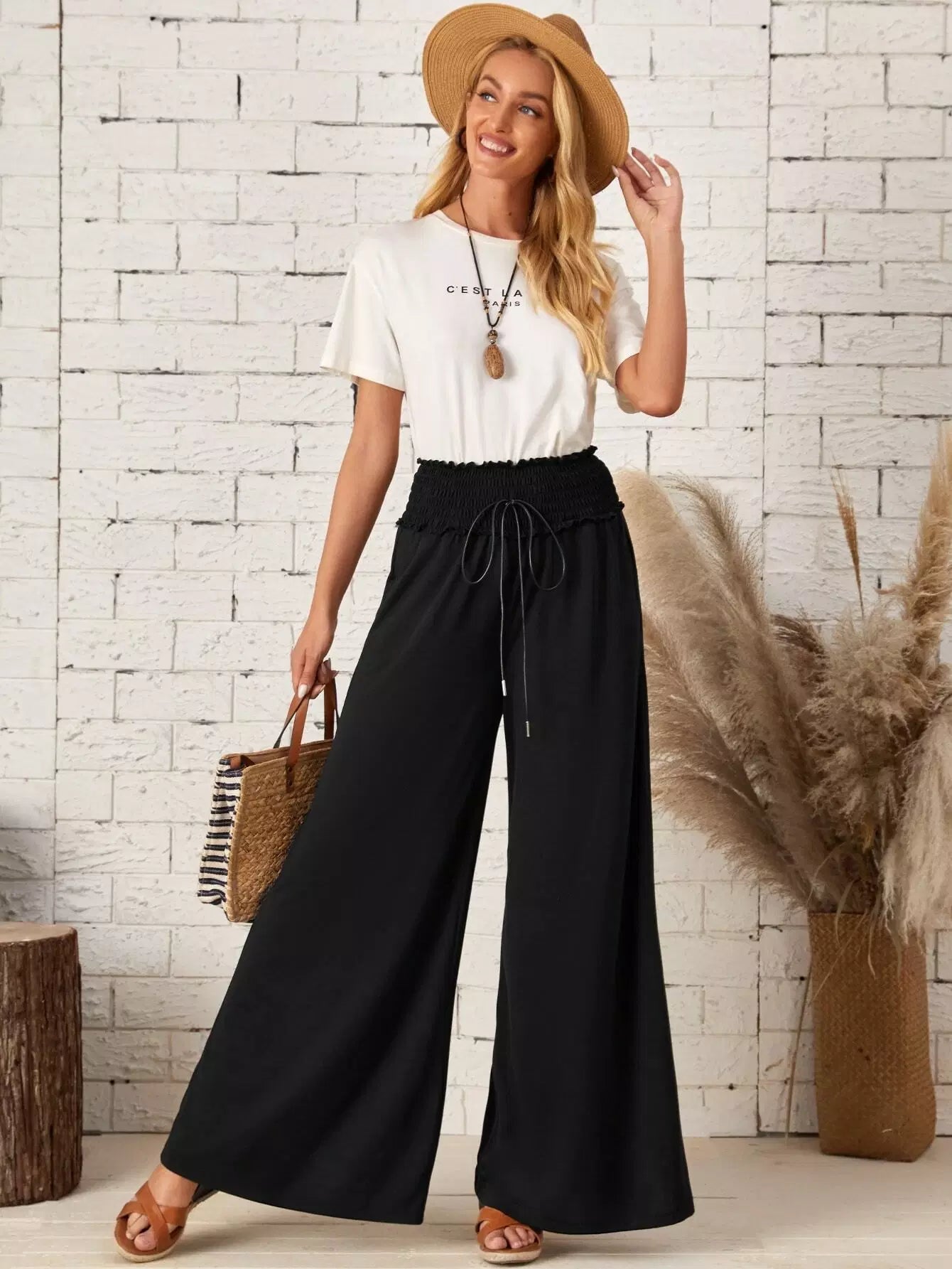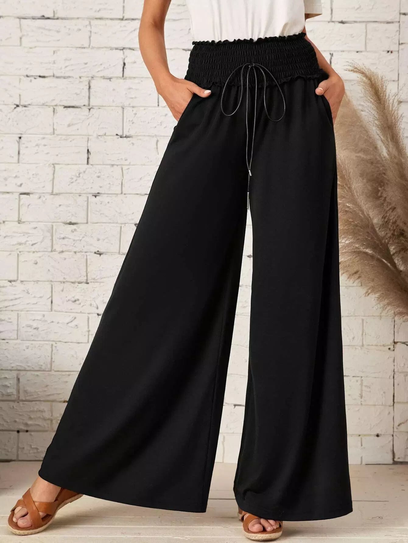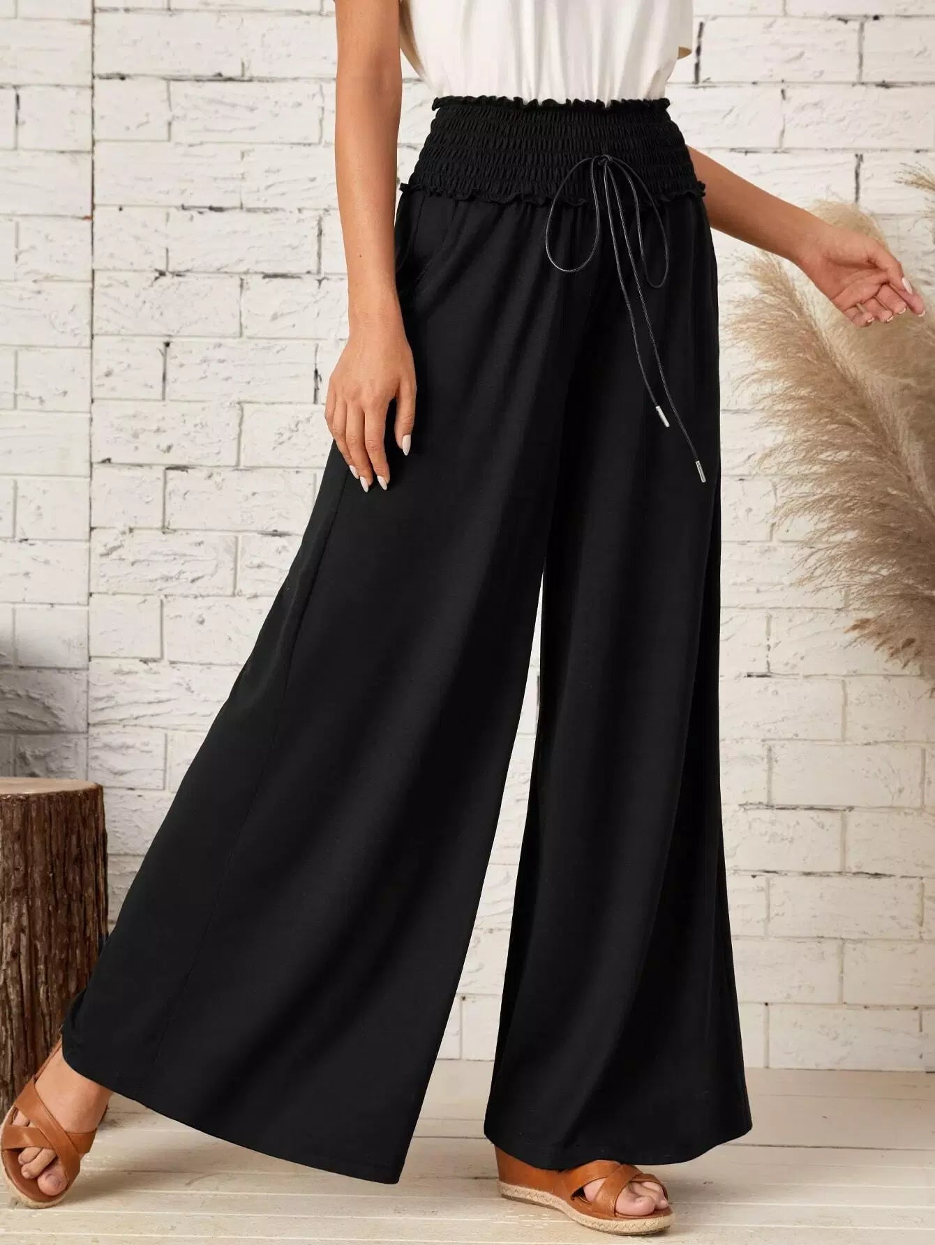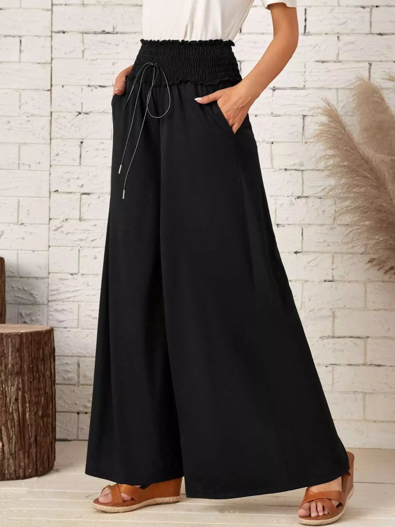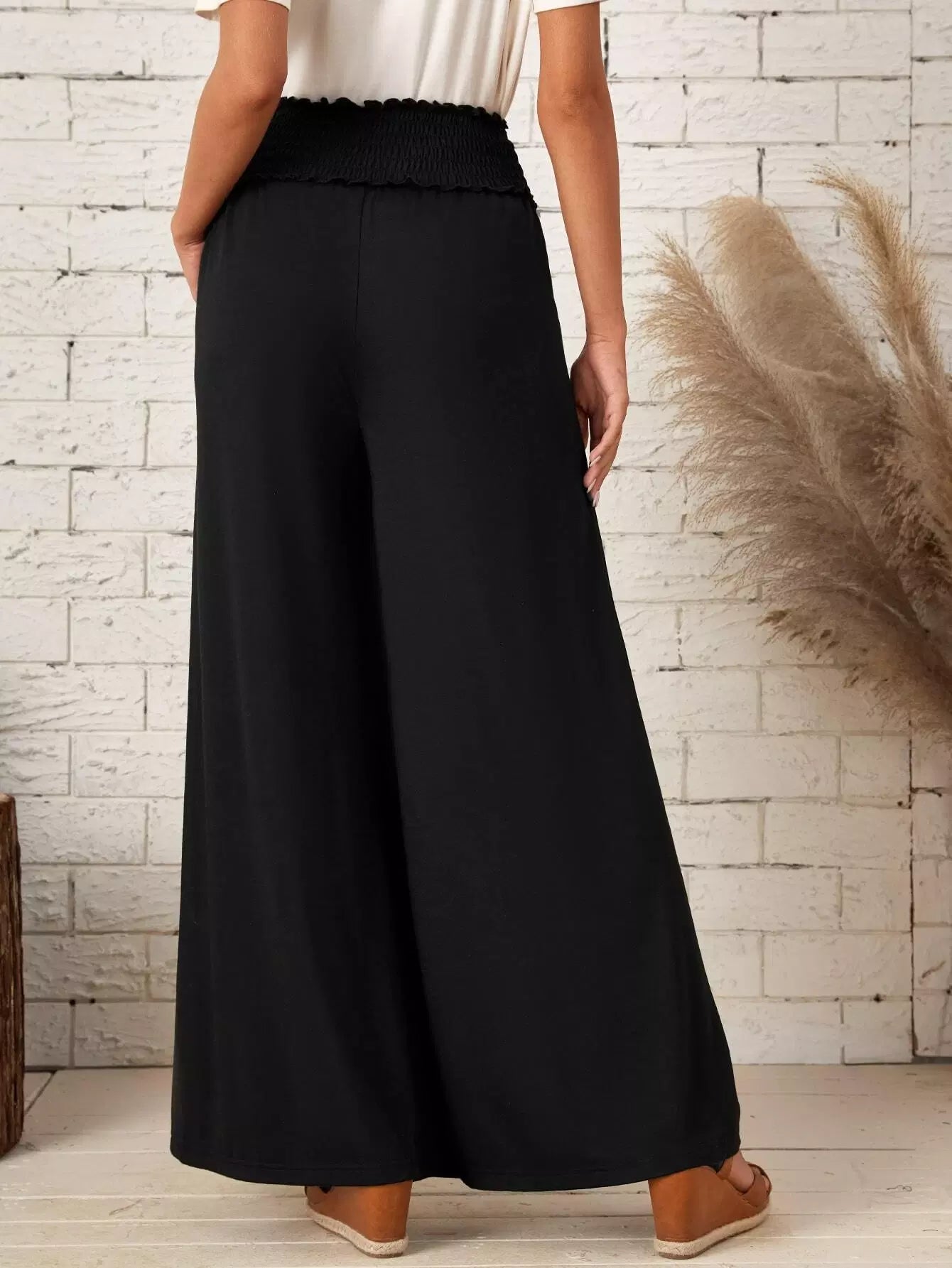بنطلون واسع الساقين بخصر شيرد وخصر عريض