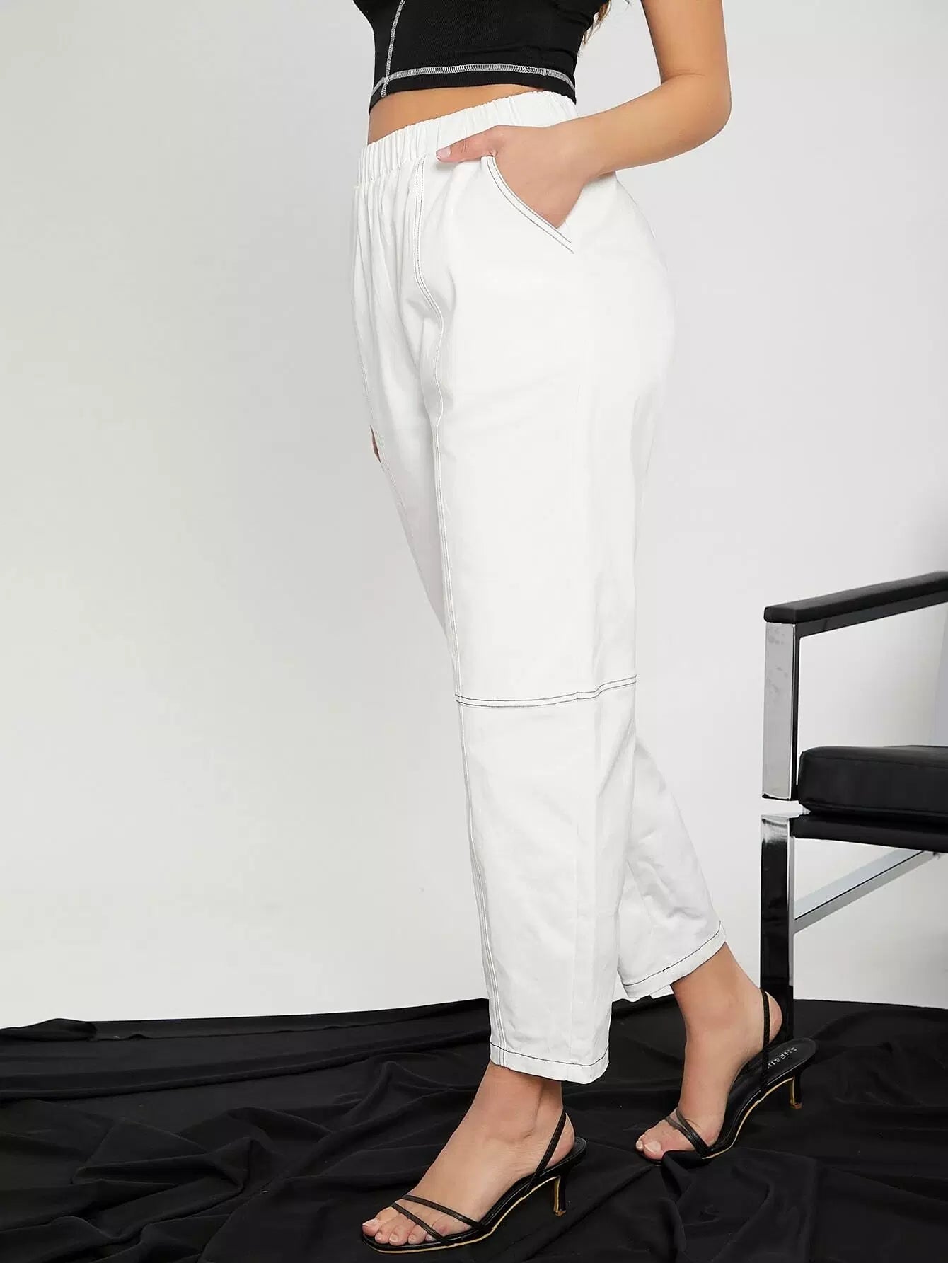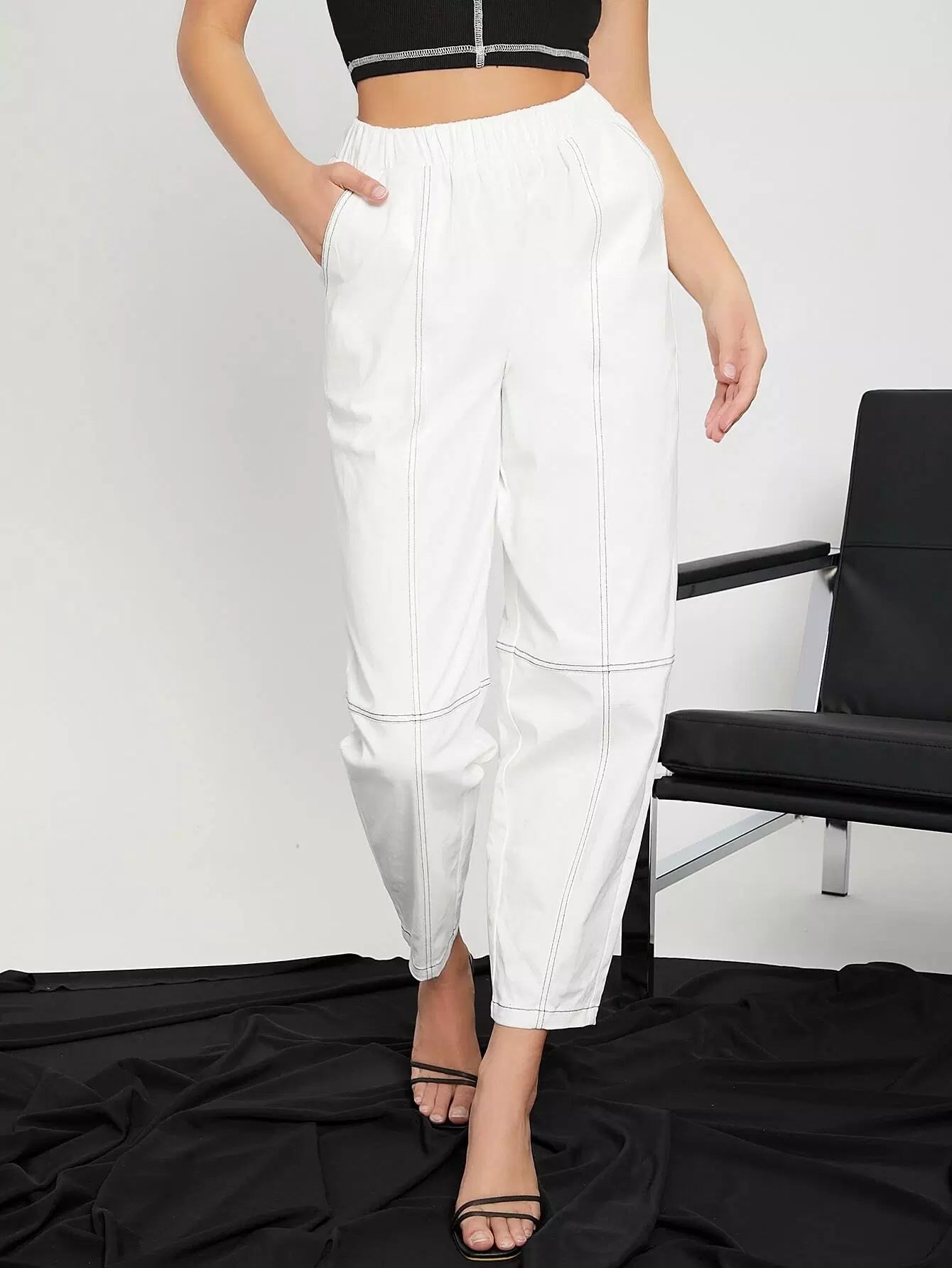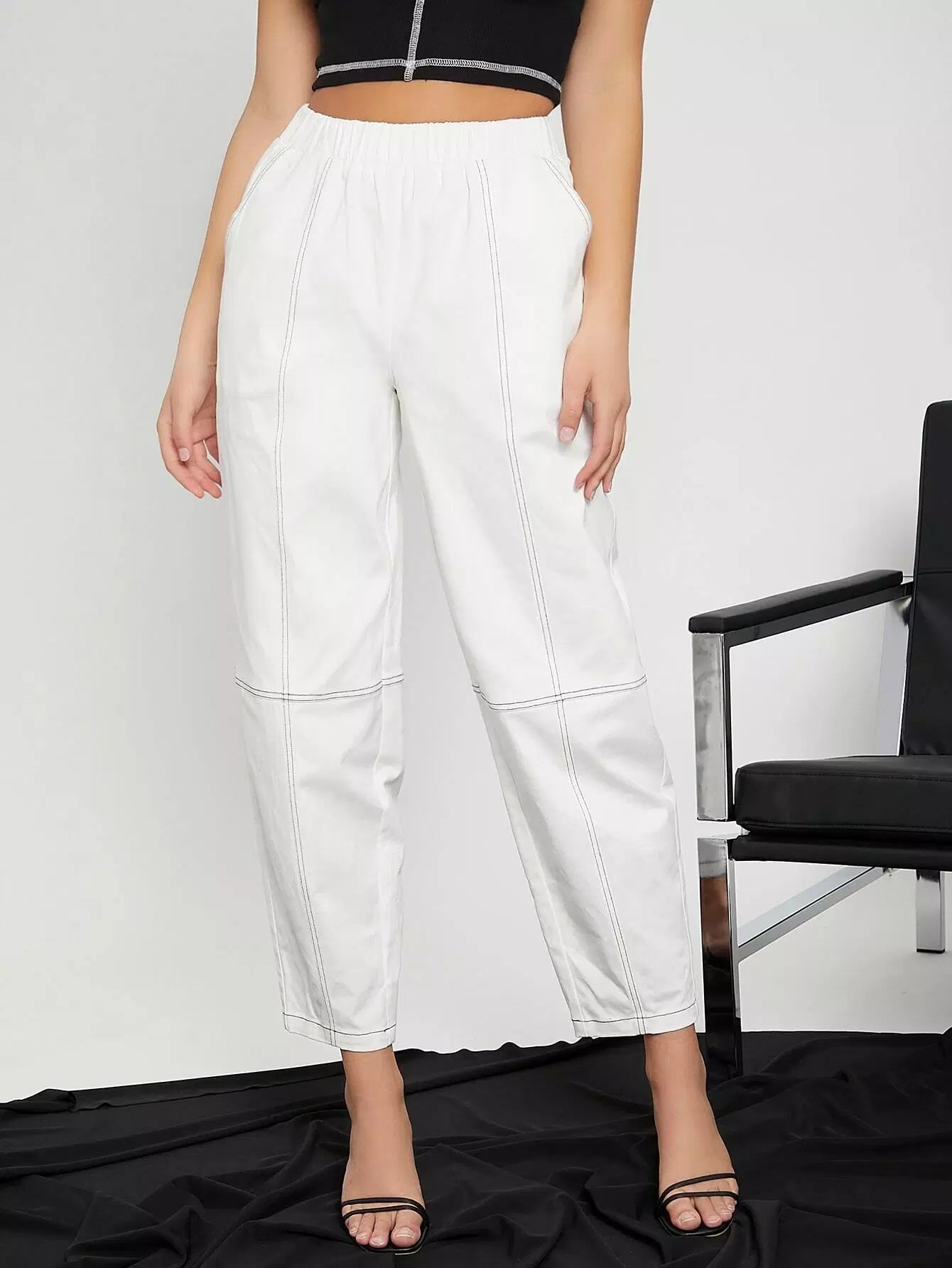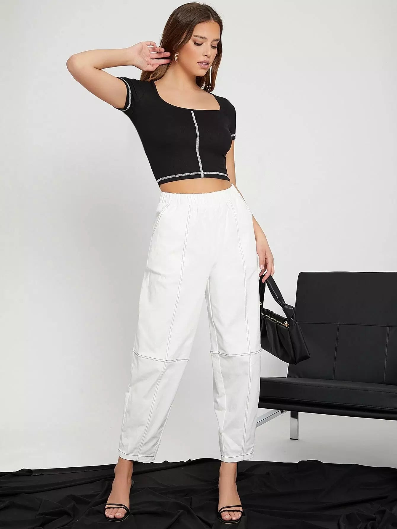 بنطلون بخياطة مائلة بجيب مائل متباين