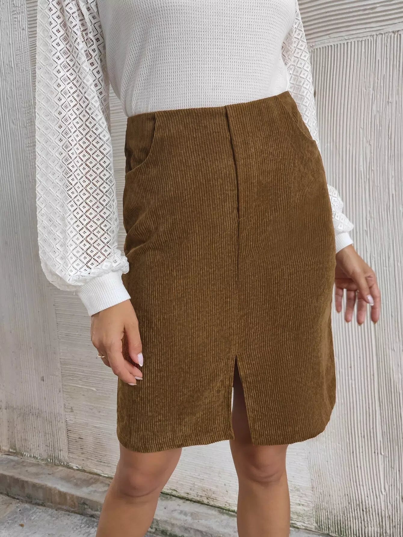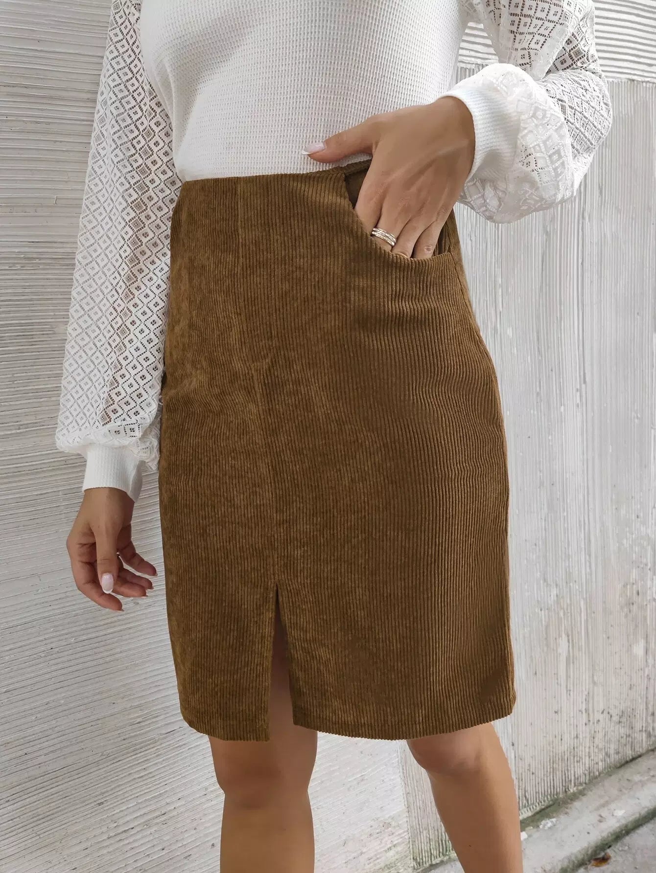 تنورة سروال قصير قصير مائل بجيب مائل مشقوق الحاشية