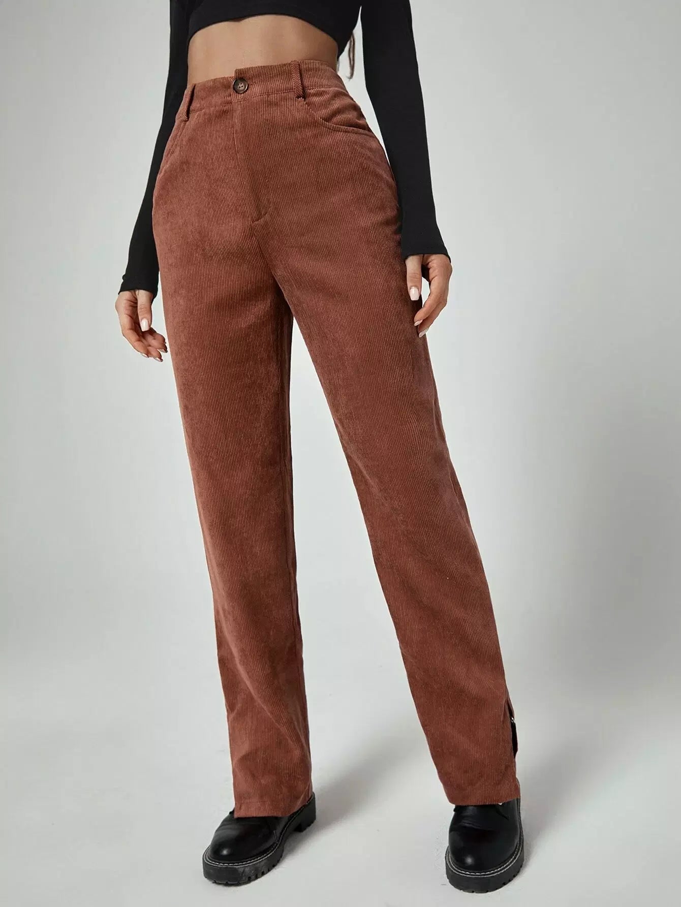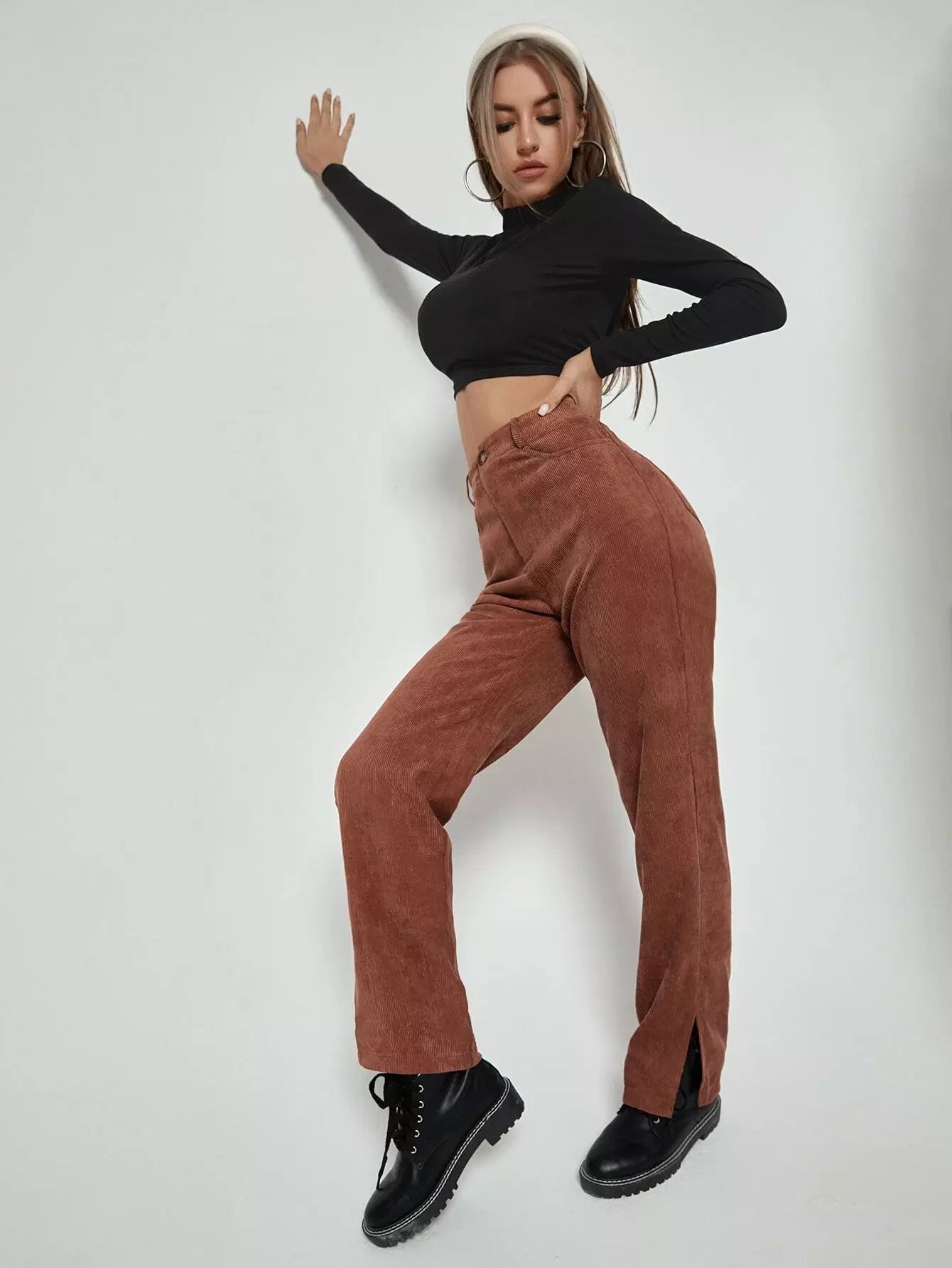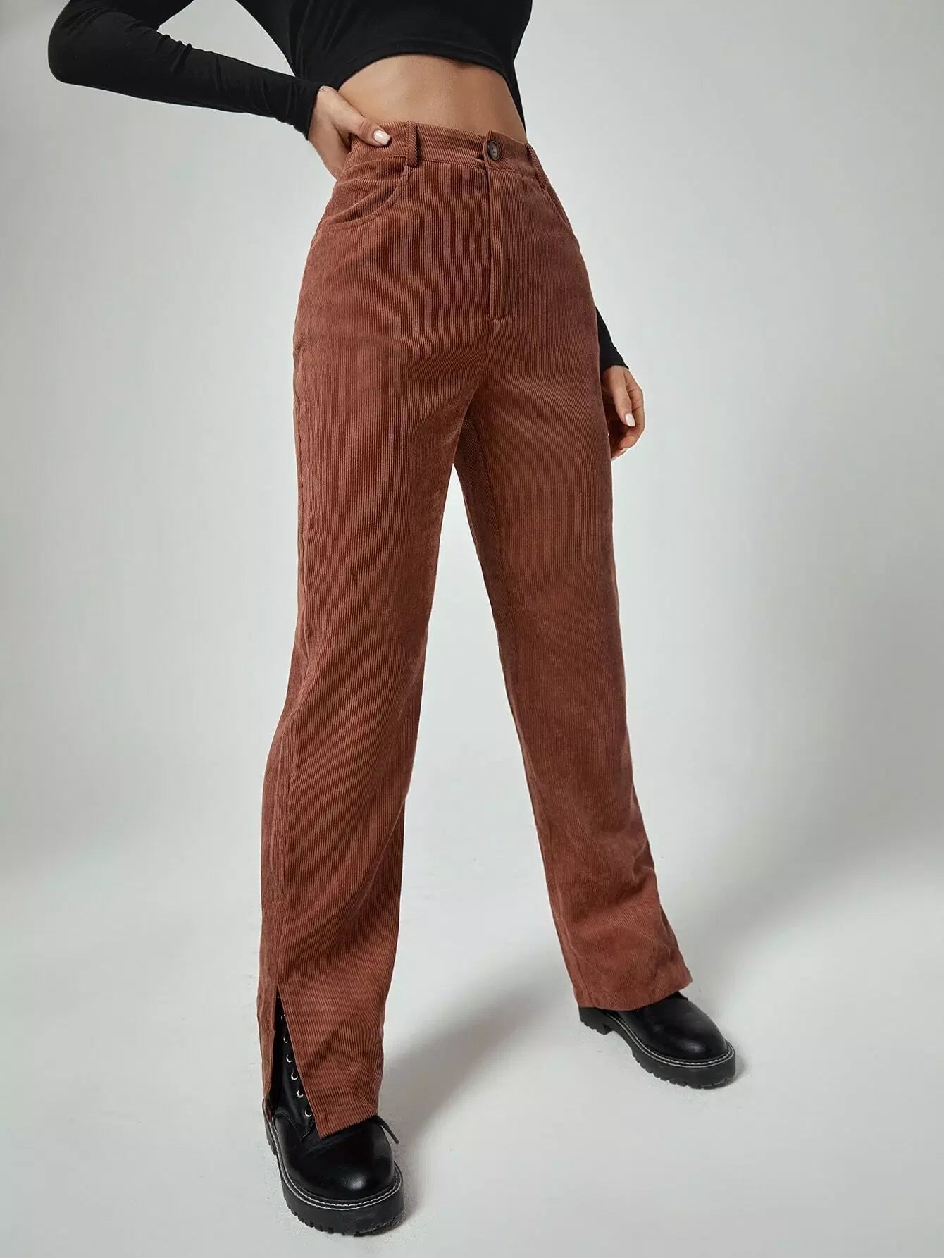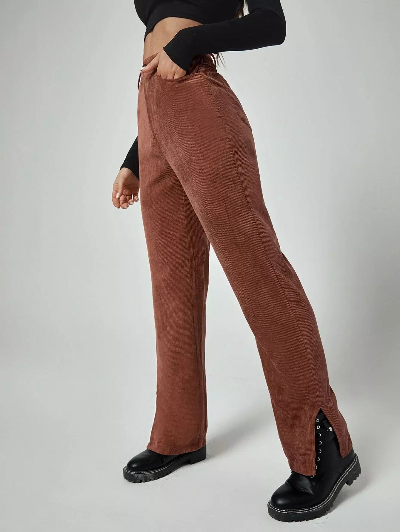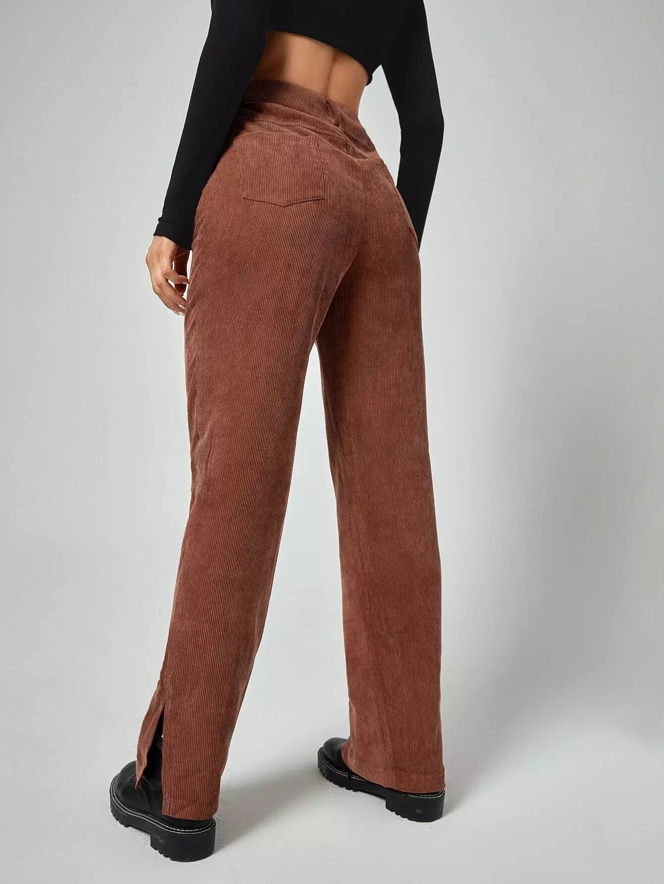 بنطال مخملي بخصر مرتفع وحافة مشقوقة