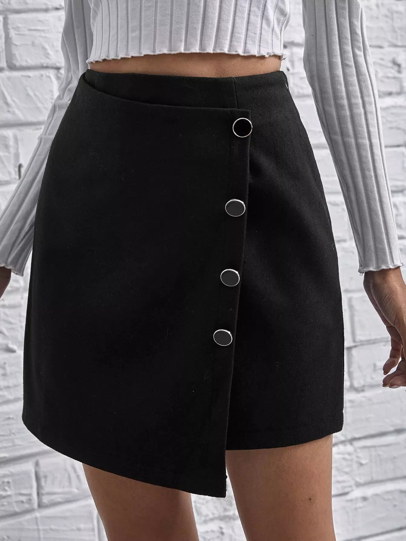 تنورة ملفوفة بتفاصيل أزرار سادة