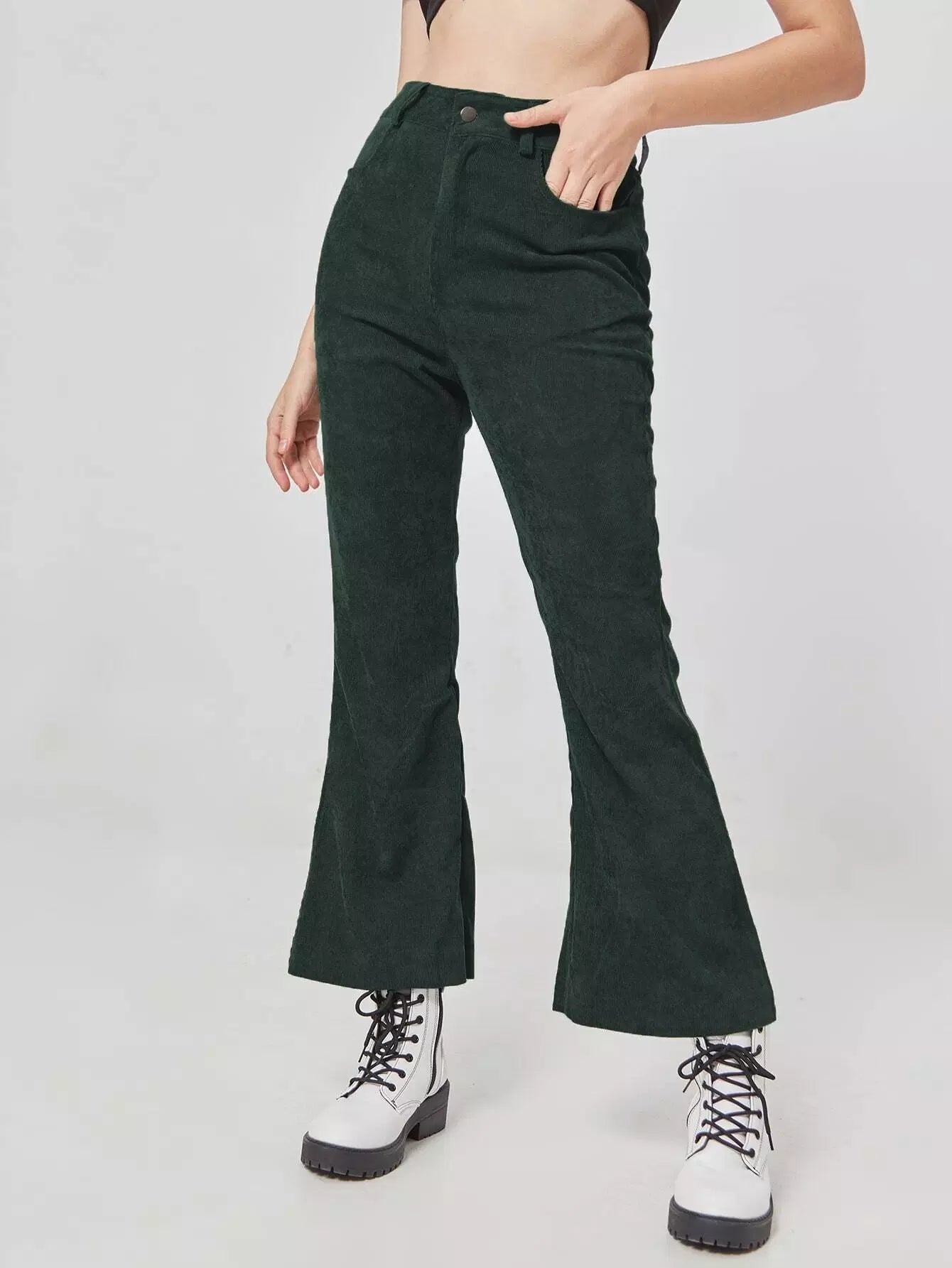 بنطلون سادة قصير الساقين واسع الساقين سادة
