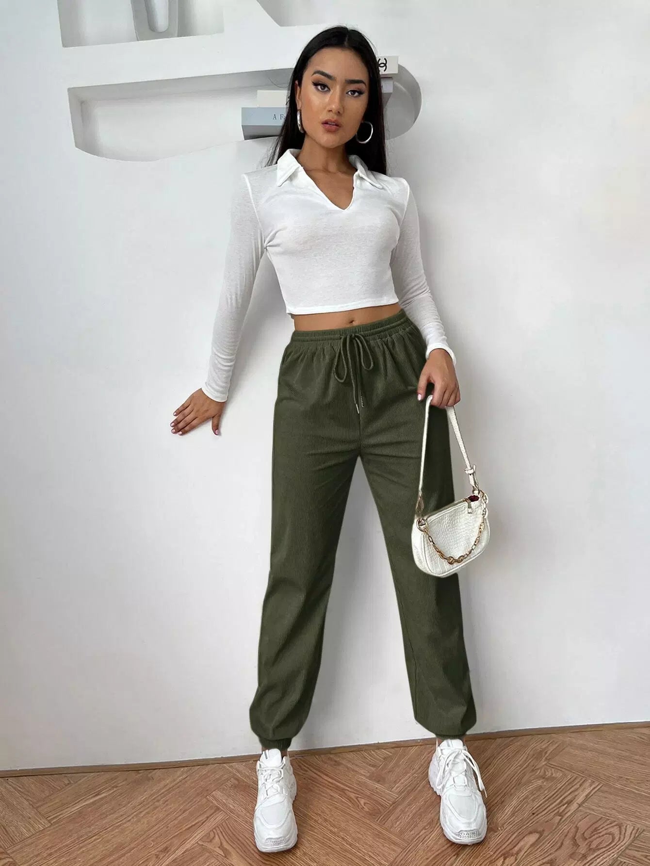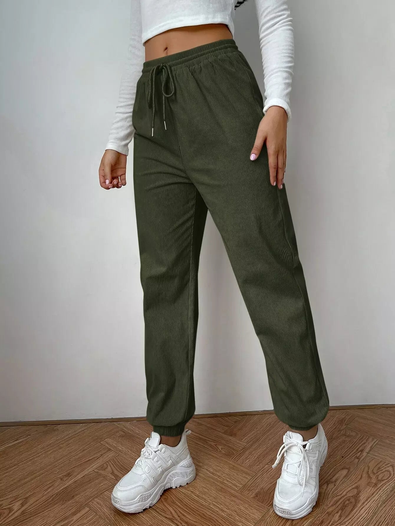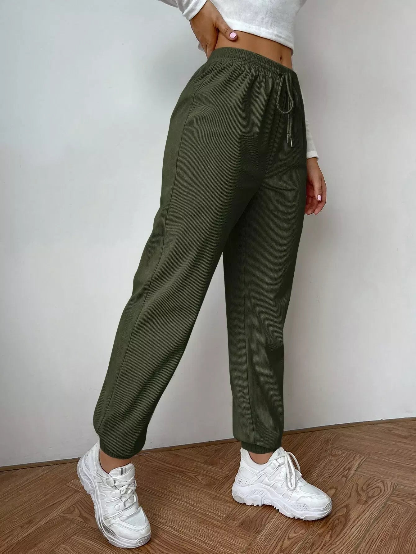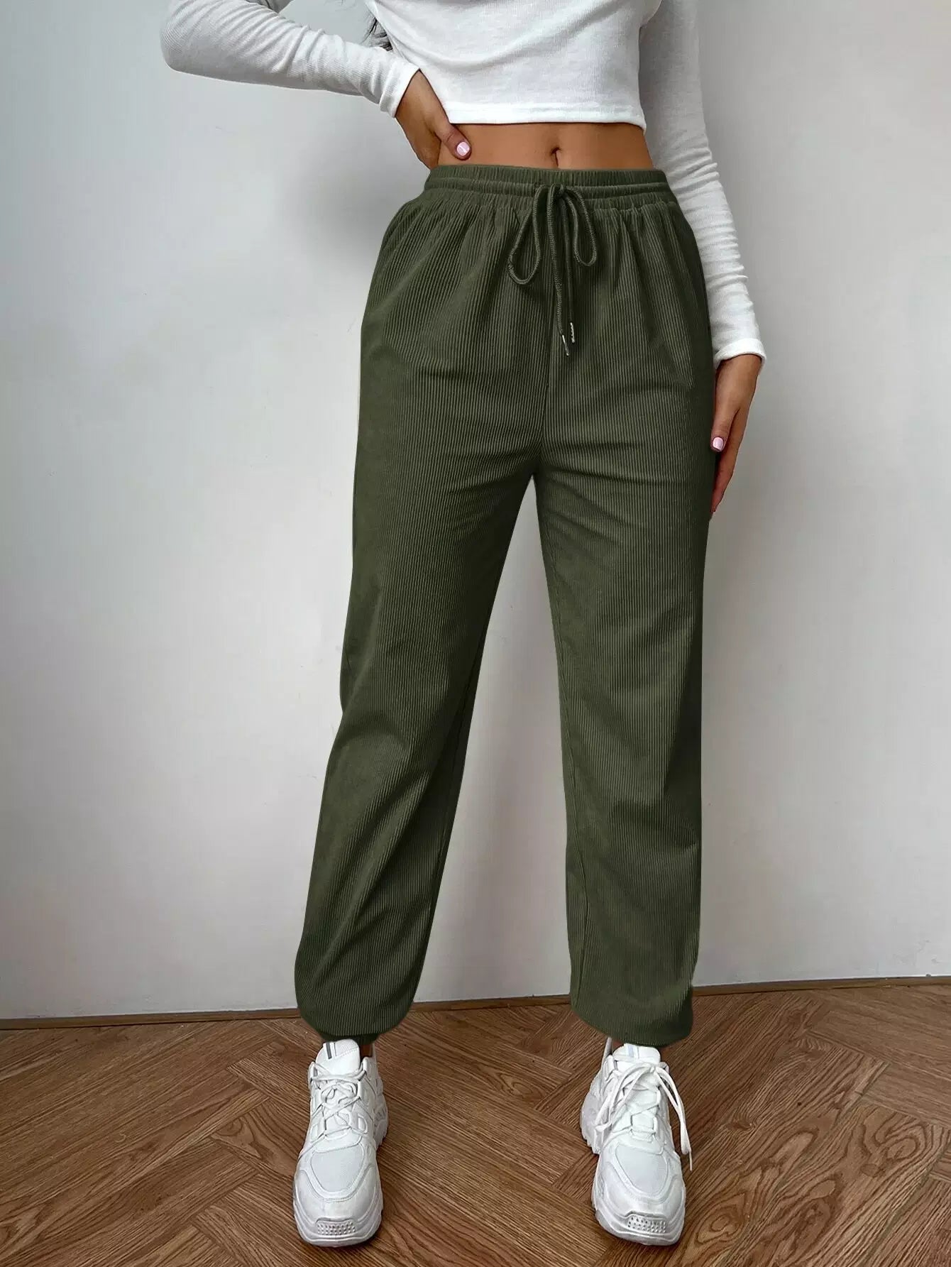 سروال سروال قصير قصير بخصر برباط خصر سادة