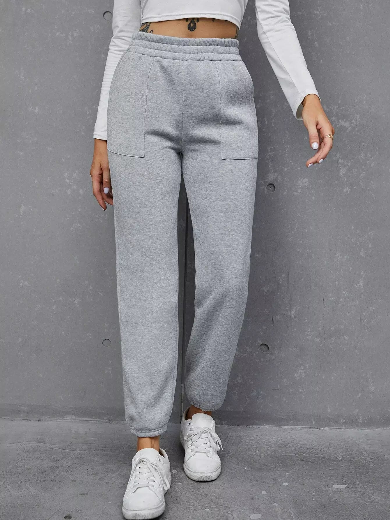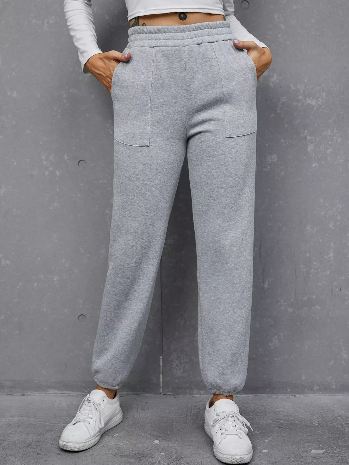 بنطال رياضي سادة بخصر مرن ومبطن بالبطانة الحرارية