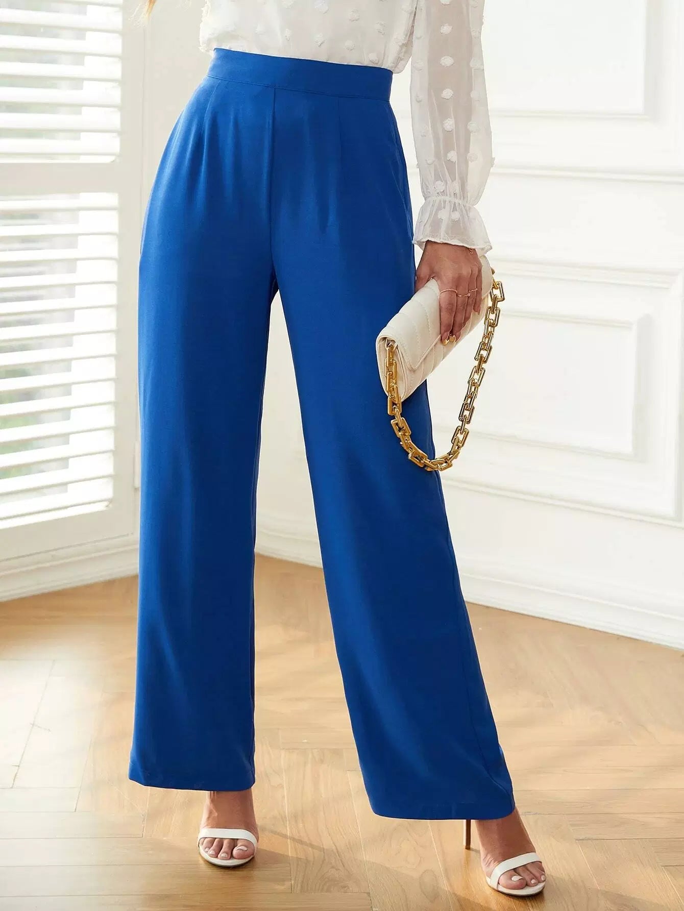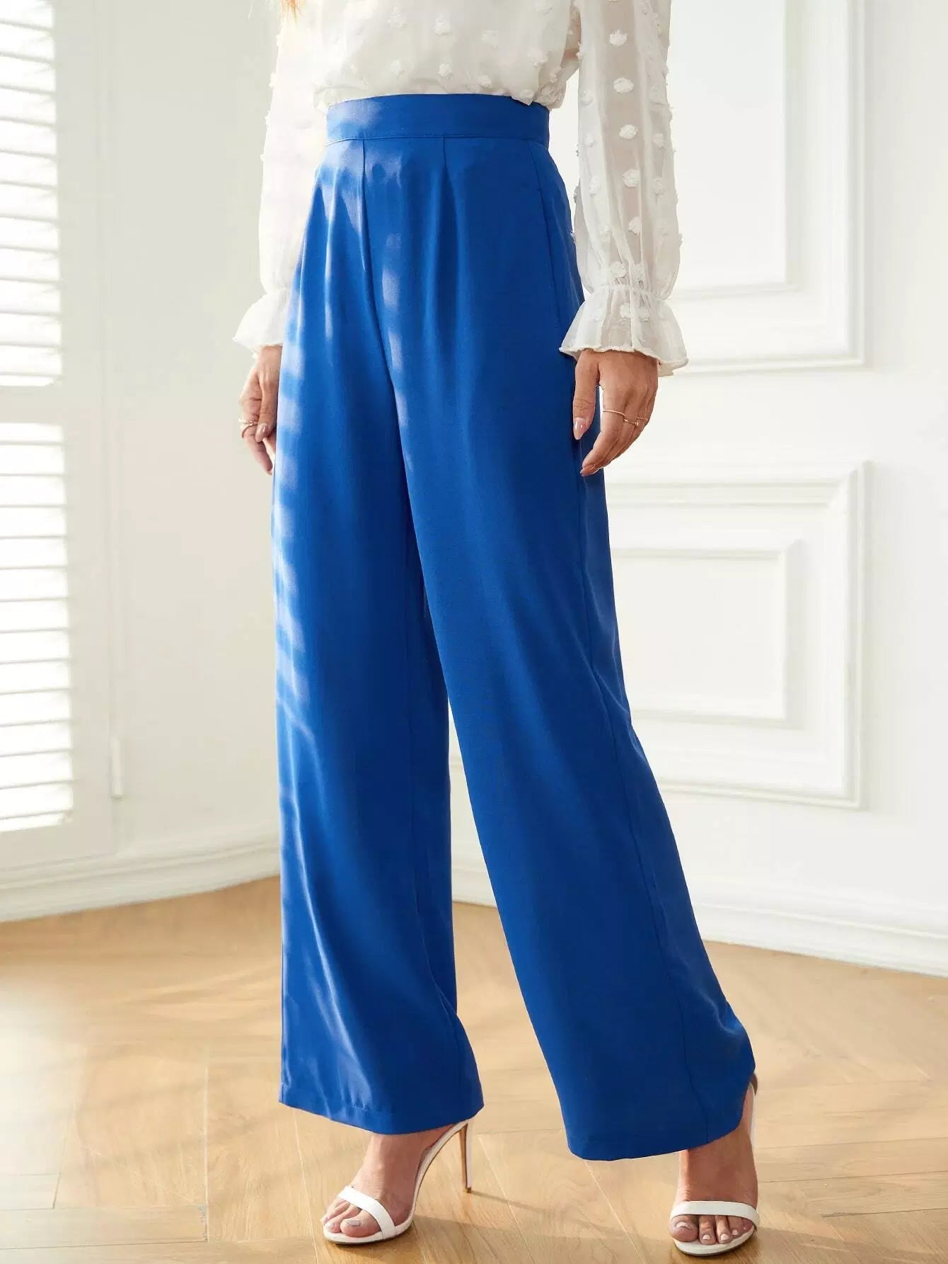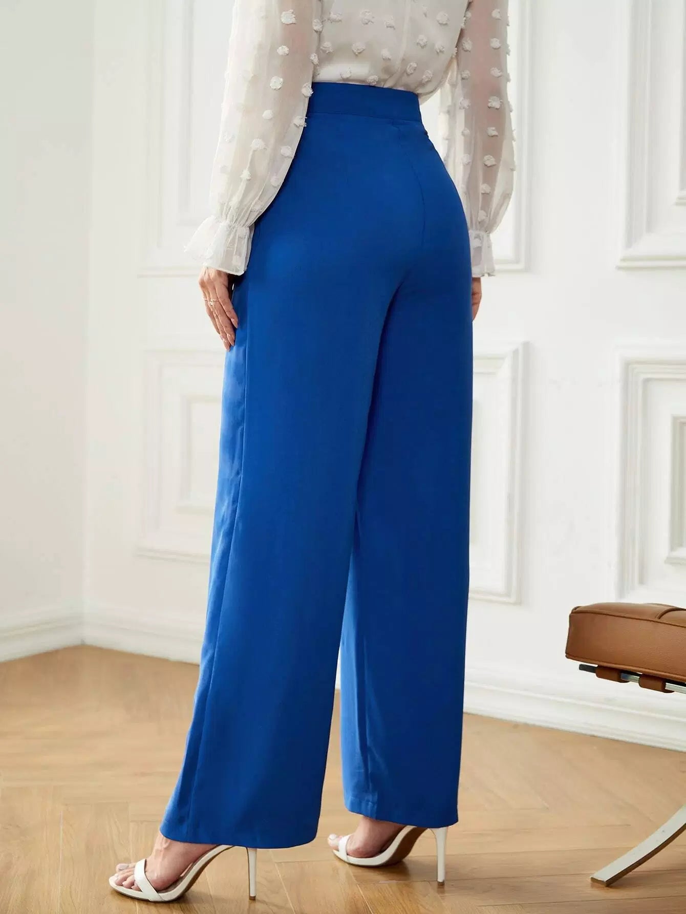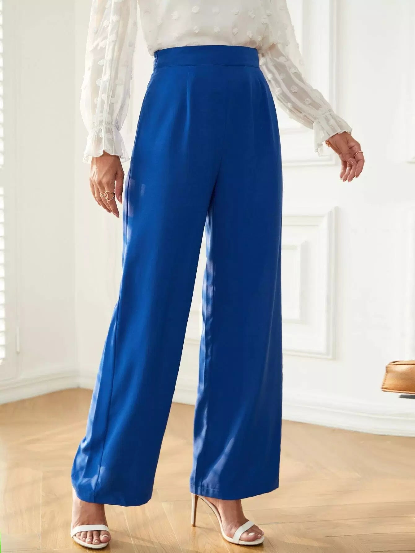 بنطلون سادة عريض الساقين سادة عالي الارتفاع