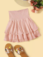 تنورة مكشكشة بطبقات سادة ذات حواف مكشكشة سادة