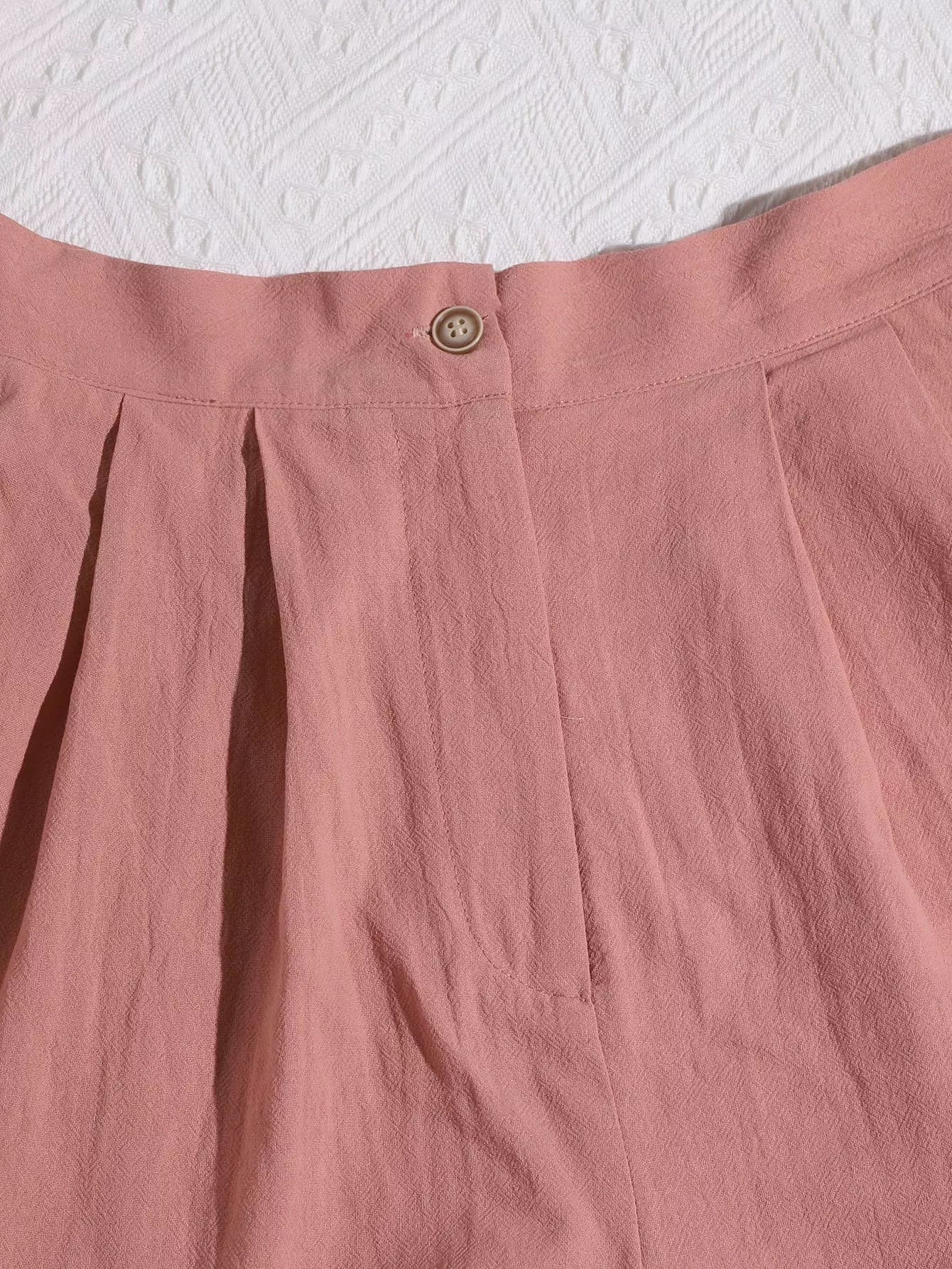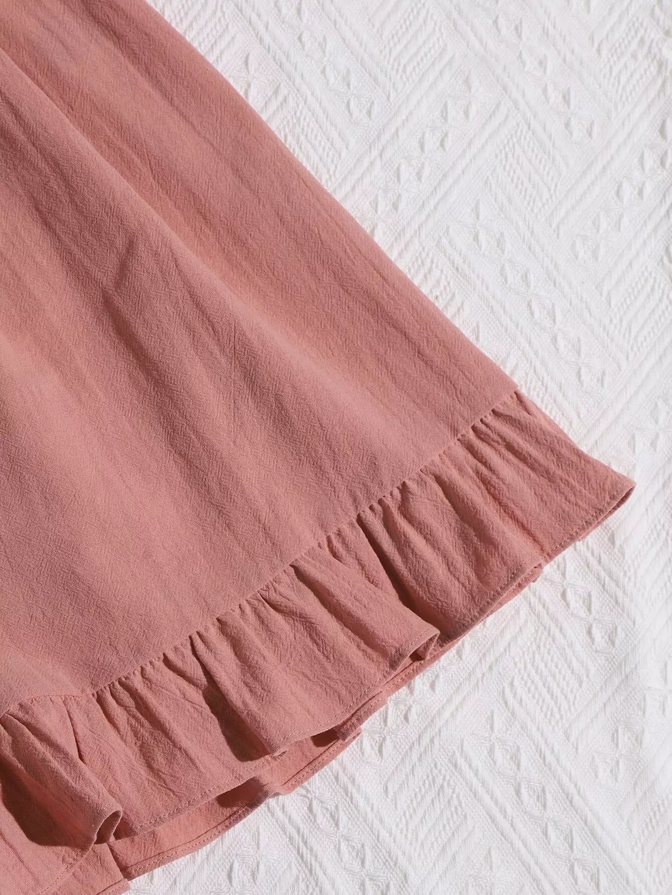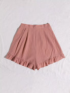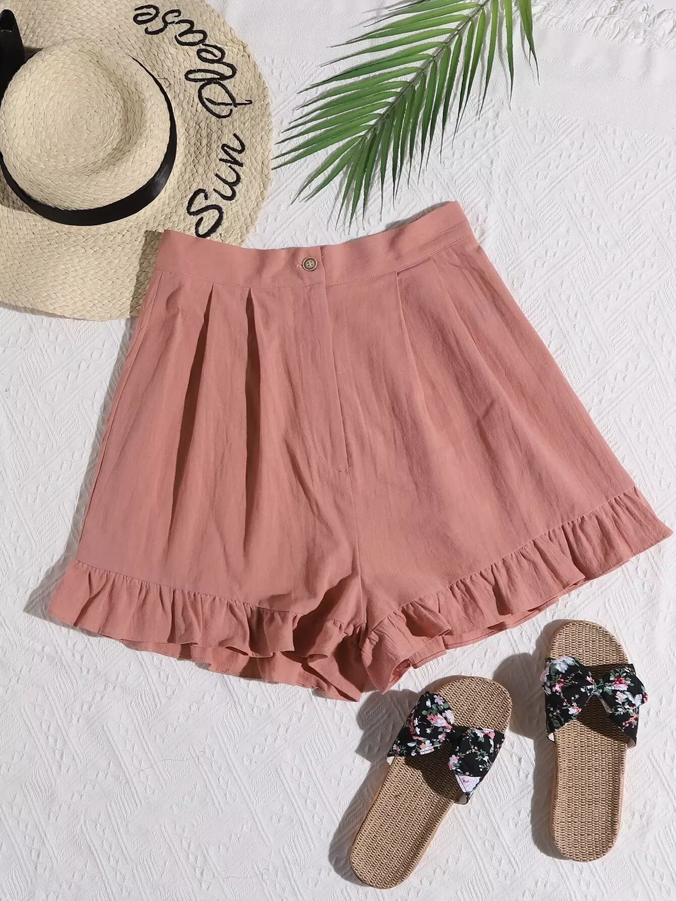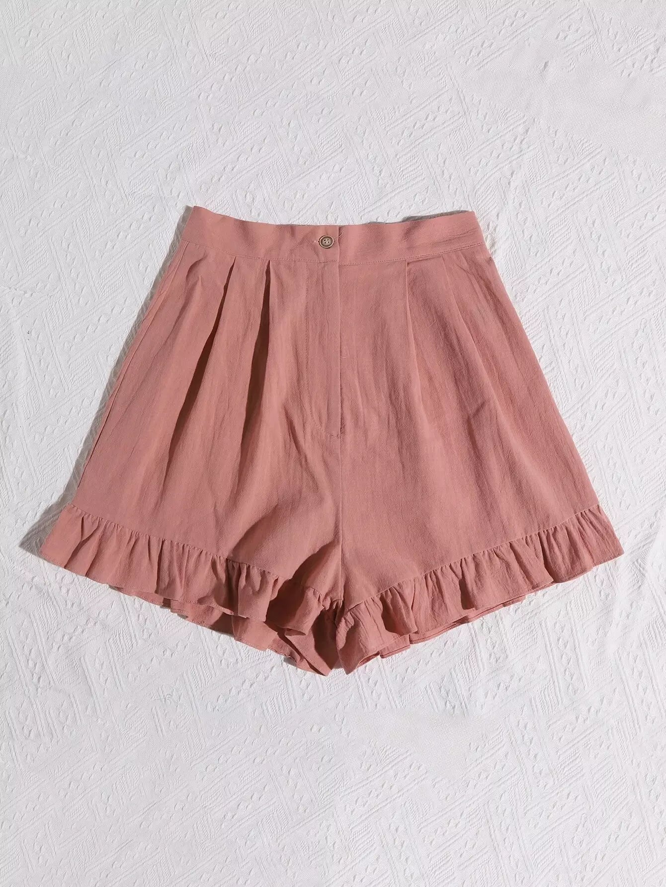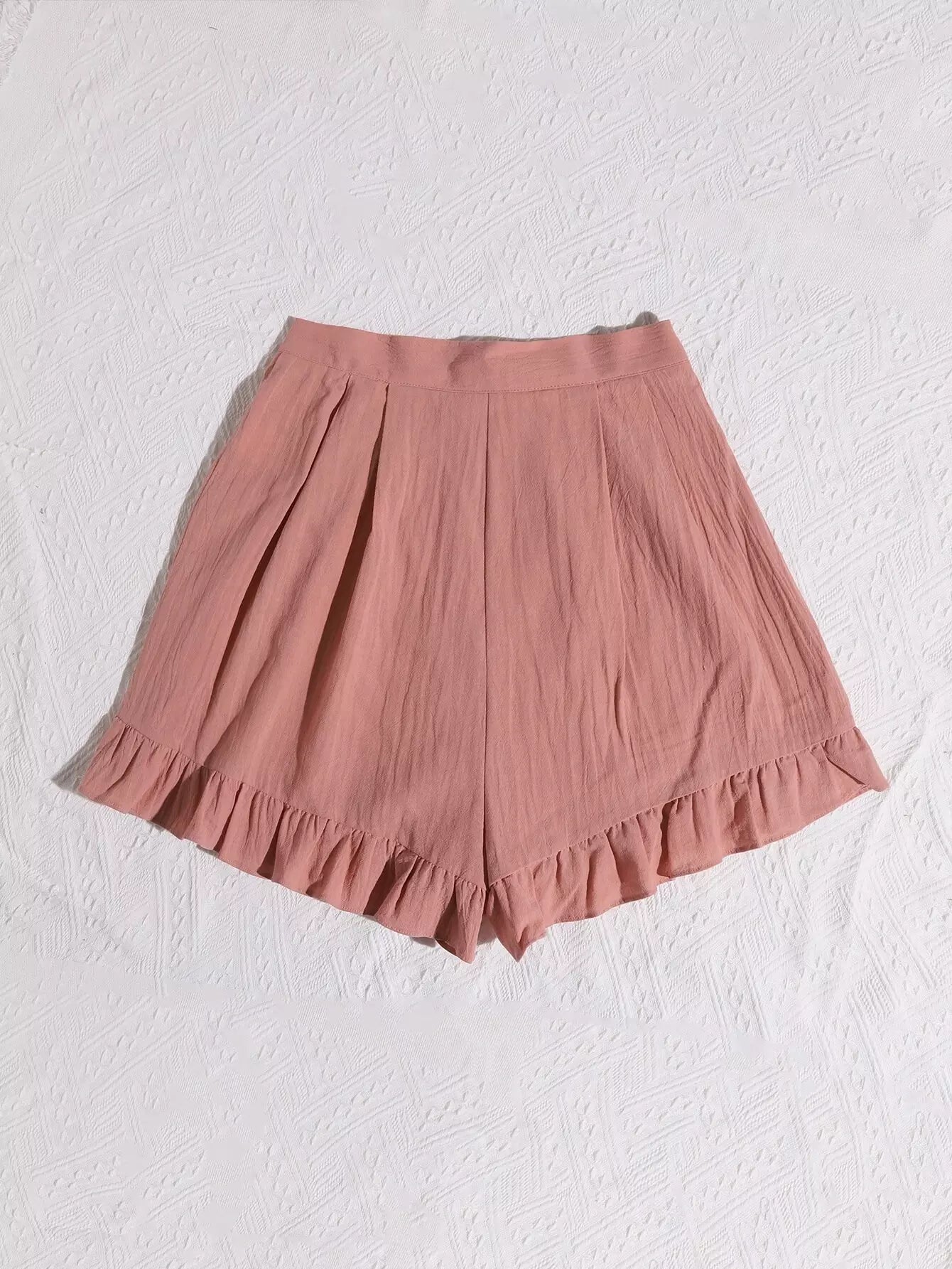 شورت سادة بحافة مكشكشة واسعة الساقين سادة