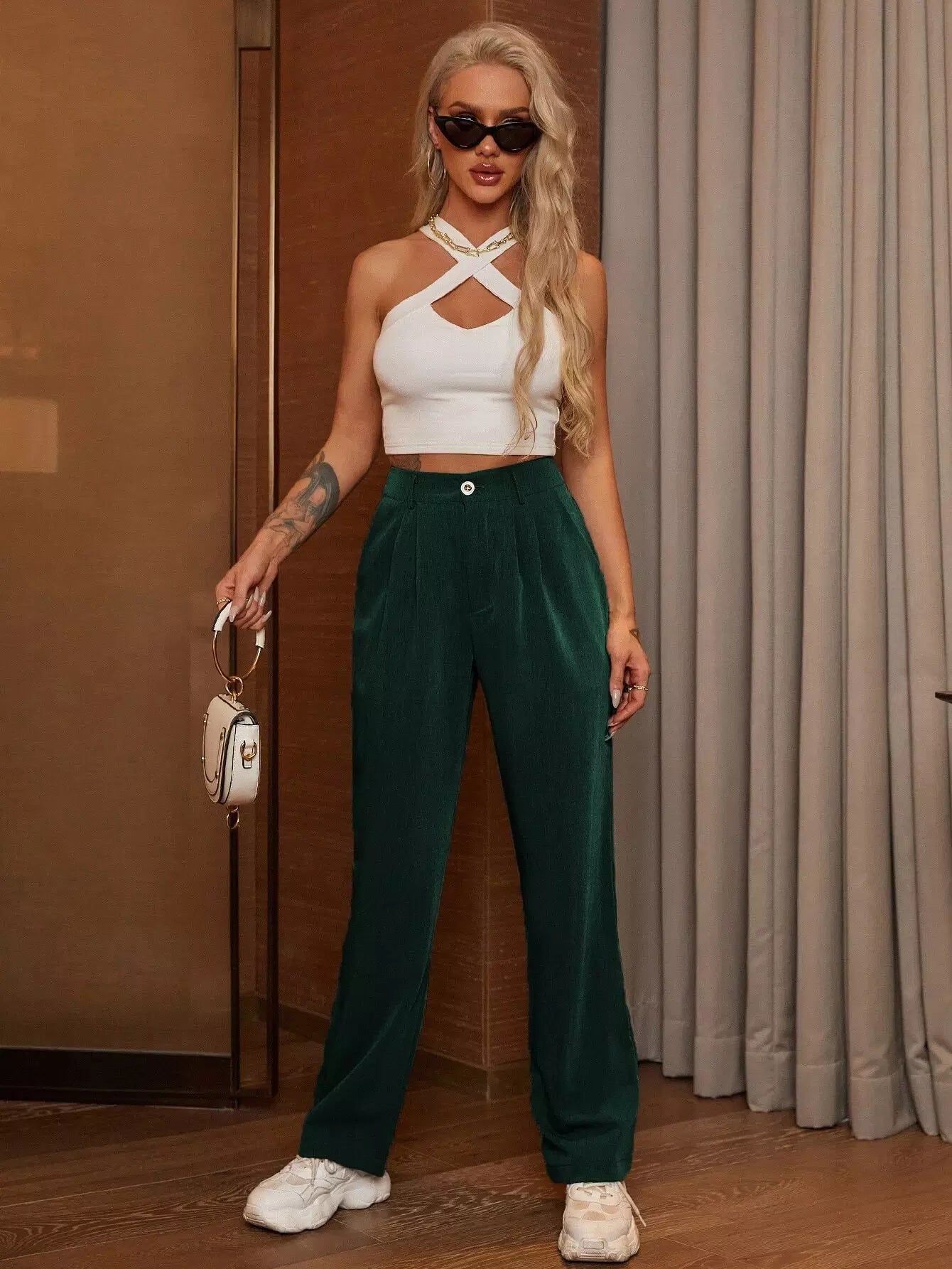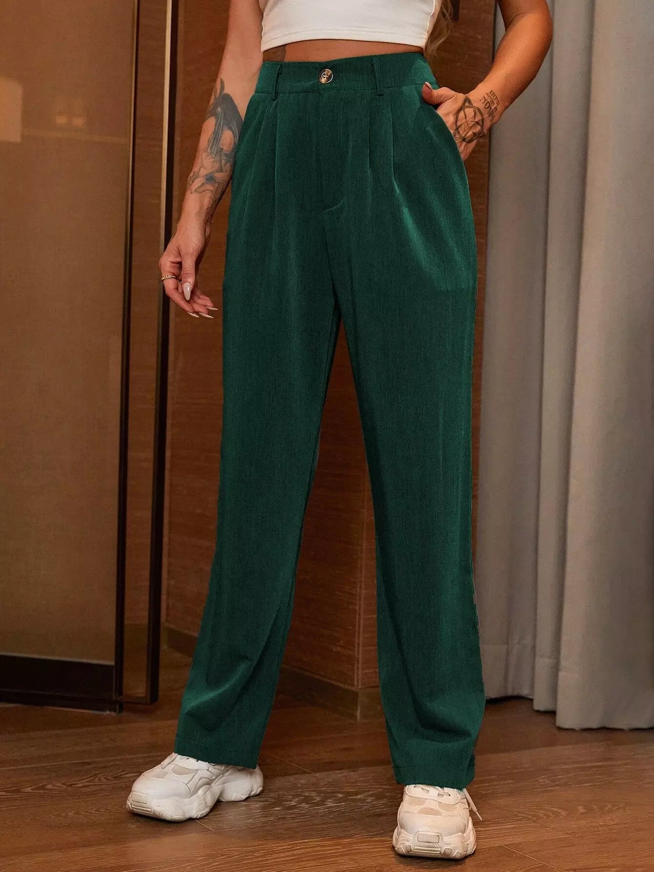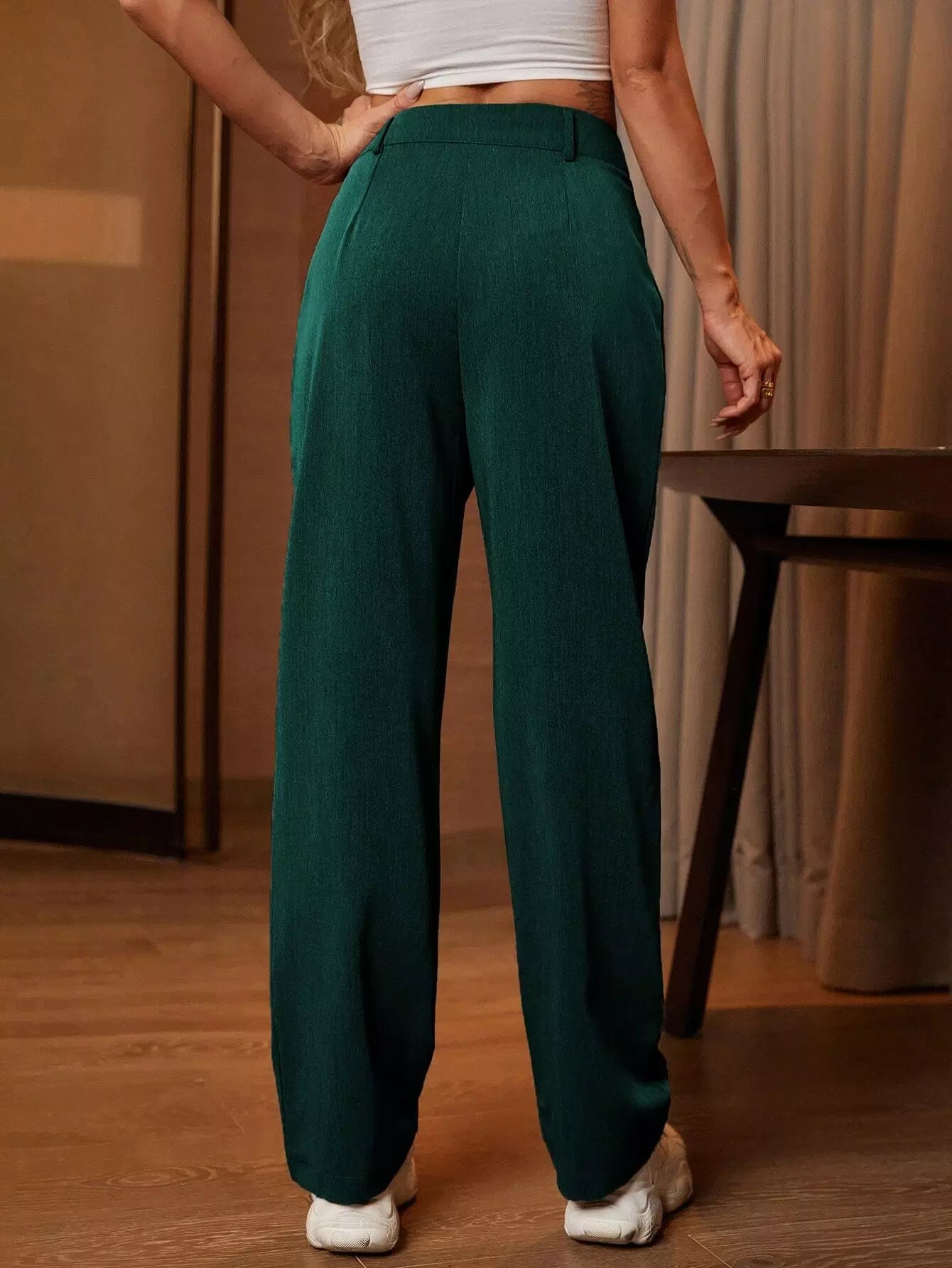 بنطلون سادة بساق مستقيمة مائلة بجيب مائل