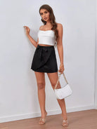 تنورة ساتان ملفوفة برباط أمامي سادة