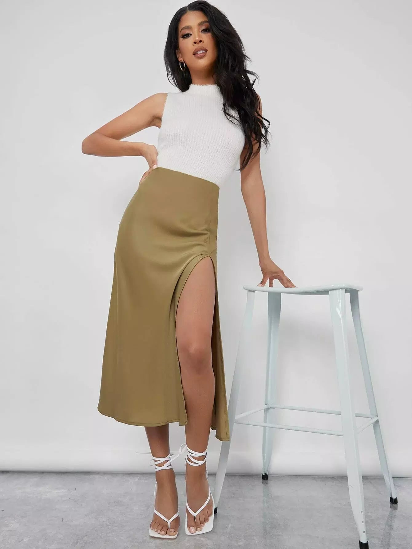 تنورة سادة منقسمة الفخذين