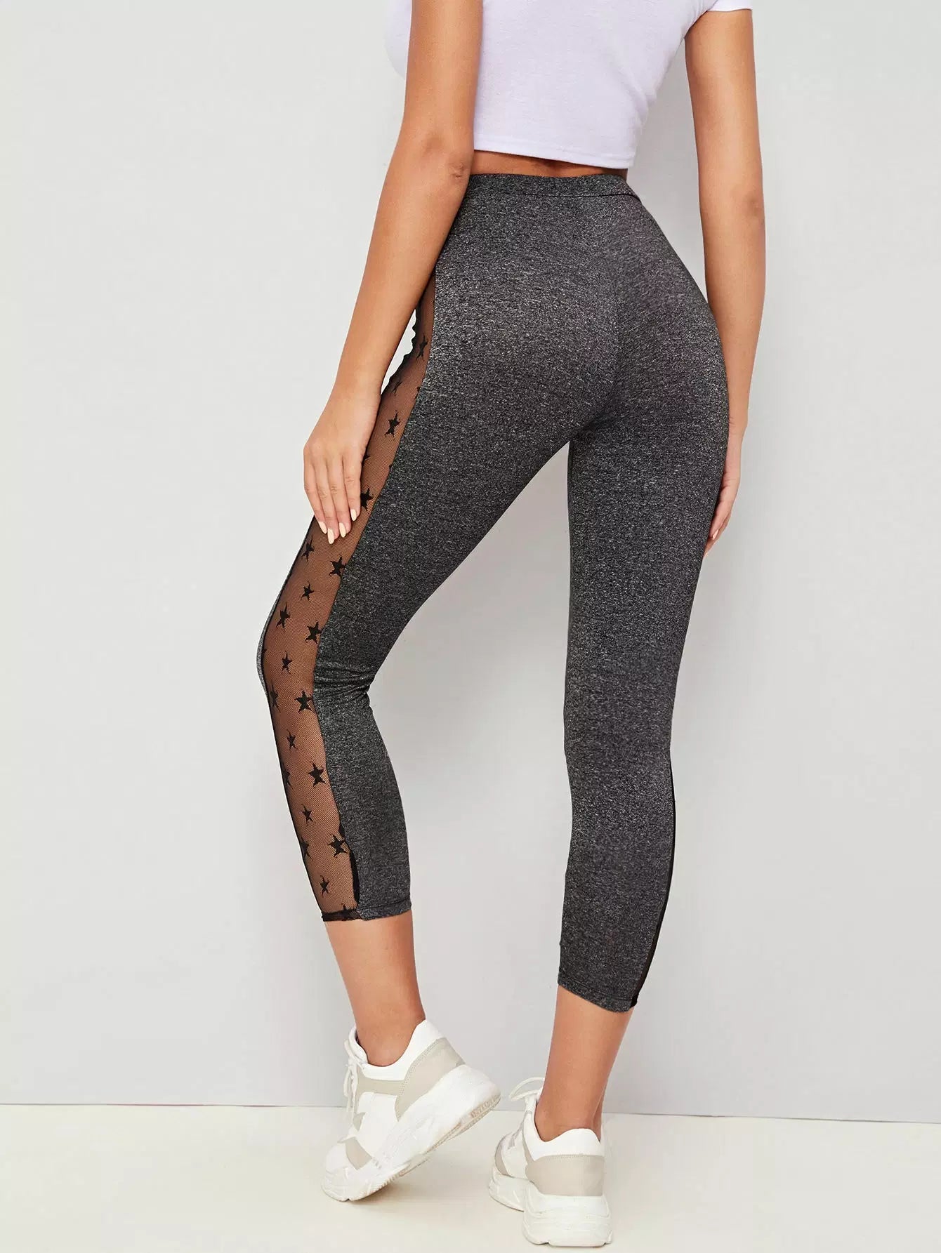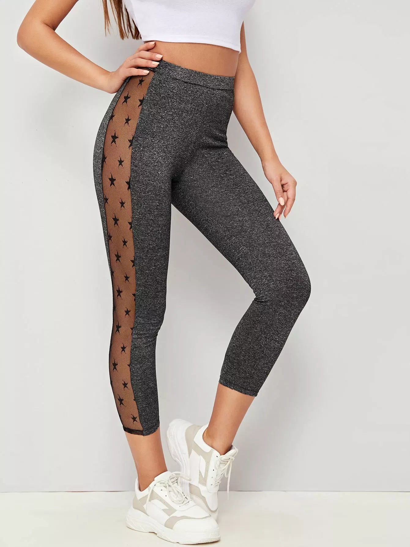 بنطال ضيق مزين بخطوط جانبية من شبكة النجوم