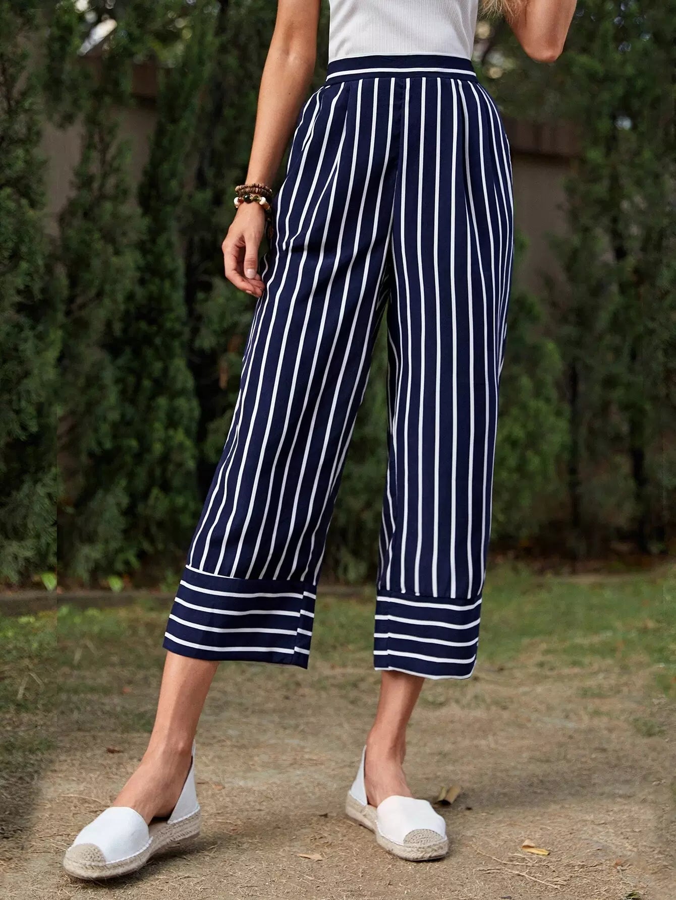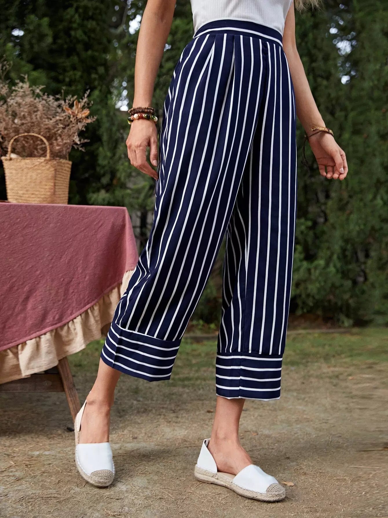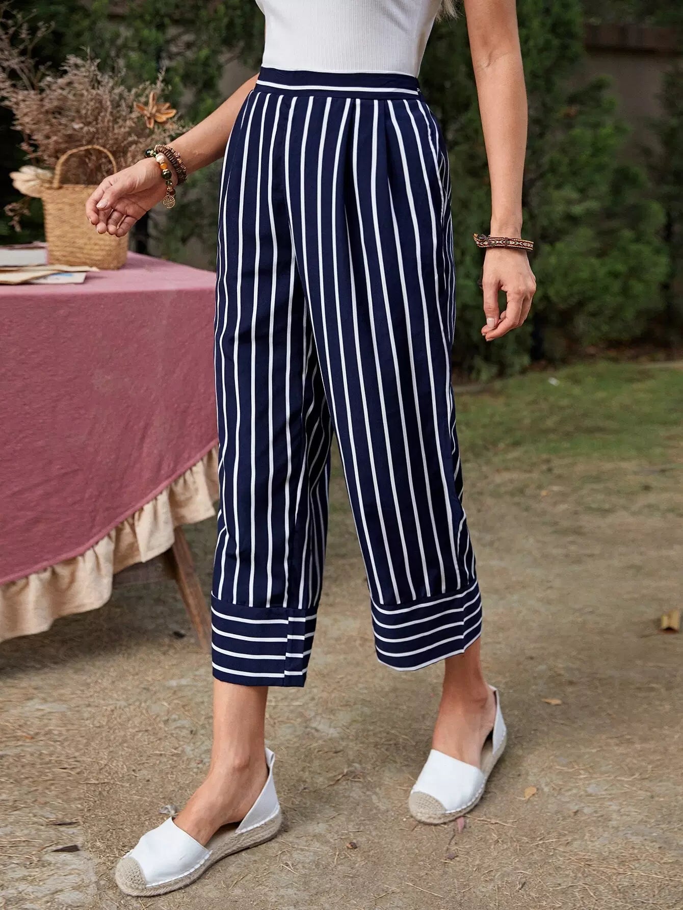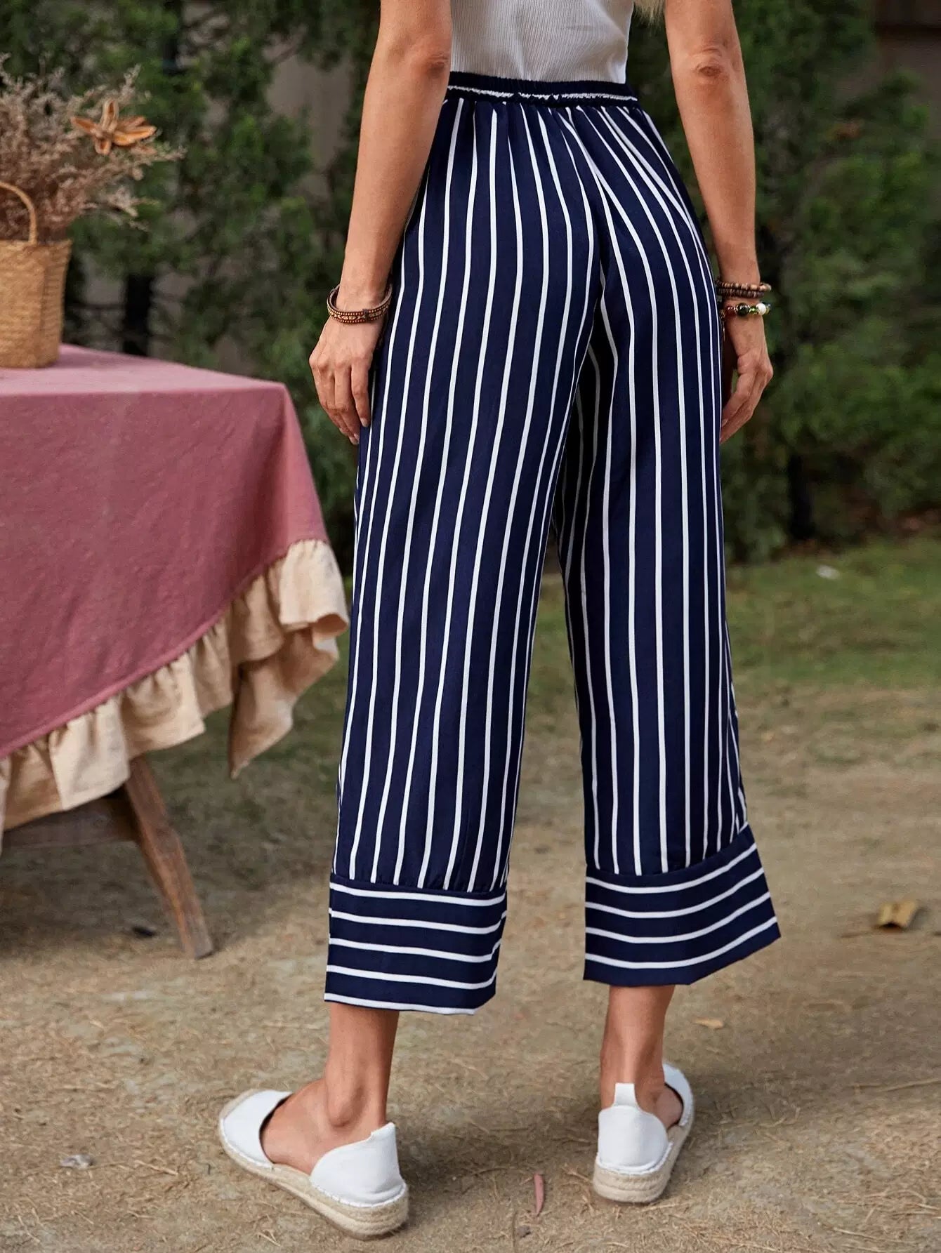 بنطلون مخطط بخصر مطاطي