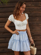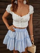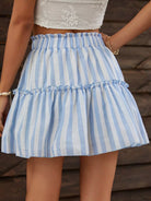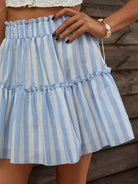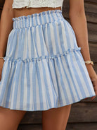 تنورة مكشكشة مخططة بحافة مكشكشة واسعة