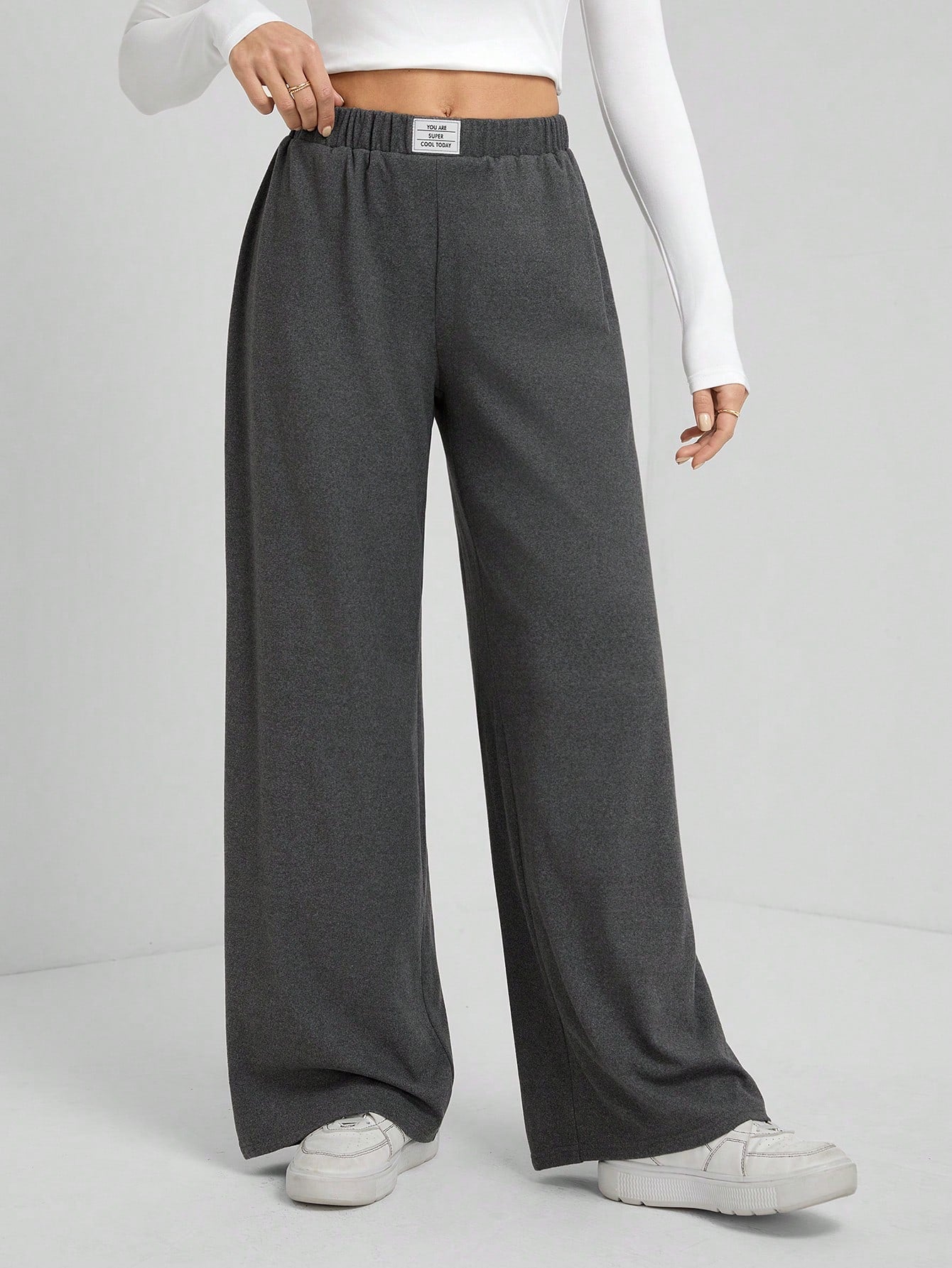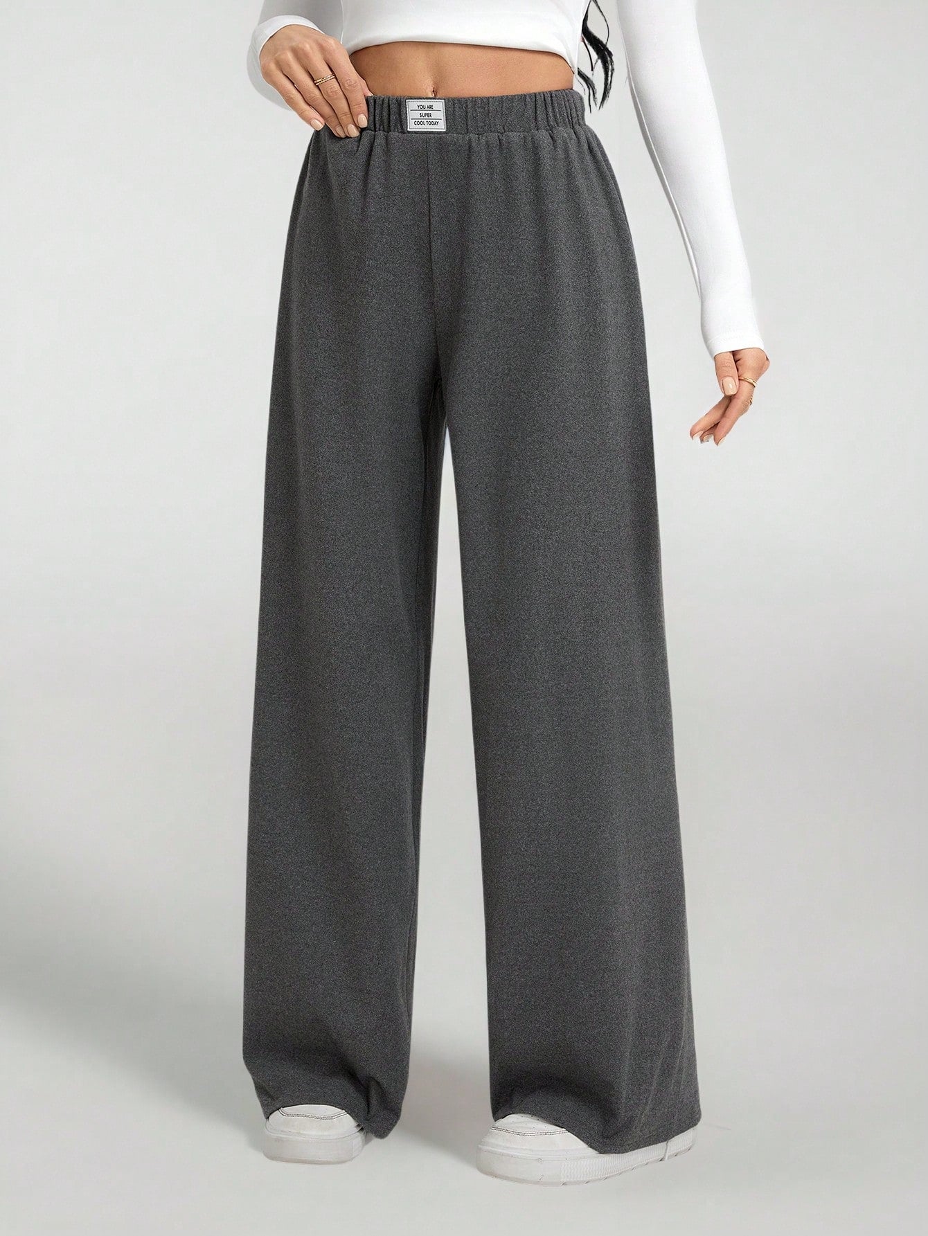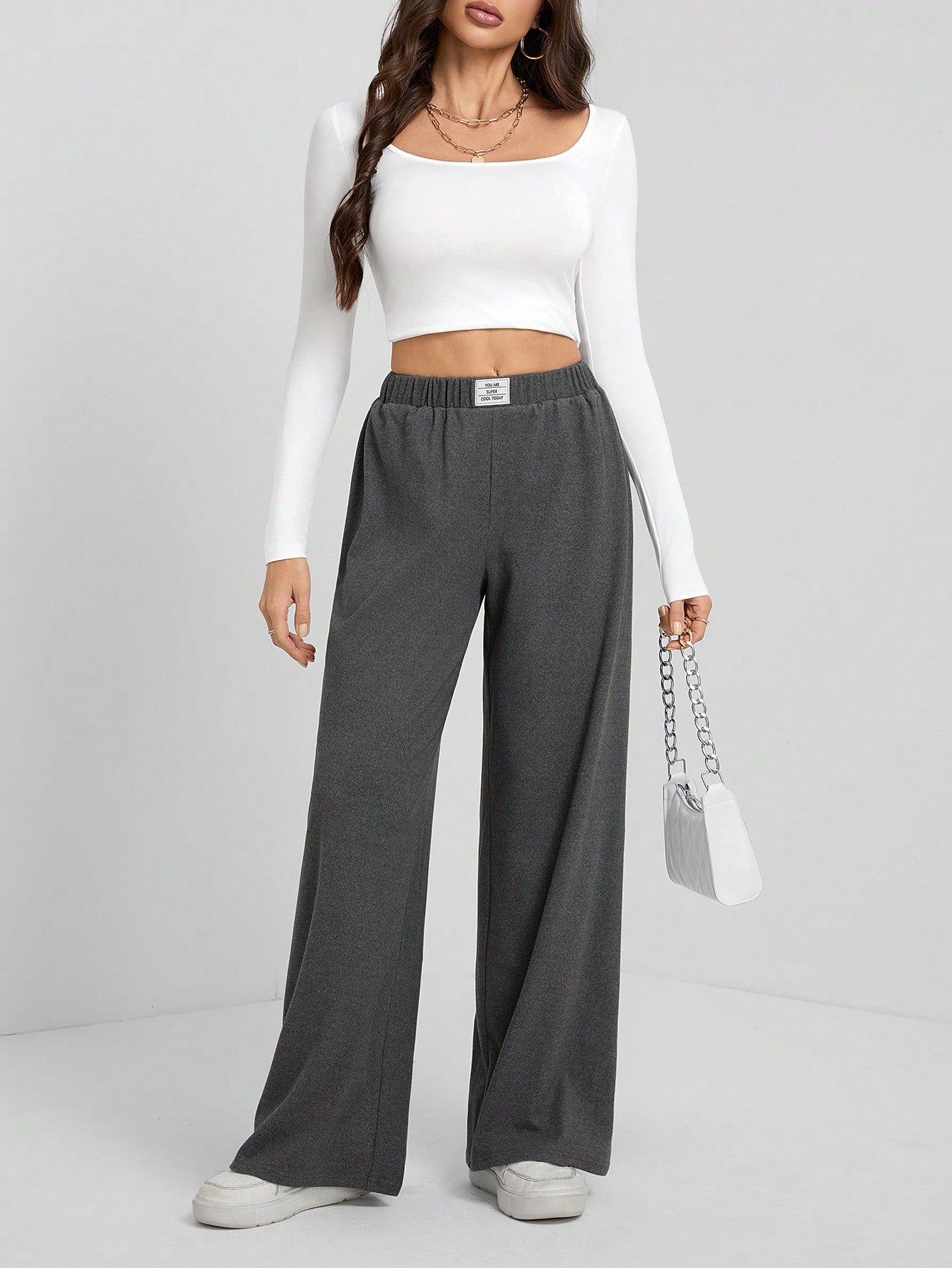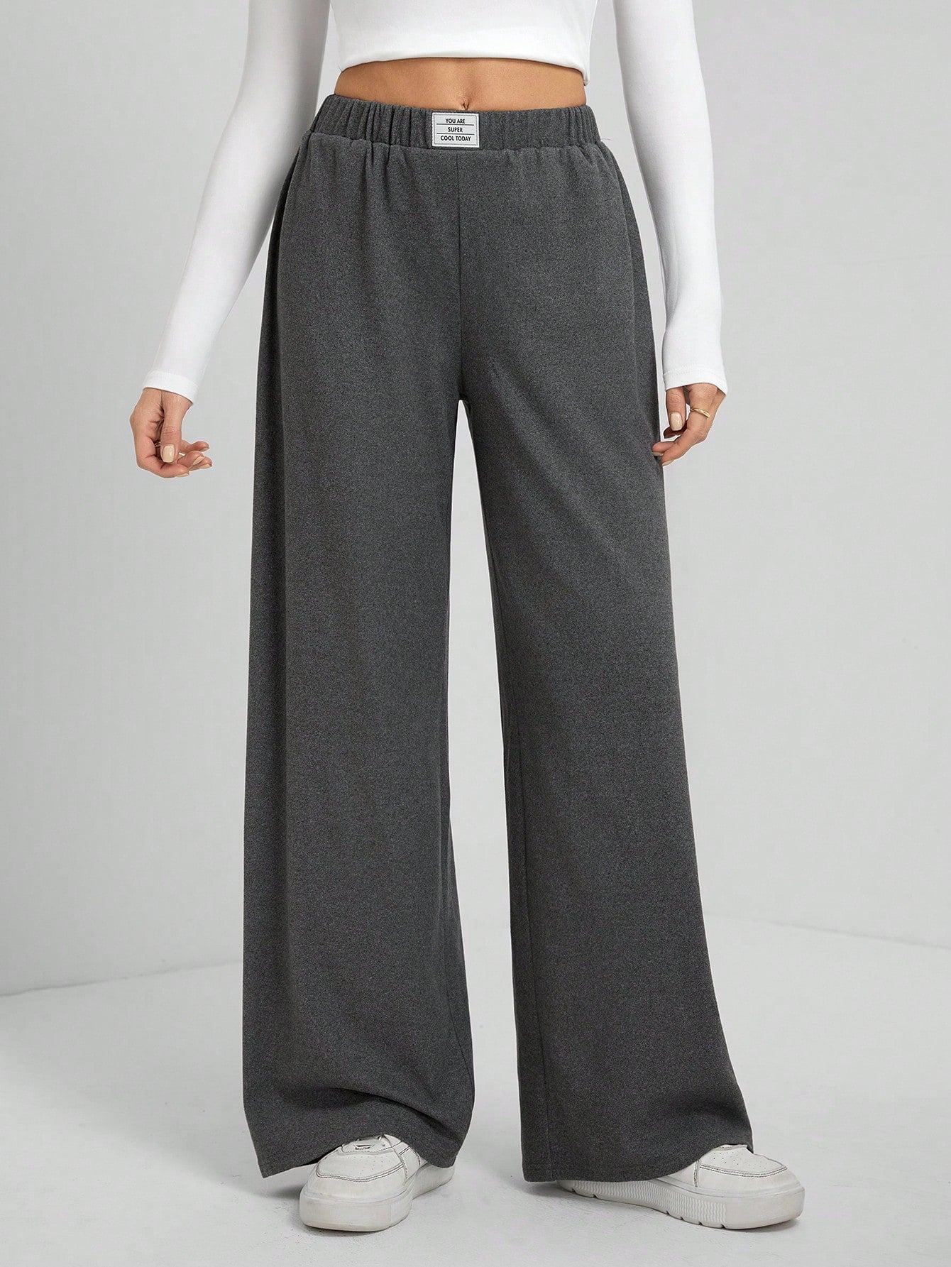 بنطلون نسائي طويل بقصّة واسعة الساق مطبوع ومُفصّل برقعة غير رسمية