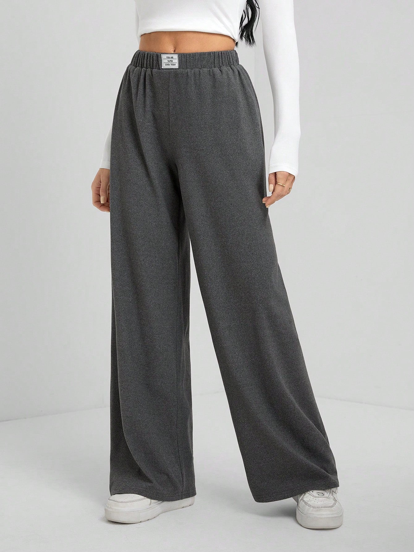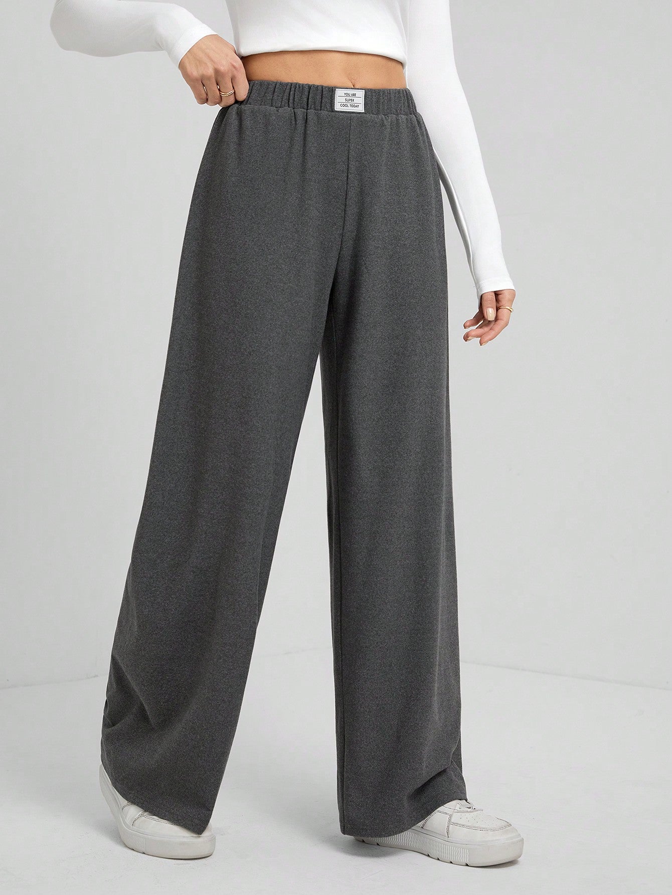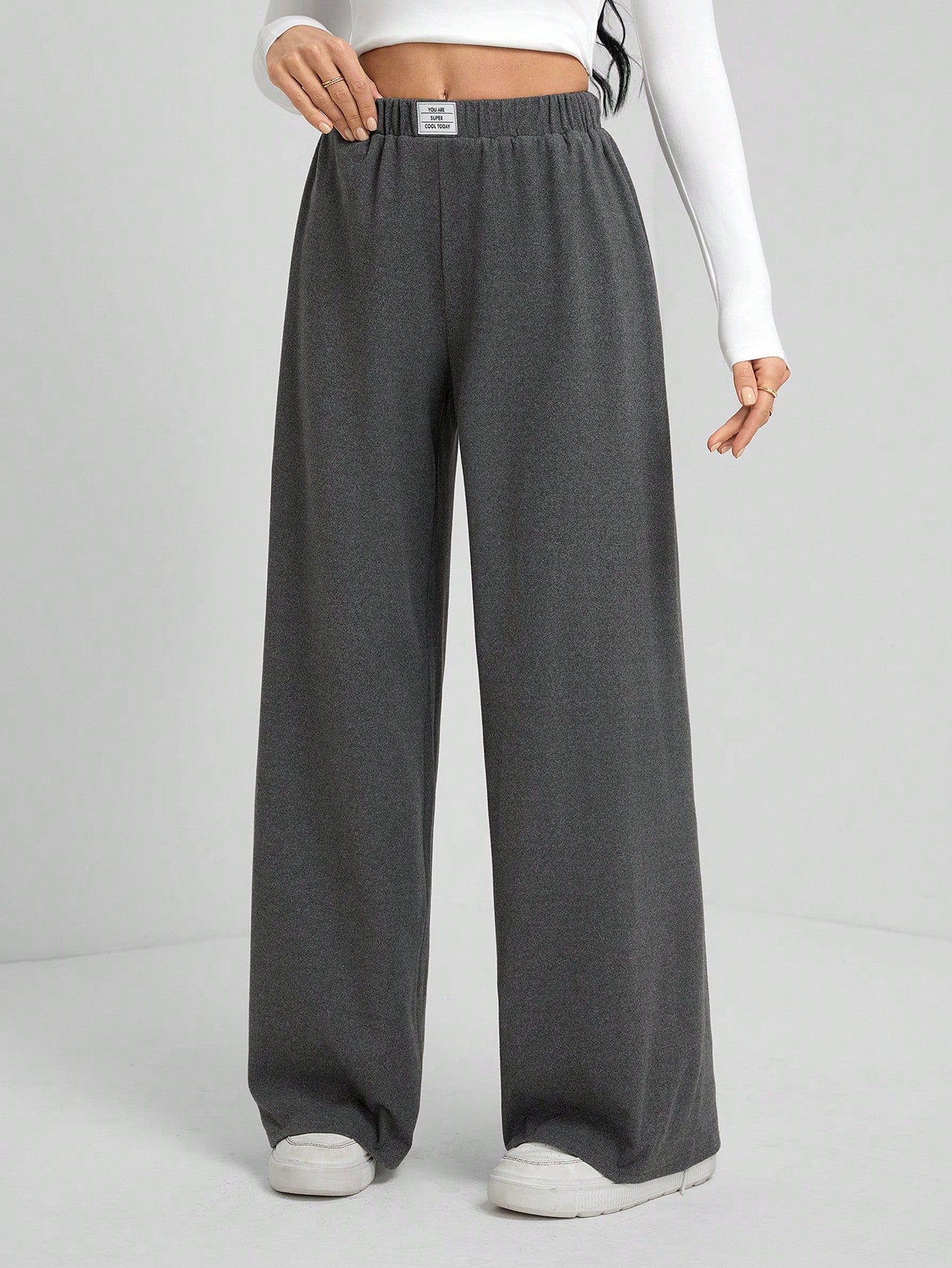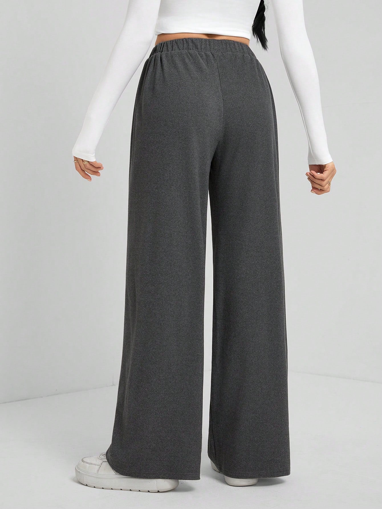 بنطلون نسائي طويل بقصّة واسعة الساق مطبوع ومُفصّل برقعة غير رسمية