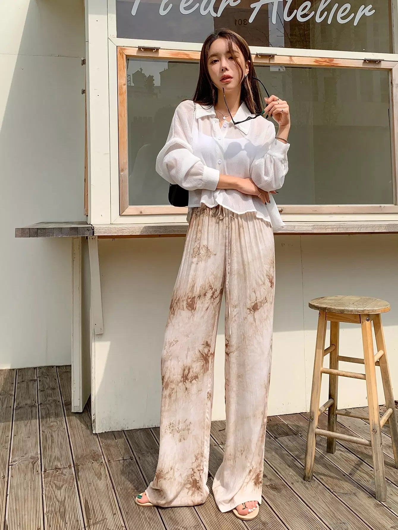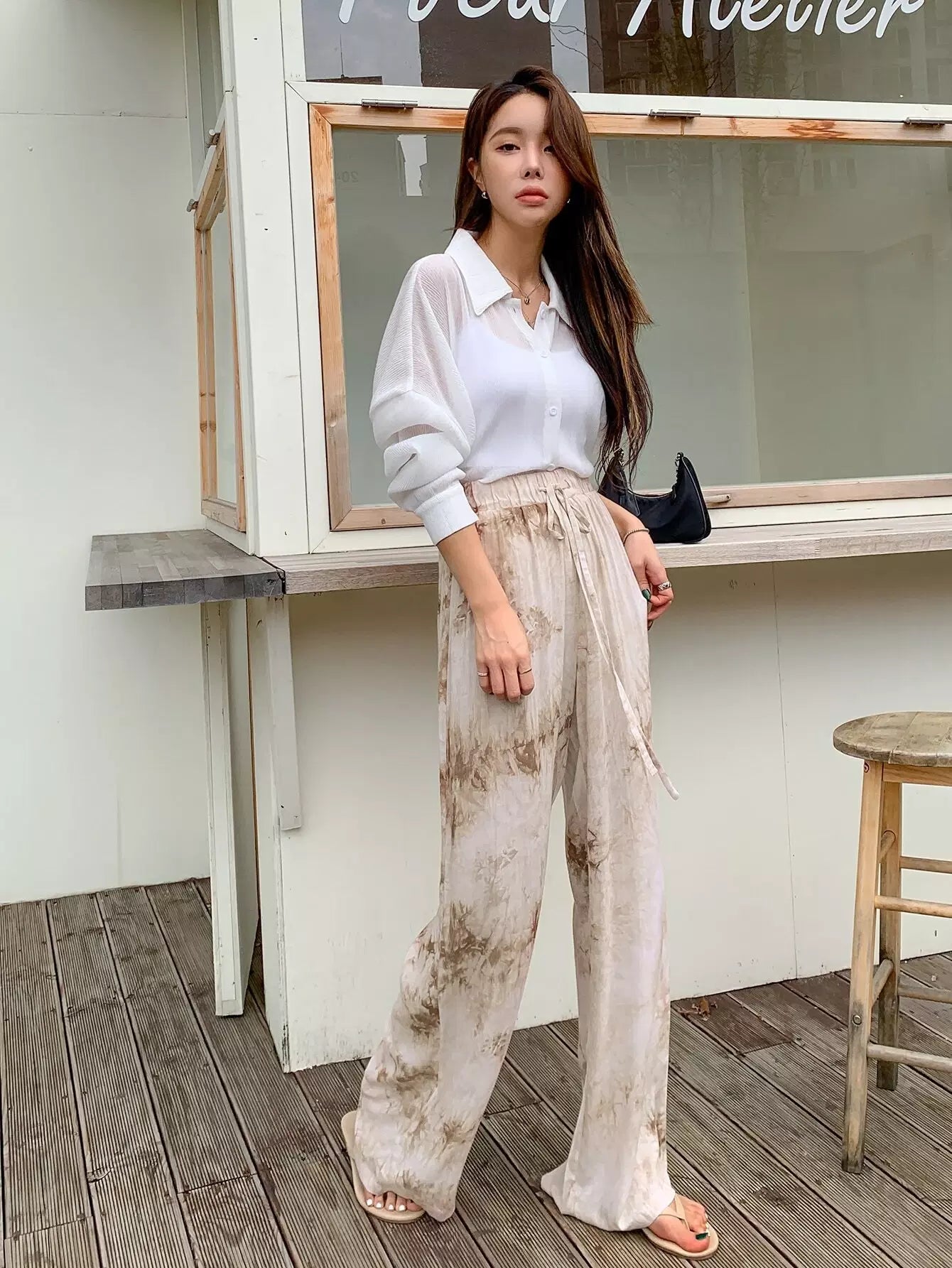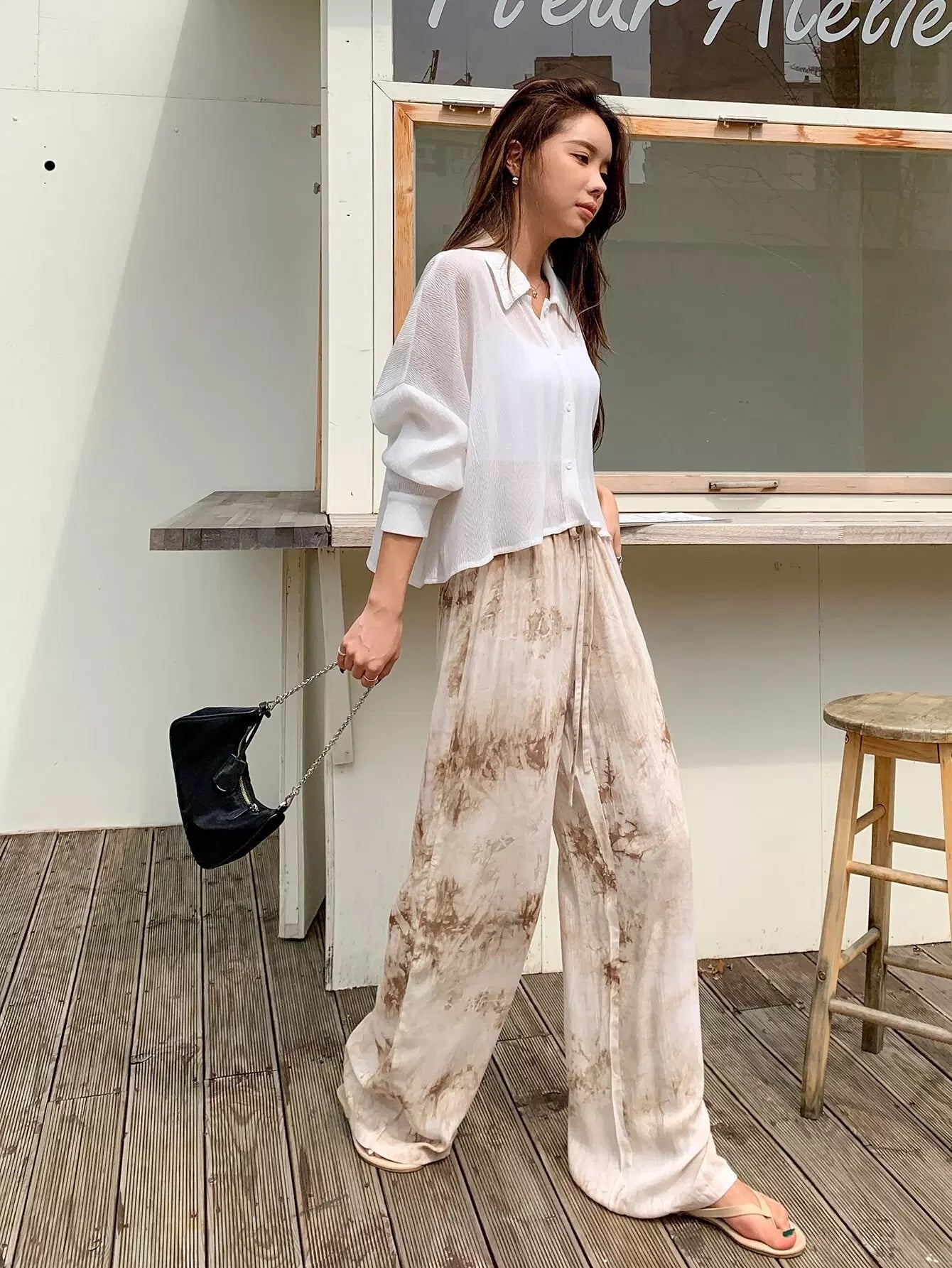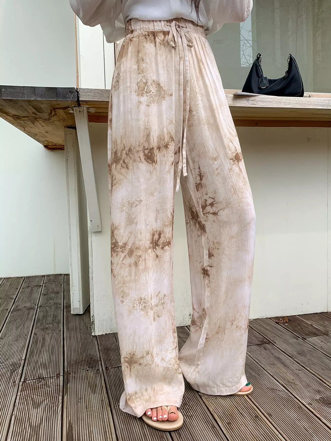 بنطلون برباط خصر بربطة عنق مصبوغ بربطة عنق