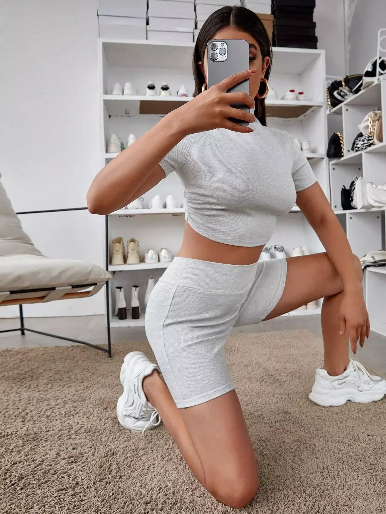 شورت راكبي الدراجات النارية سادة بحزام خصر عريض